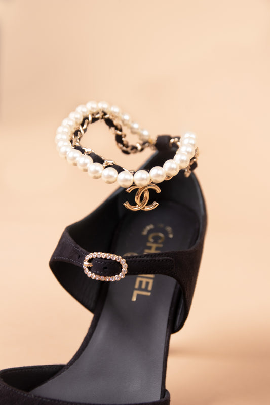 Chanel Black Sandals with Pearl Chain