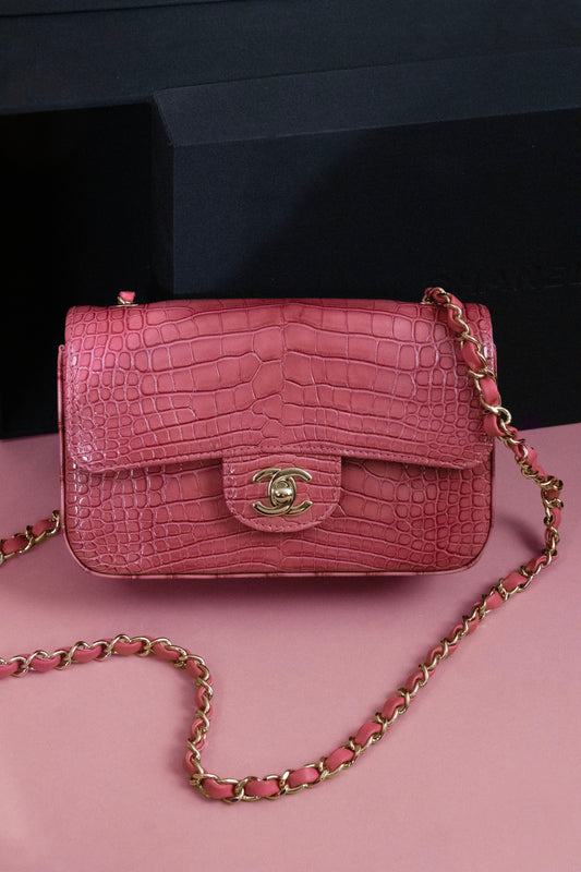 Chanel Mini Flap Bag in Shiny Alligator Pink