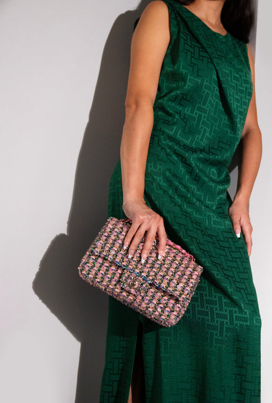 Chanel Small Sequins Flap Bag in Light Pink, Green & Yellow with Gold-Tone Metal