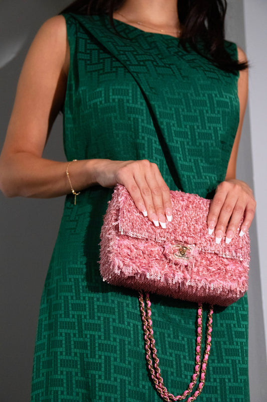 Chanel Flap Bag Fringed Sequins in Pink
