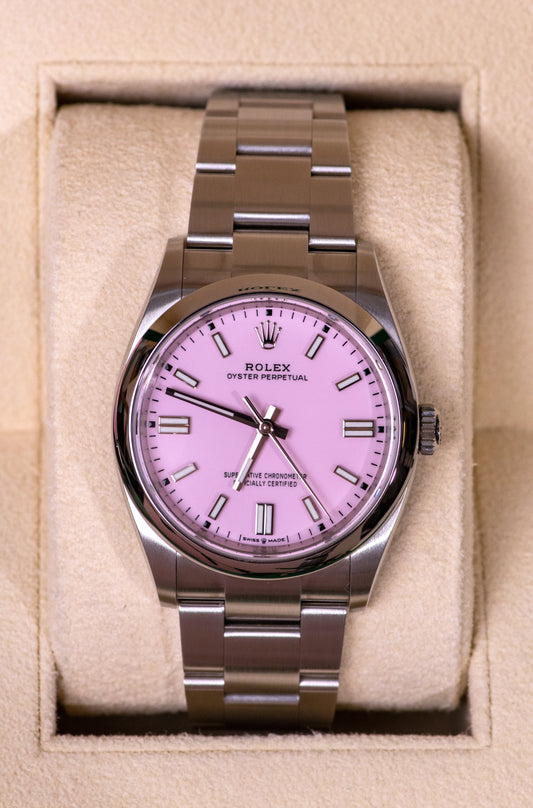 ساعة رولكس أويستر بيربيتوال 36 مم باللون الوردي الحلوى