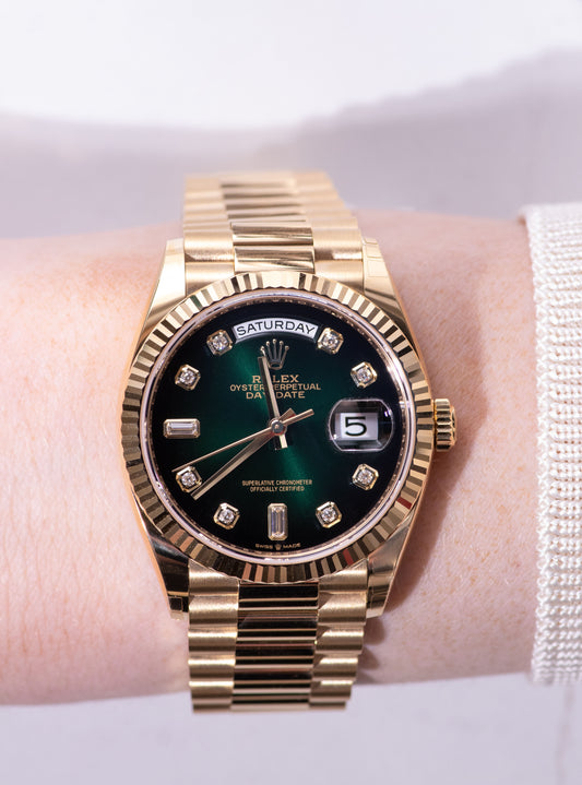 ساعة رولكس داي ديت 36 مم بمينا أخضر متدرج