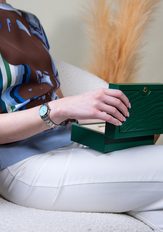 ساعة رولكس أويستر بيربيتوال باللون الأزرق الفيروزي