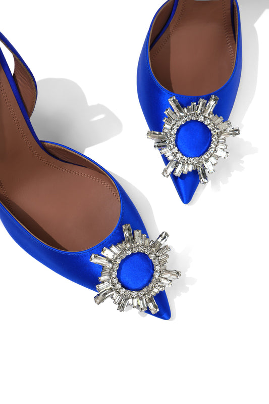 Amina Muaddi Satin Blue Electric Slingback Pumps