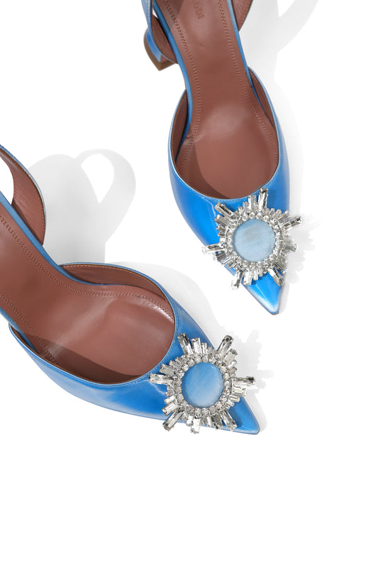 Amina Muaddi Blue Shadow Celeste Slingback Pumps