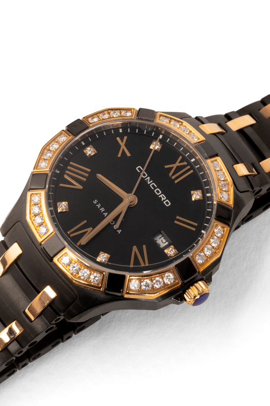 Concord Saratoga Black Diamond Rose Gold Stainless Steel Watch 31mm