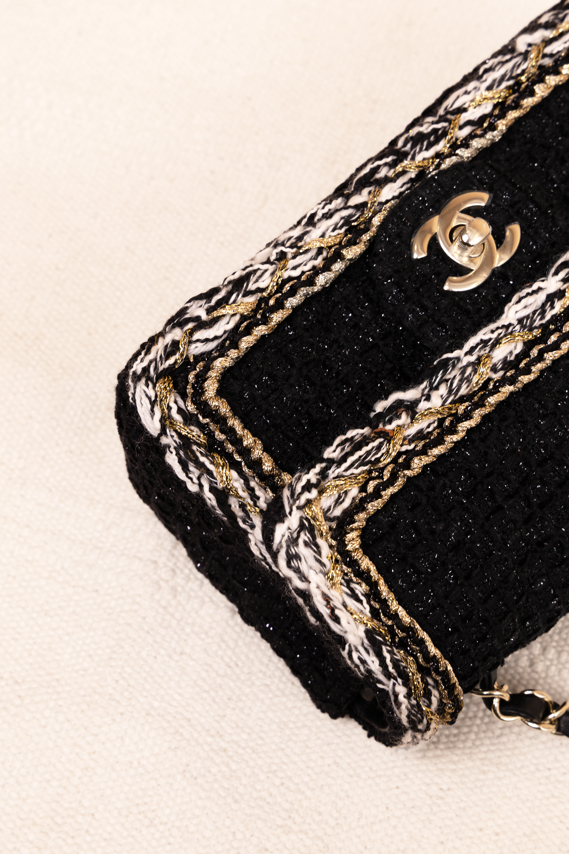 Chanel Small Black/Gold/White Tweed Flap Bag