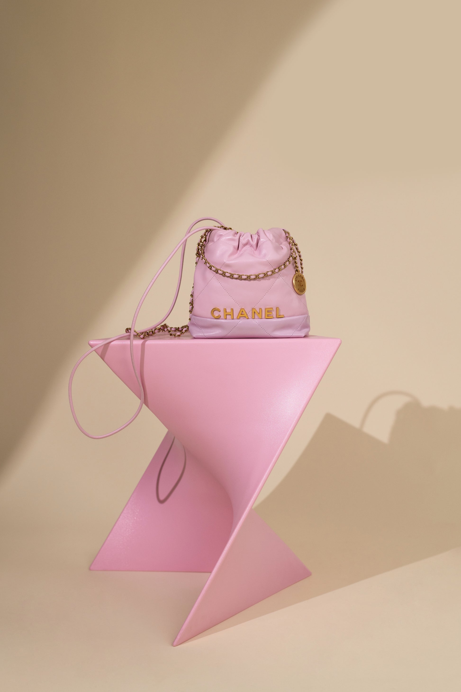 حقيبة شانيل هوبو صغيرة وردية اللون