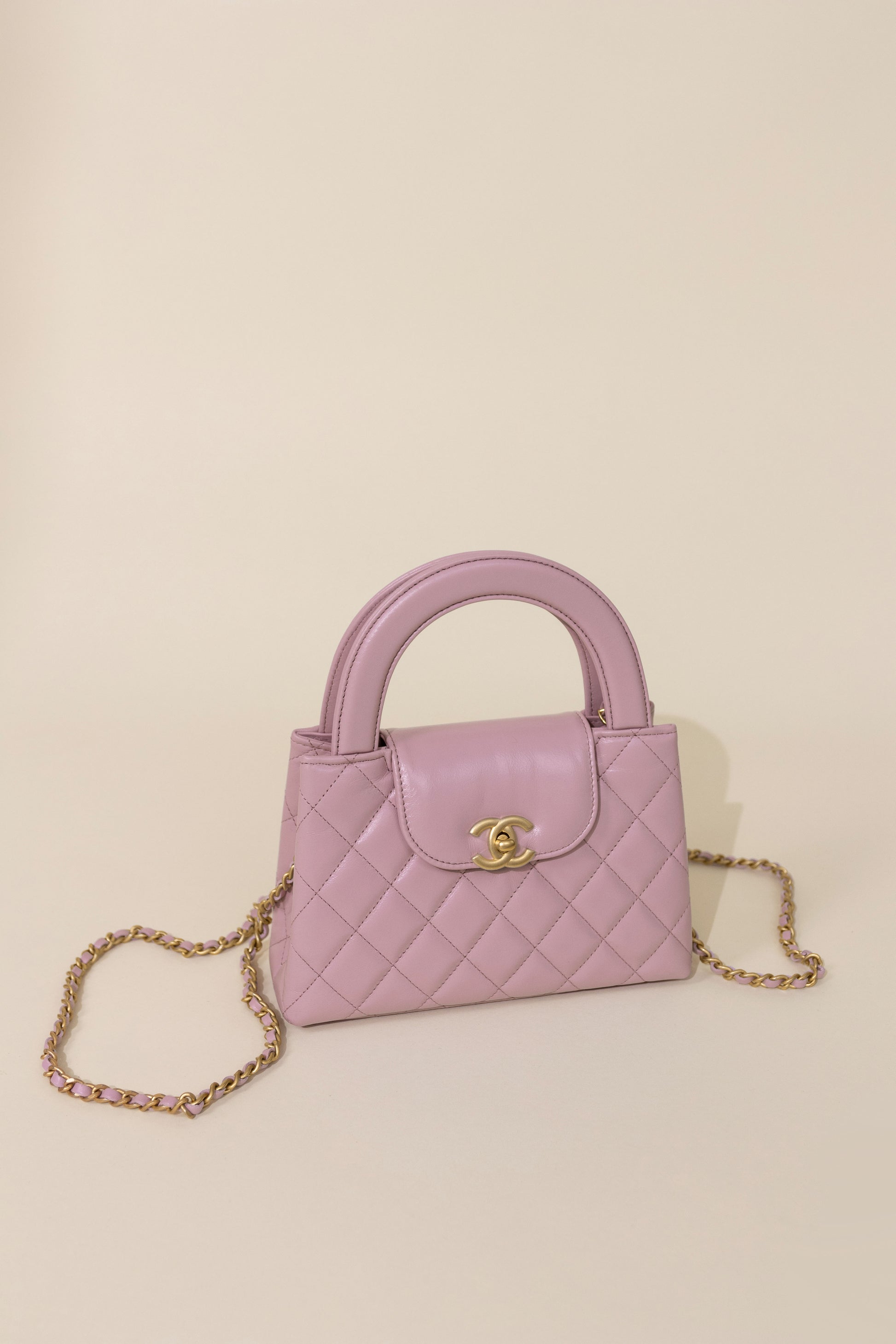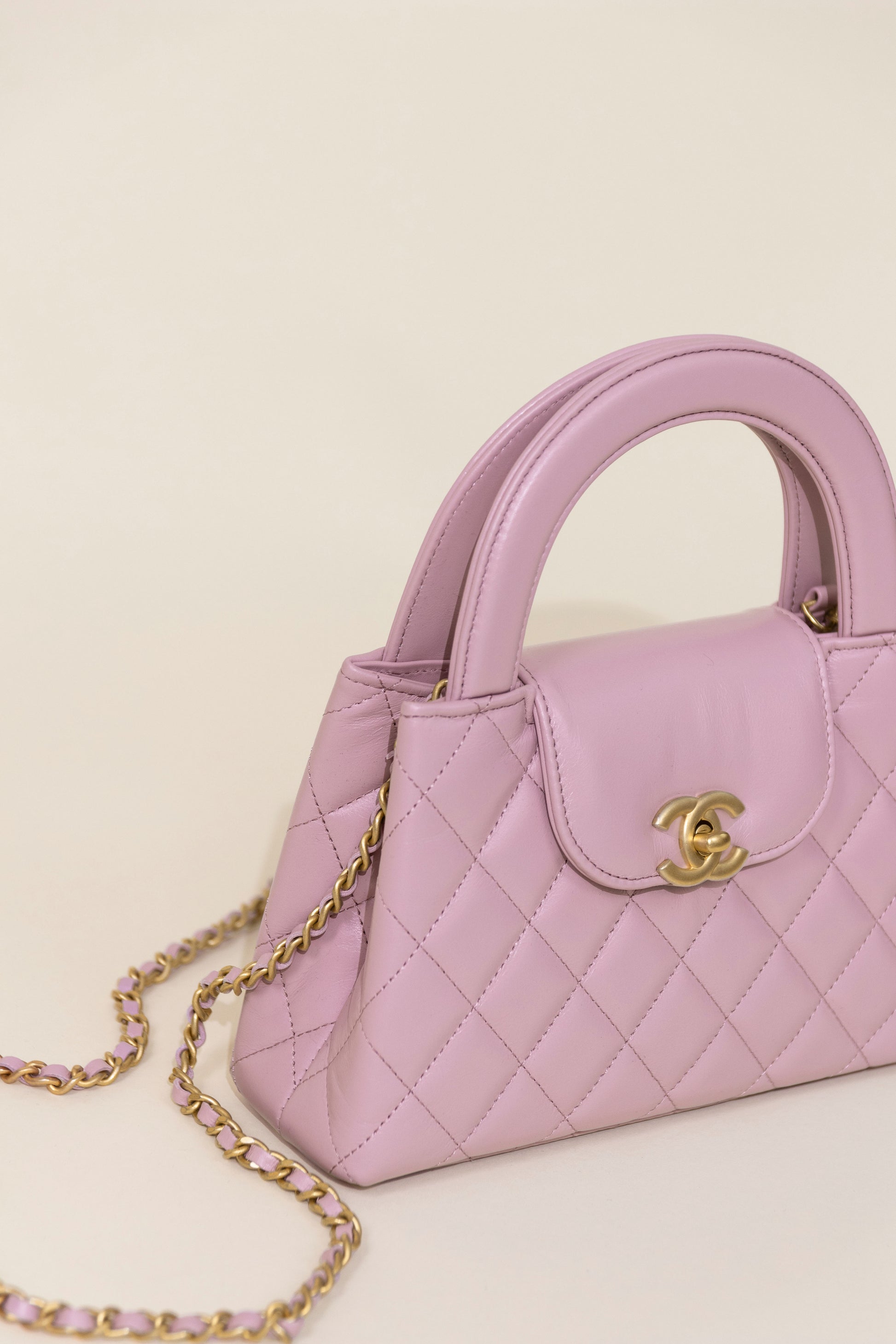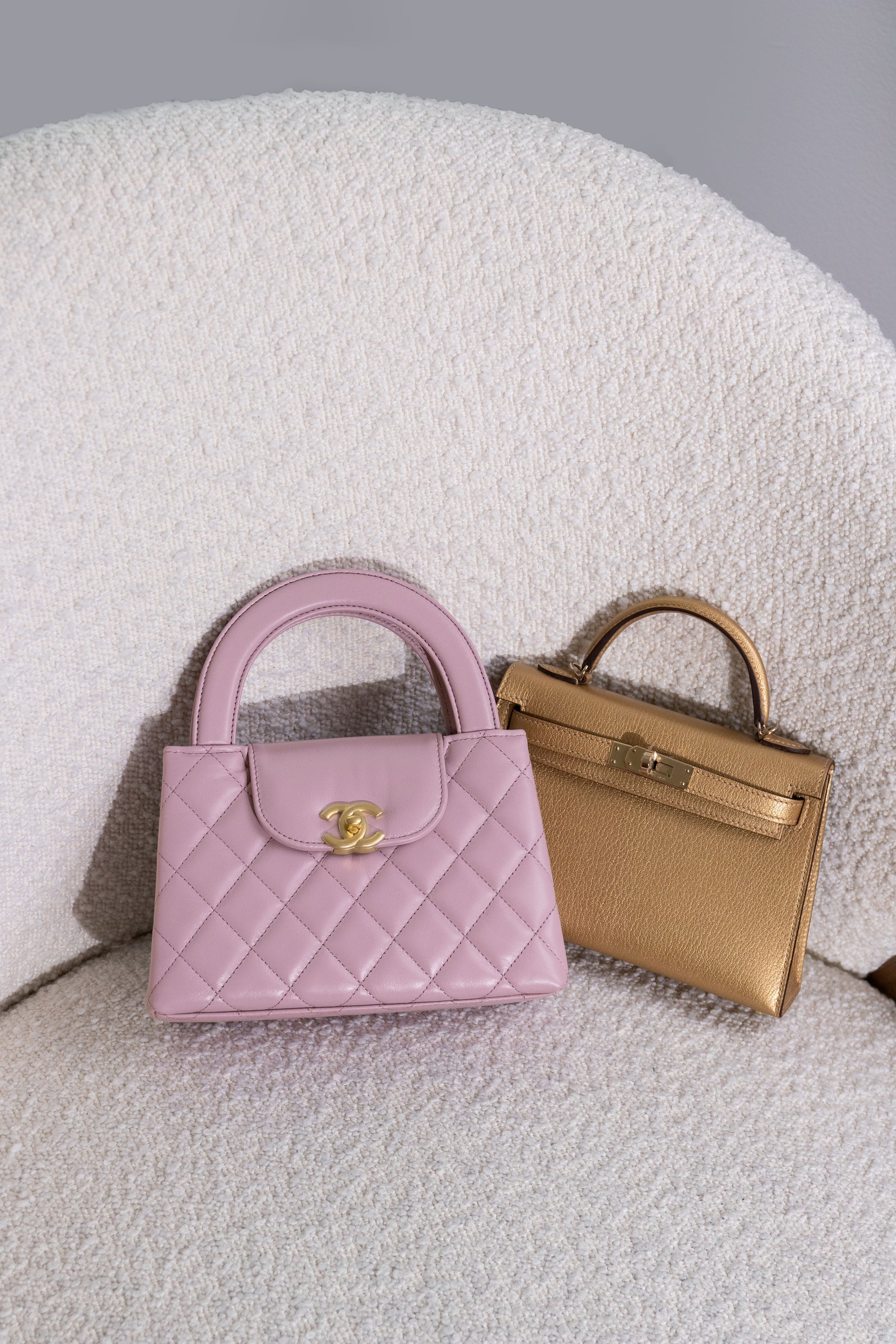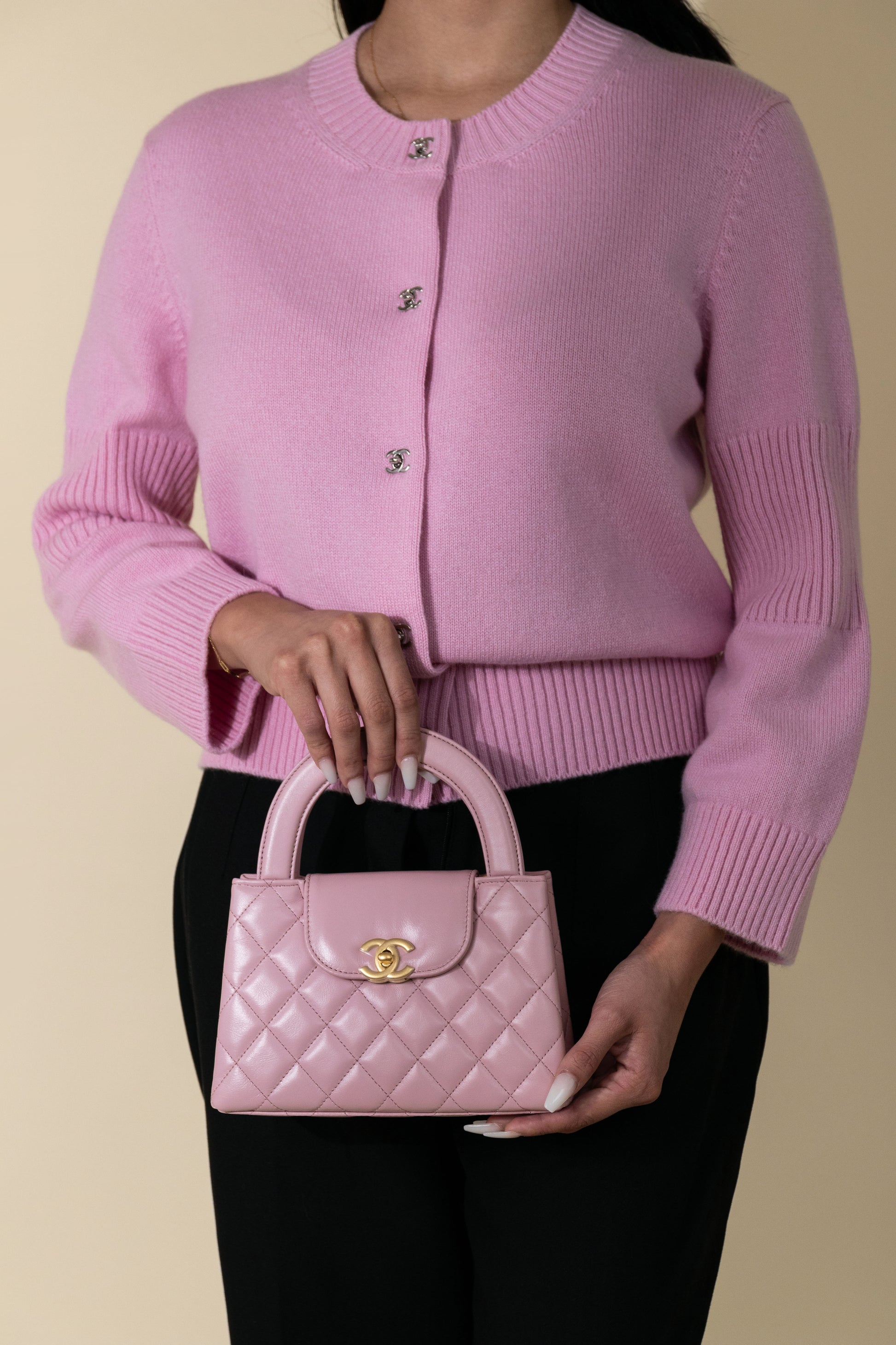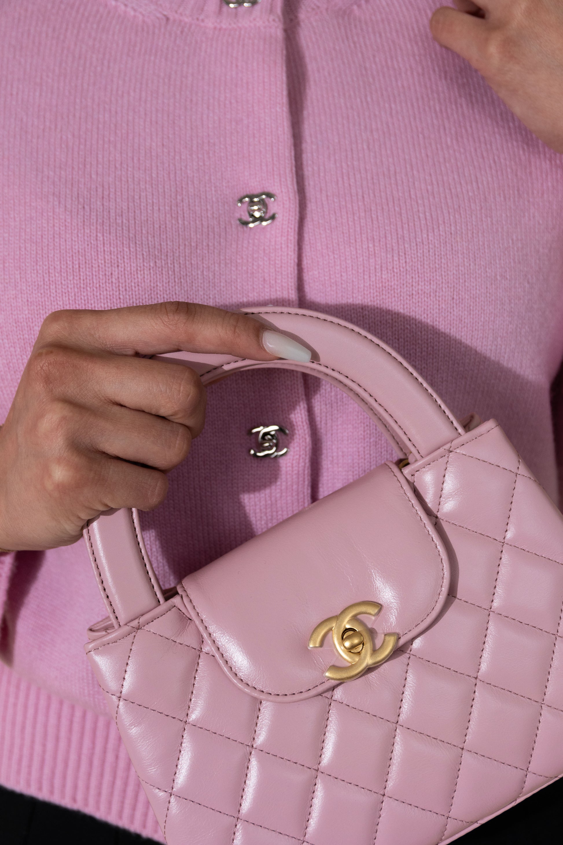 حقيبة شانيل ذات المقبض العلوي باللون الوردي الفاتح مع كارديجان CC باللون الوردي
