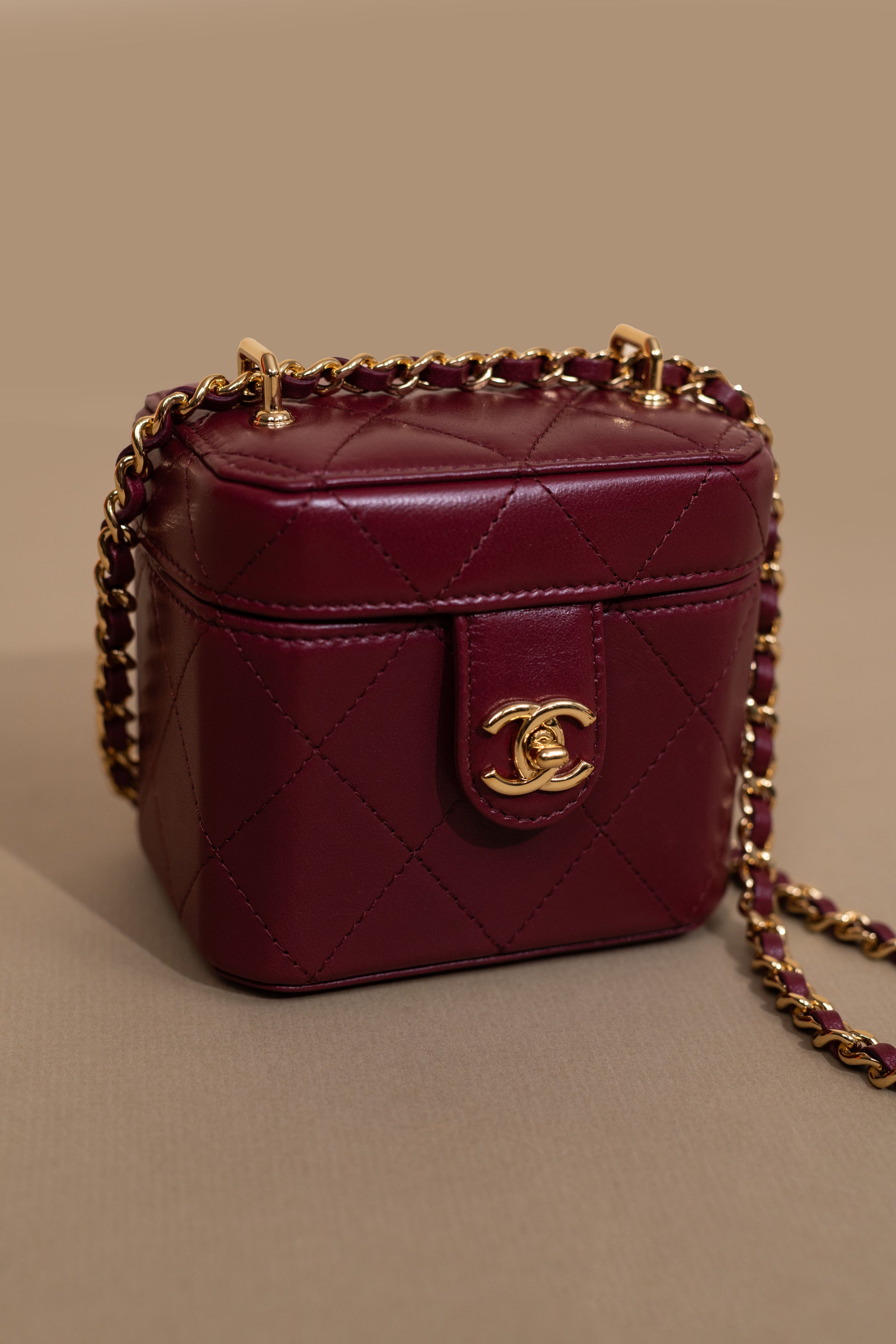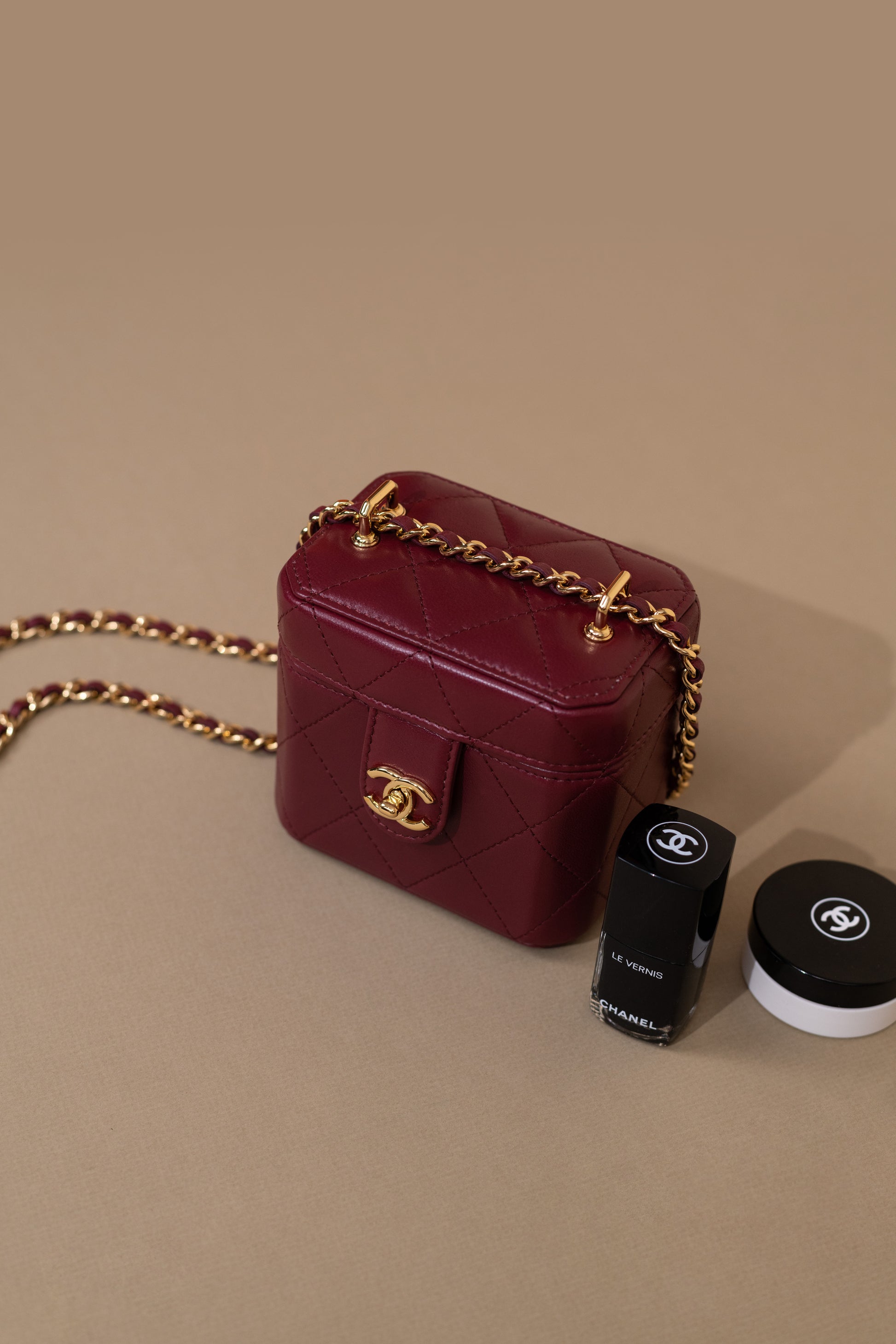 حقيبة مستحضرات تجميل شانيل بورجوندي مع سلسلة