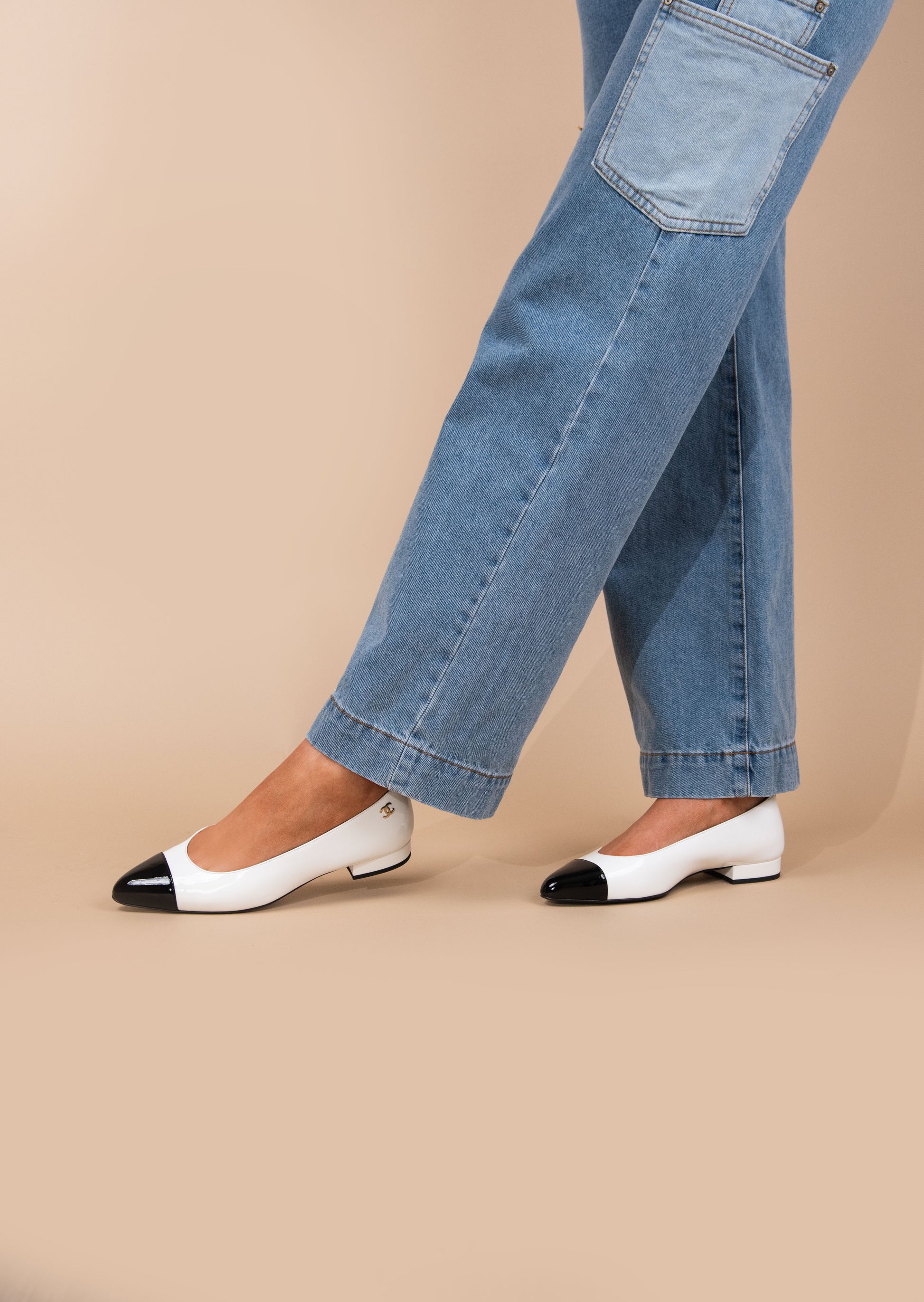 أحذية شانيل المسطحة باللونين الأبيض والأسود