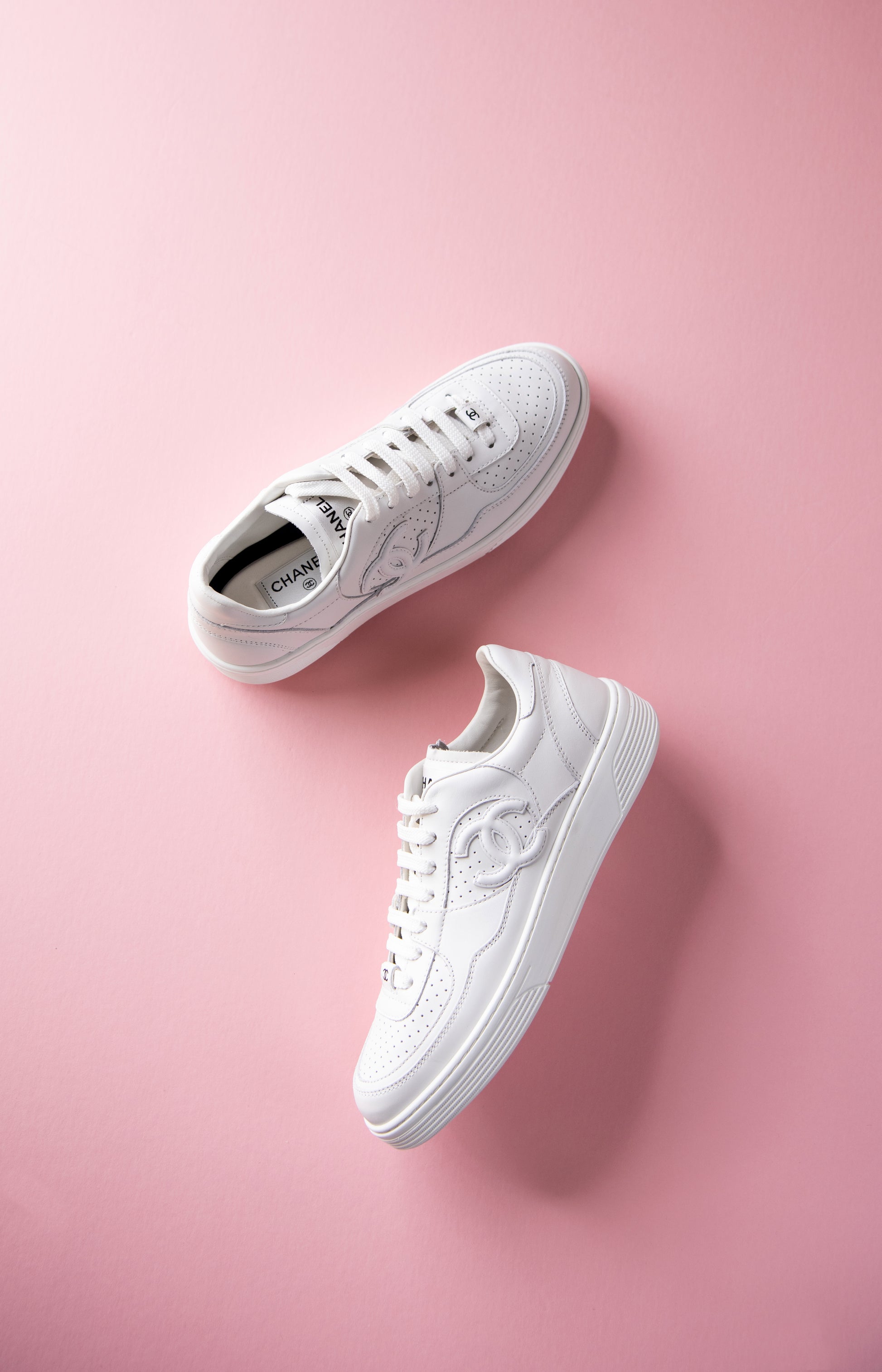 حذاء شانيل سي سي الرياضي باللون الأبيض