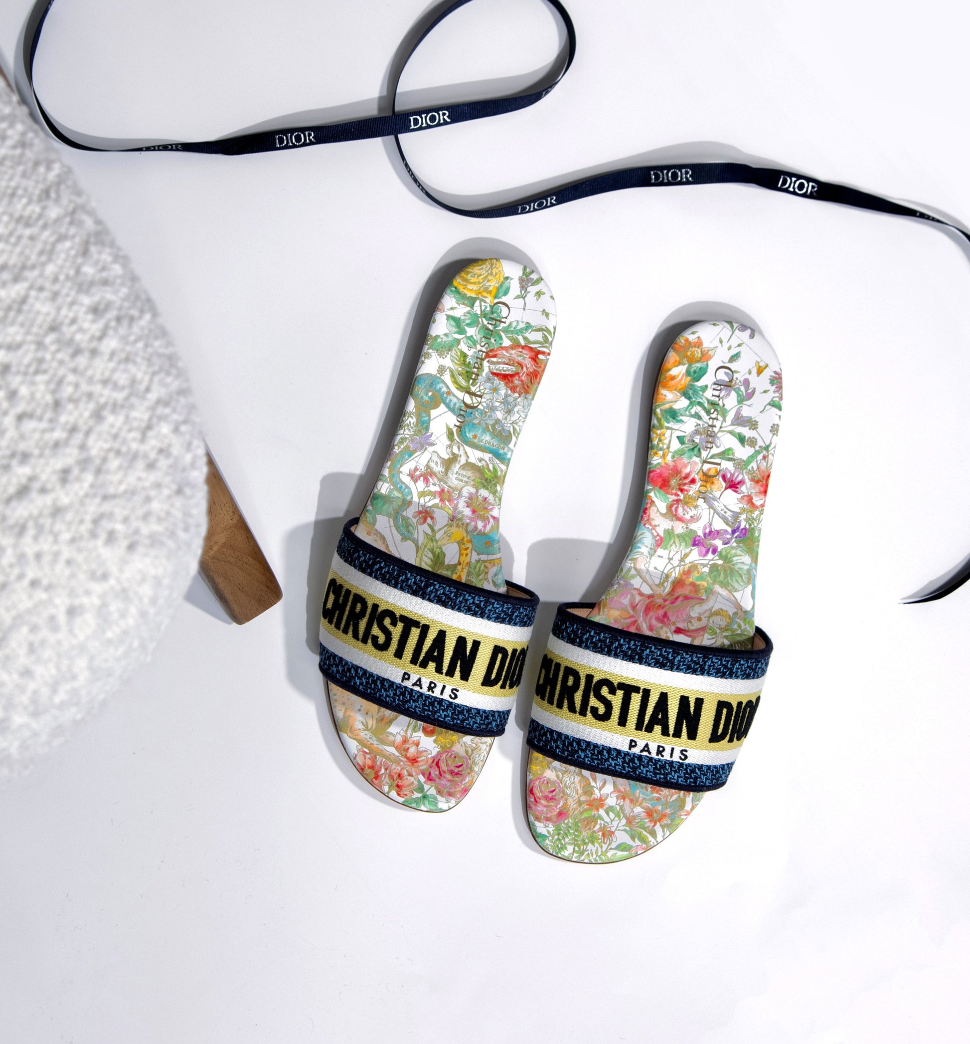 ديور - شبشب دواى أبيض متعدد الألوان مطرز بنقشة كوكبة دي من القطن