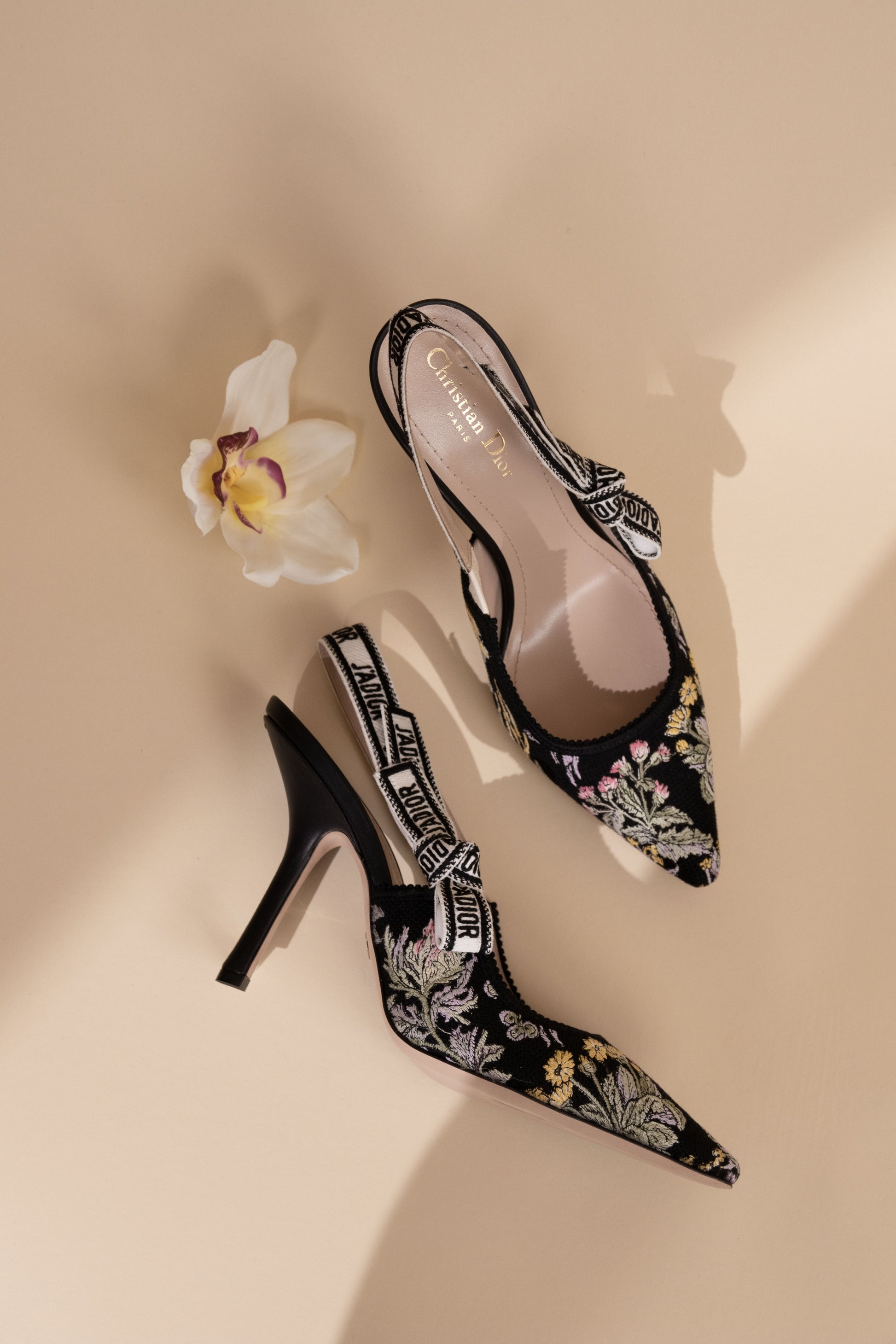 ديور - حذاء J'Adior أسود مفتوح من الخلف ومزين بالزهور