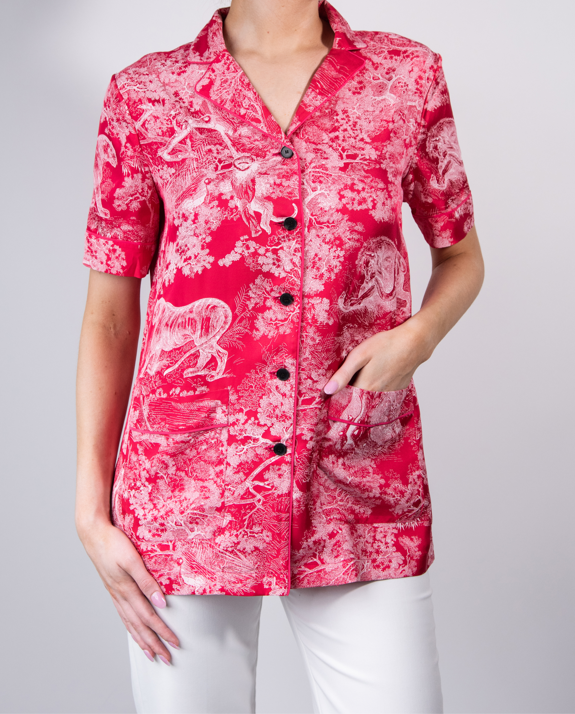 ديور - بلوزة من الحرير الأحمر بأزرار