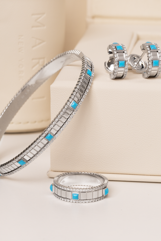 Marli Life Set Bangle, Ring, & Earrings in White Gold Diamond/Turquoise