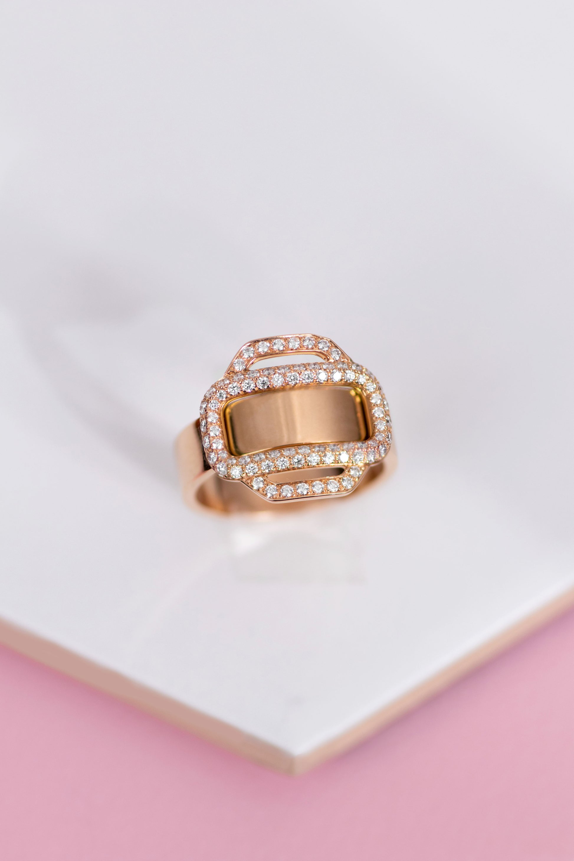 خاتم هيرميس Attelage D'or' من الذهب الوردي والألماس