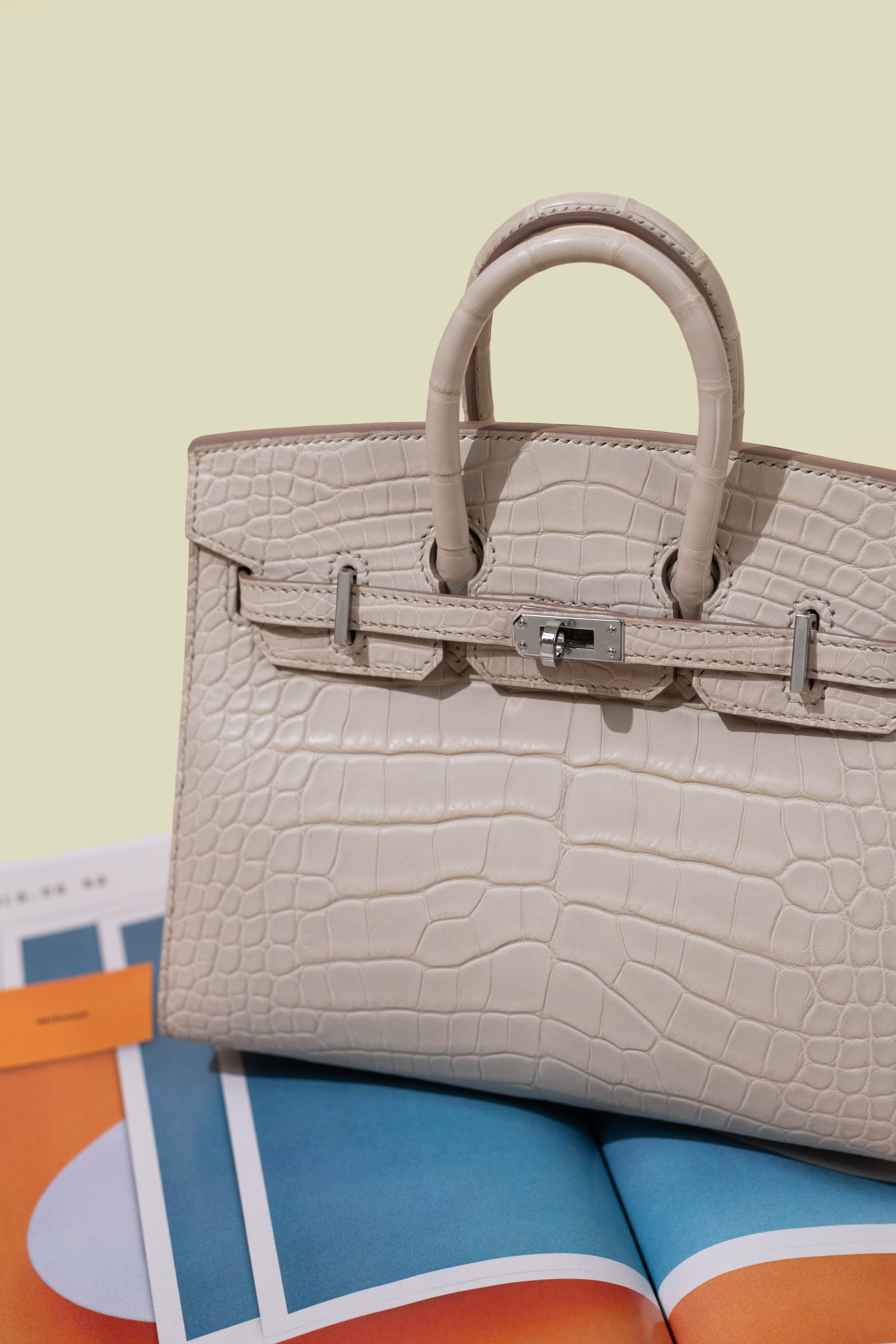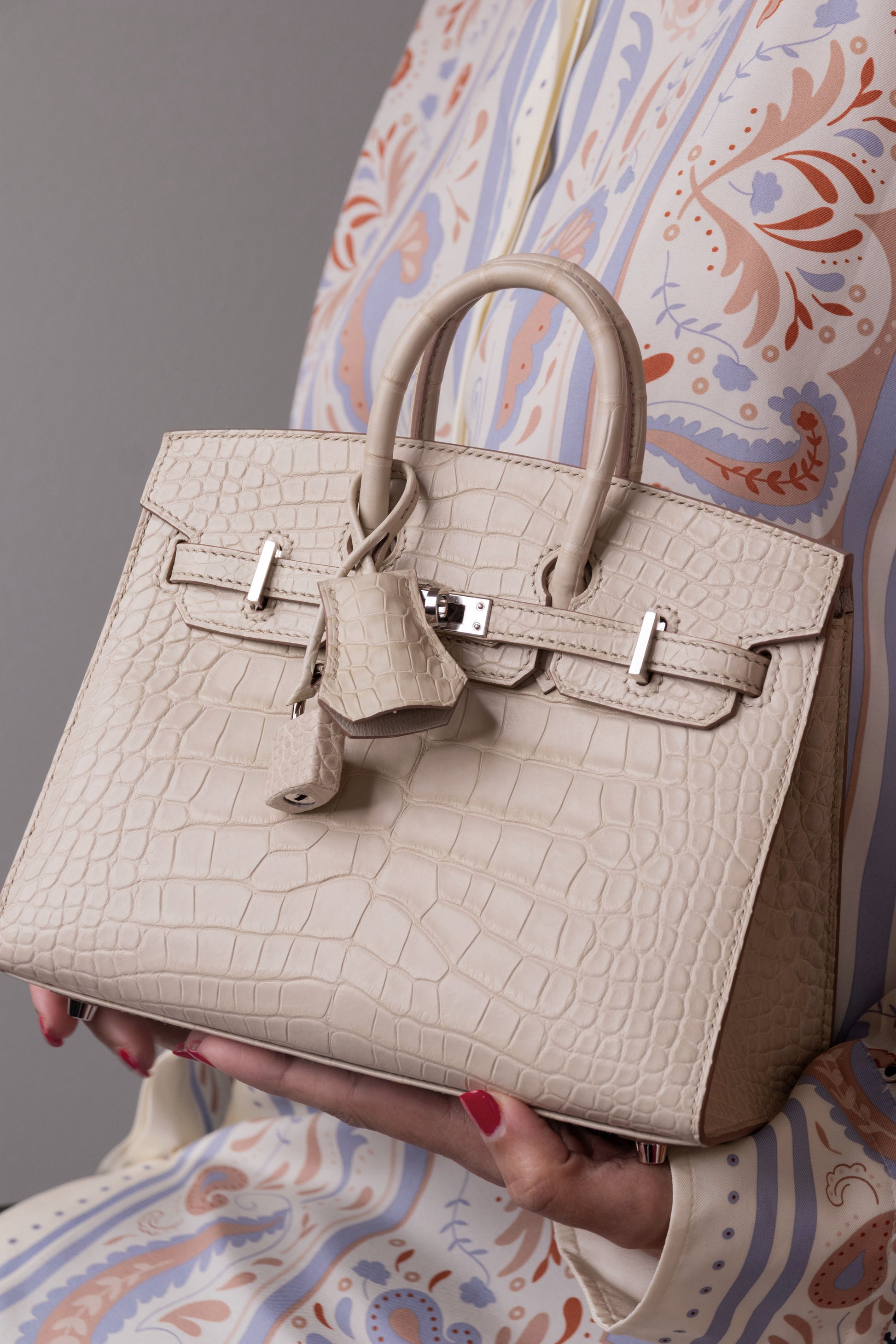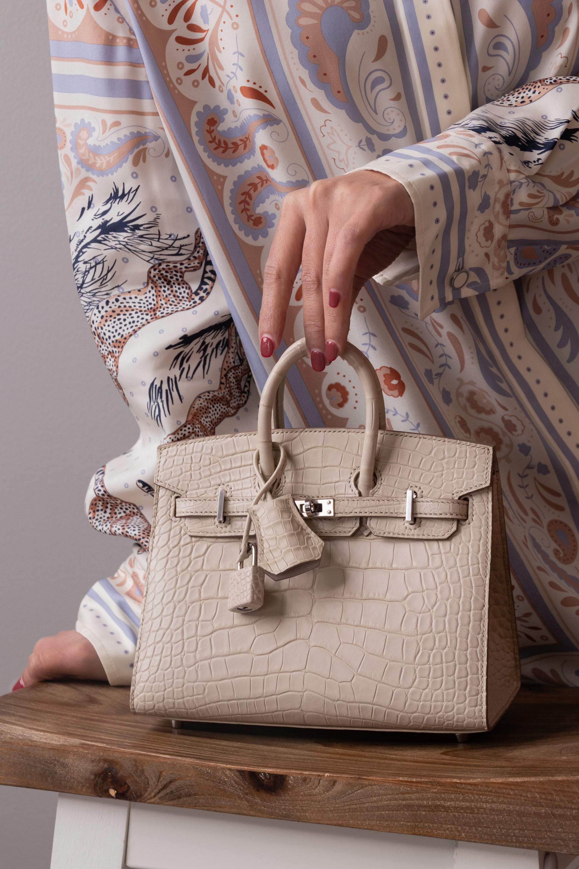 حقيبة هيرميس بيركين 20 من جلد التمساح غير اللامع PHW