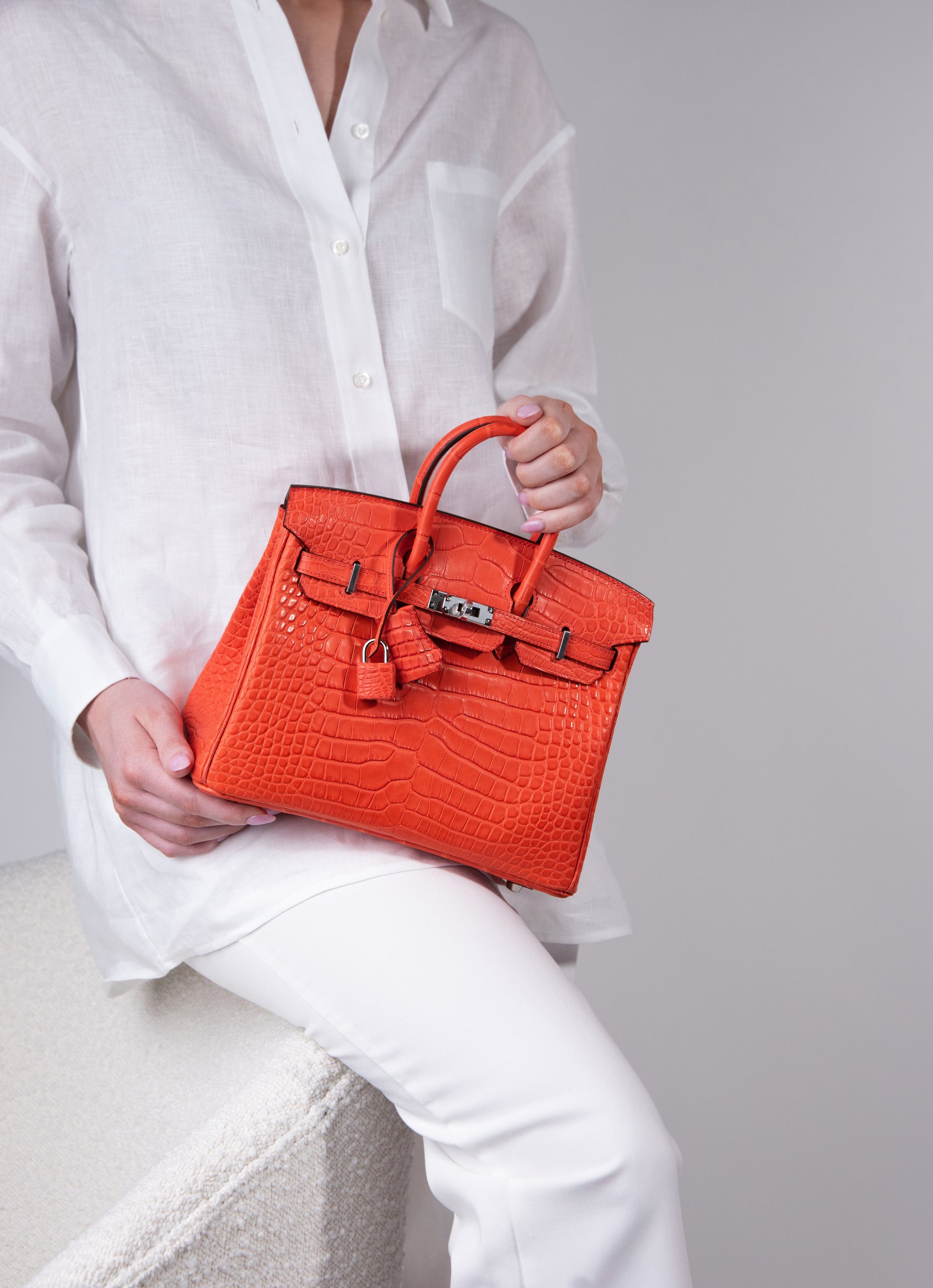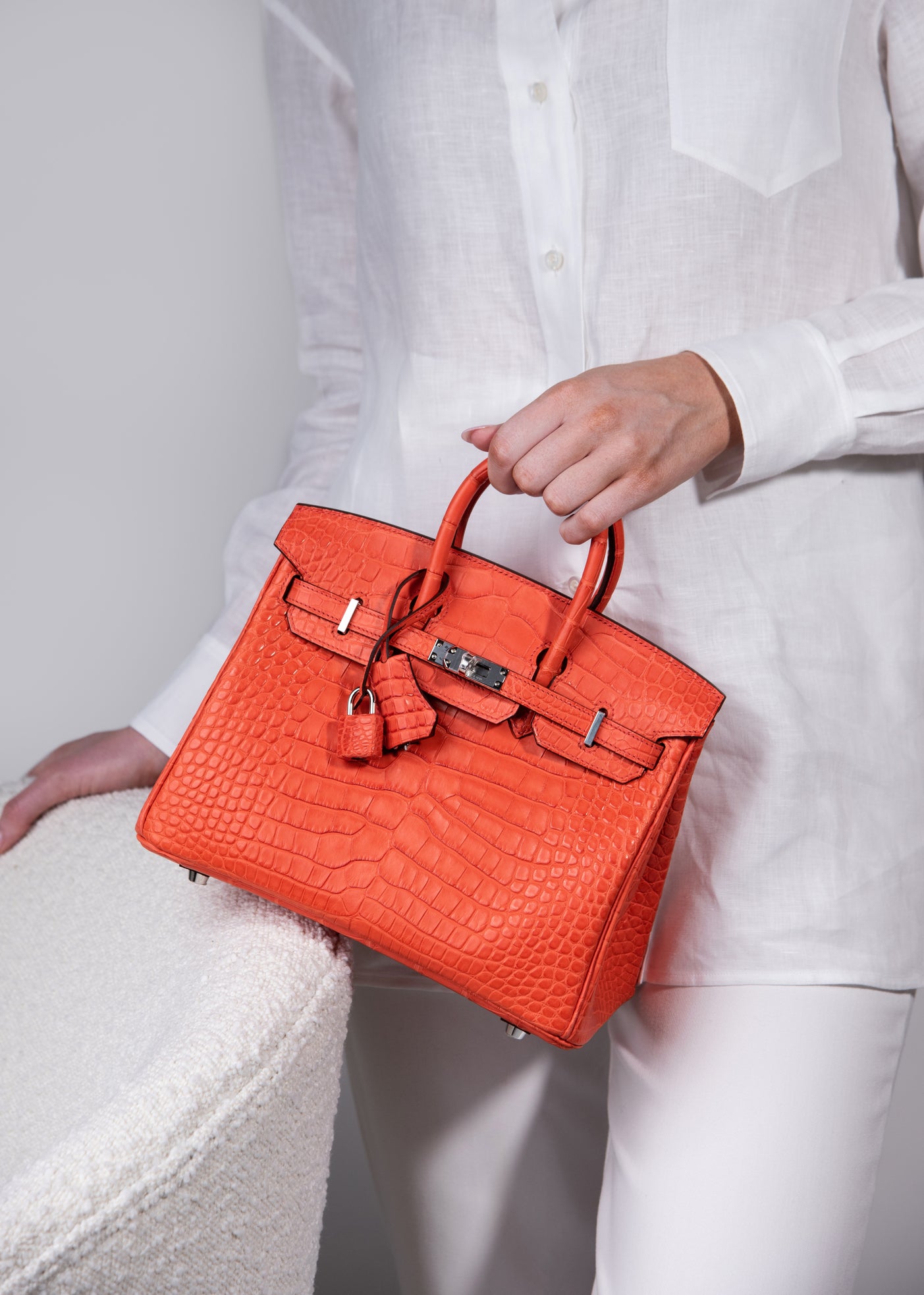 هيرميس - بيركين 25 كروكودايل مات باللون البرتقالي الخشخاش PHW