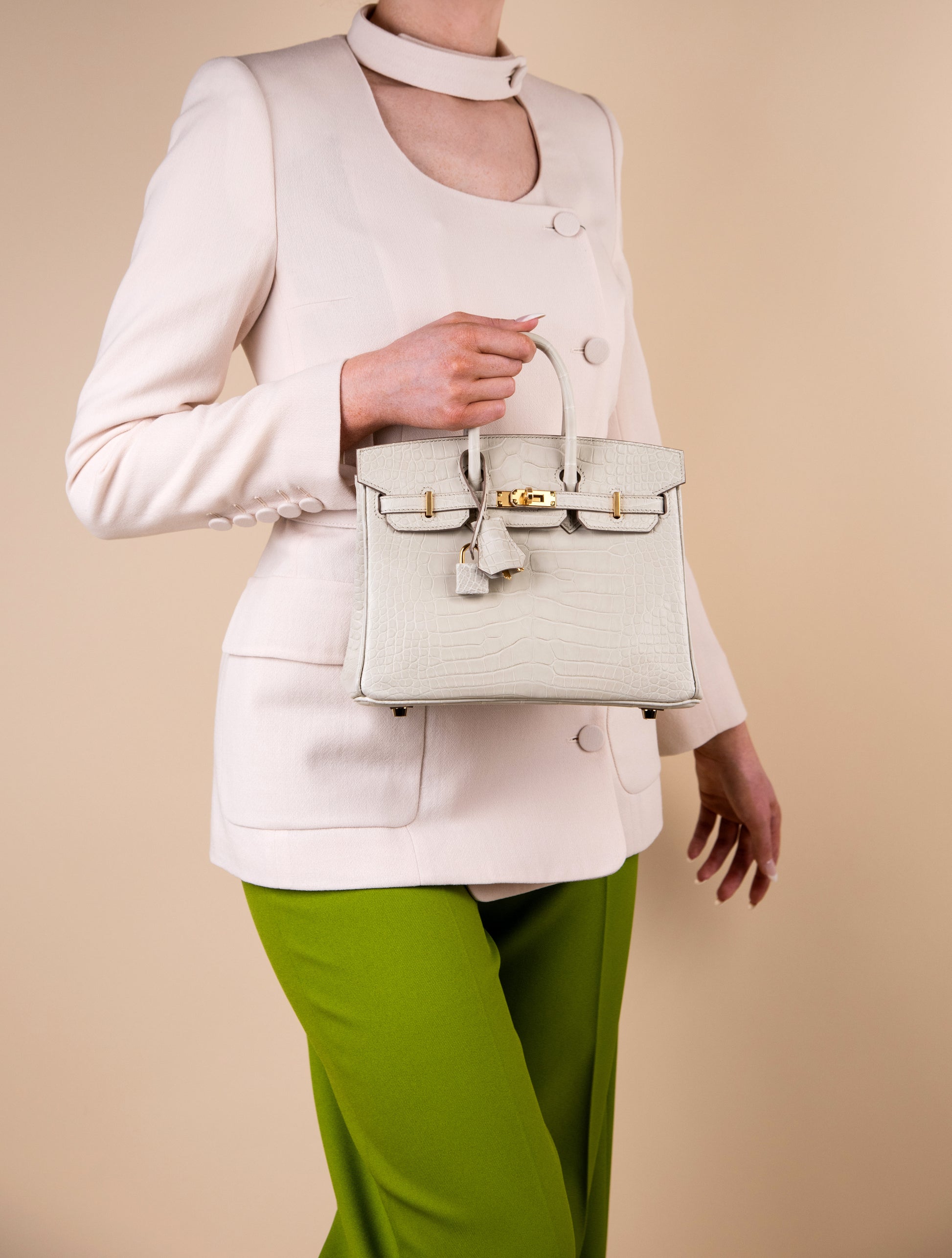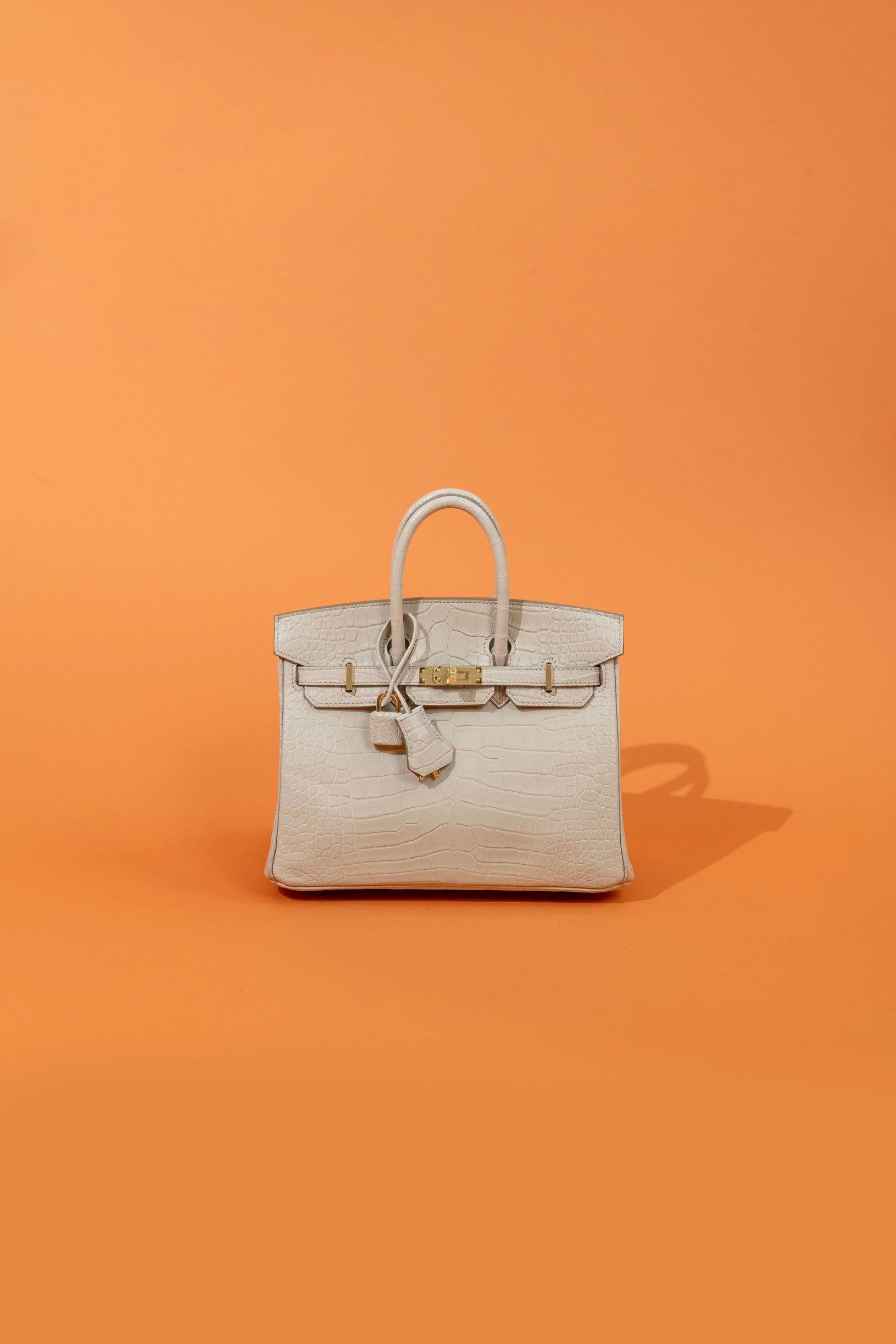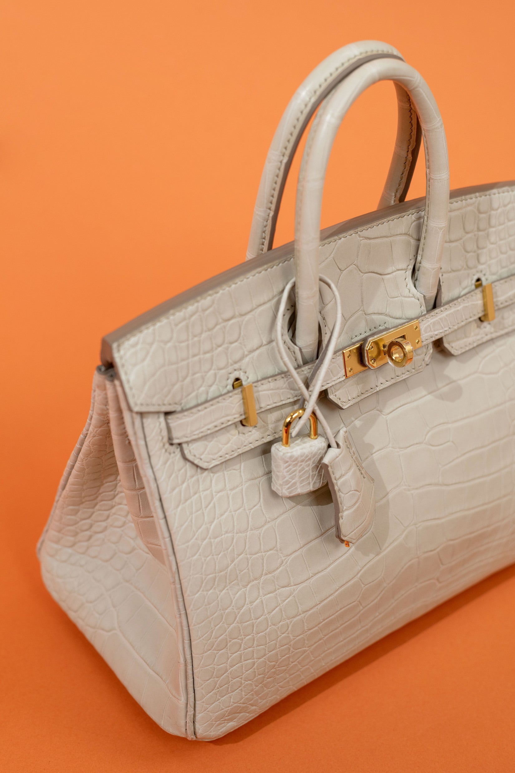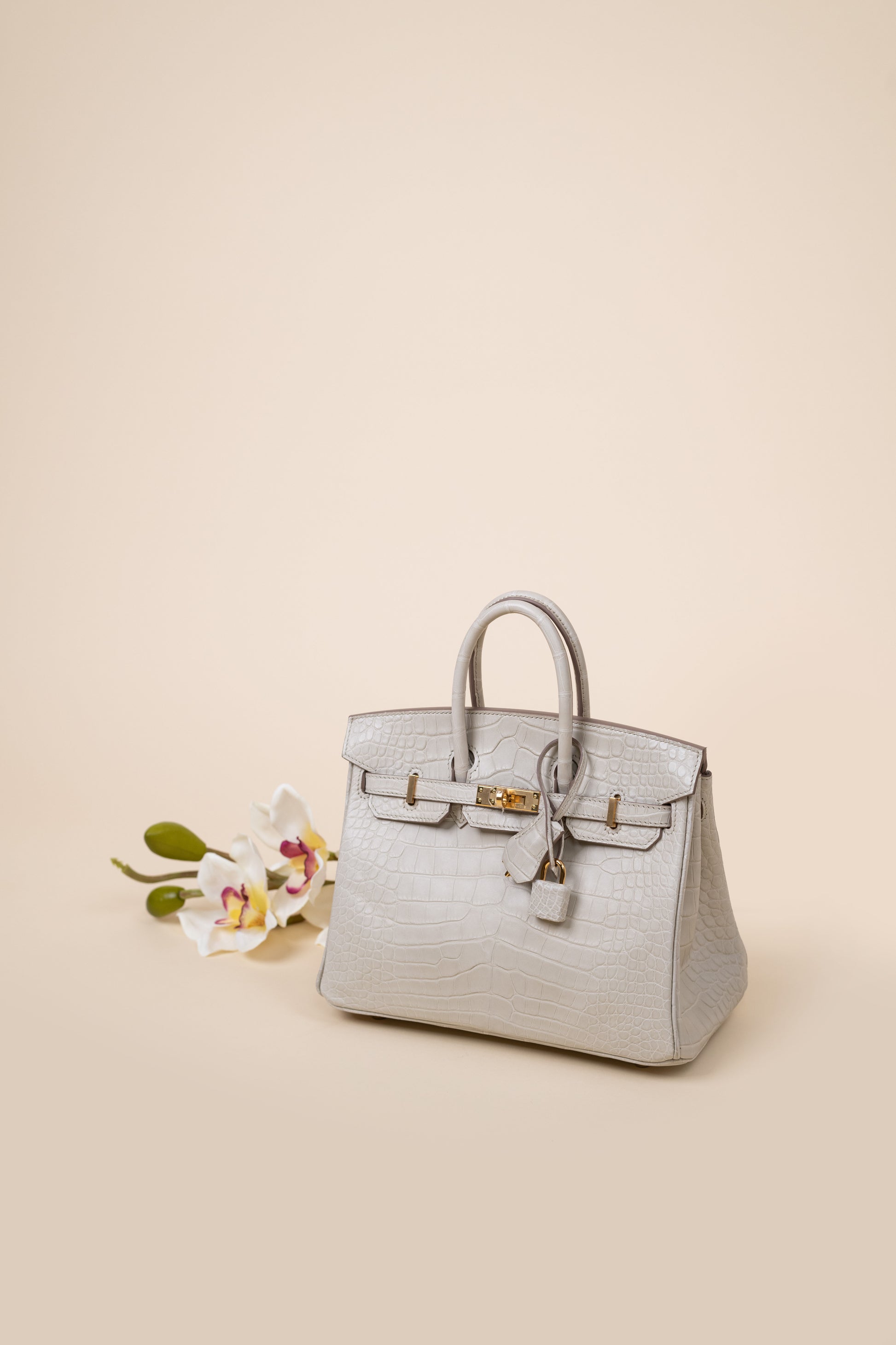 حقيبة هيرميس بيركين 25 من جلد التمساح غير اللامع باللون بيتون GHW
