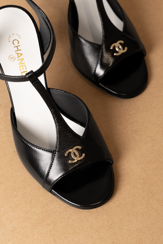 Chanel Leather CC Logo T-Strap Pumps in Black