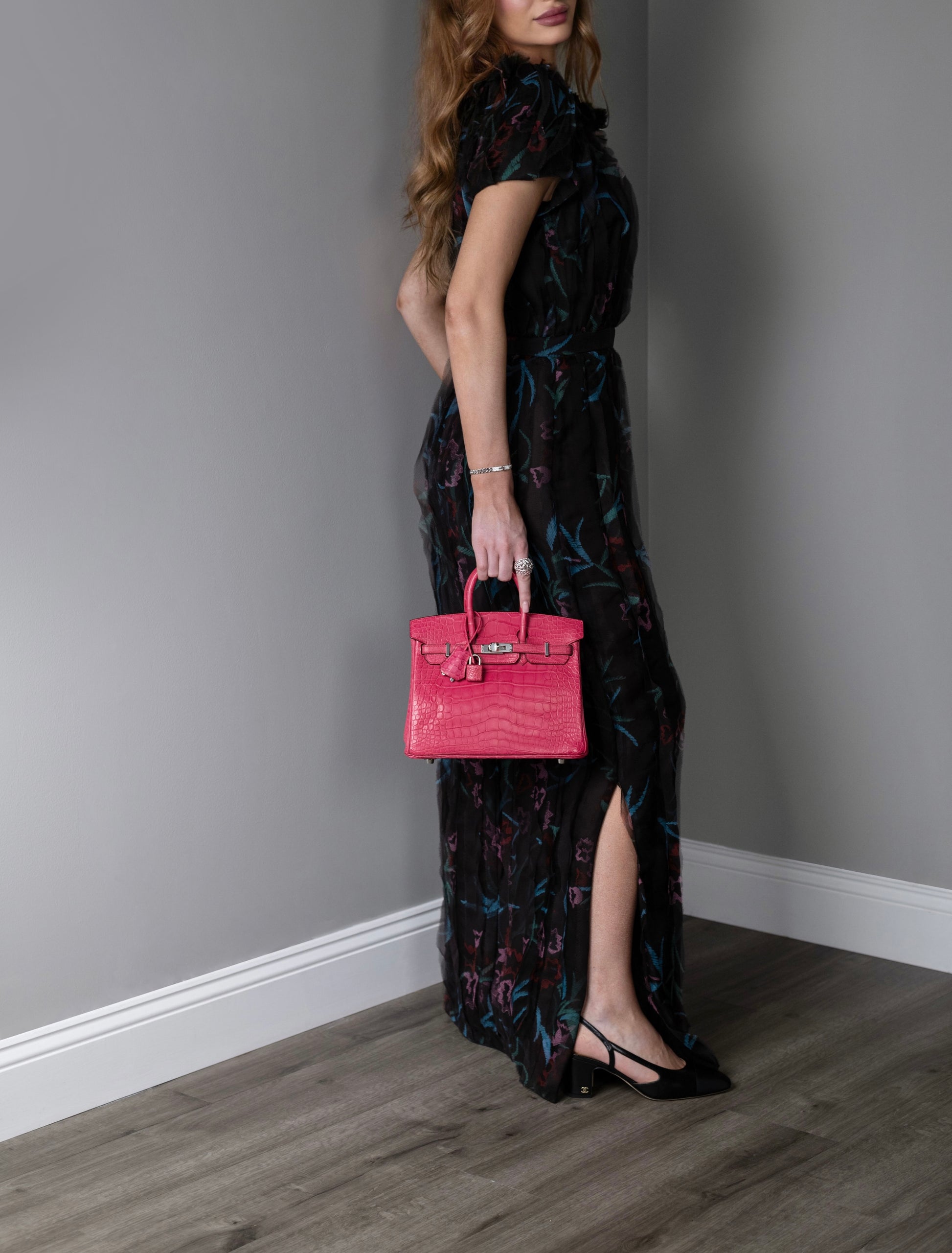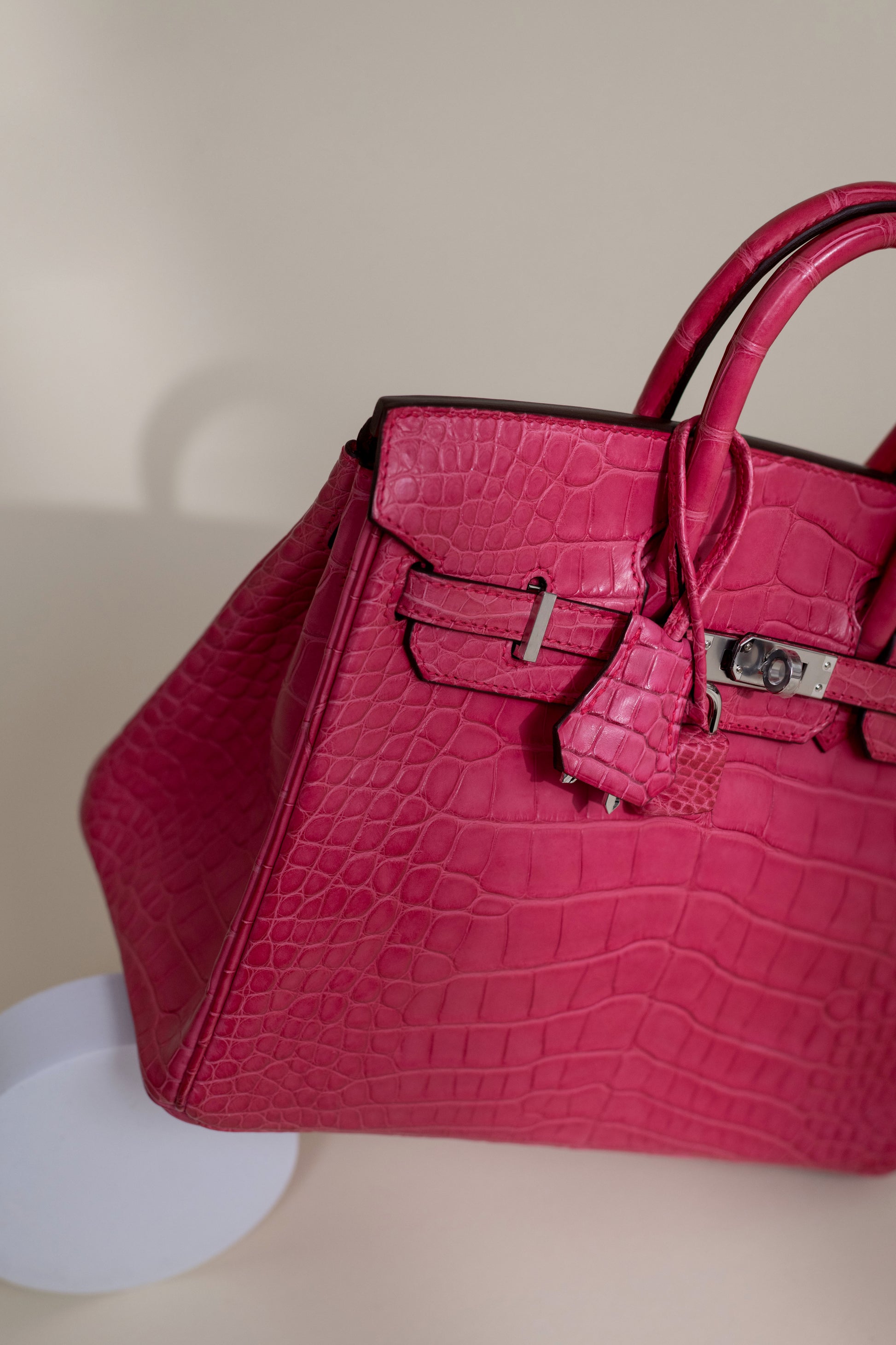حقيبة هيرميس بيركين 25 من جلد التمساح غير اللامع باللون الوردي إكستريم PHW