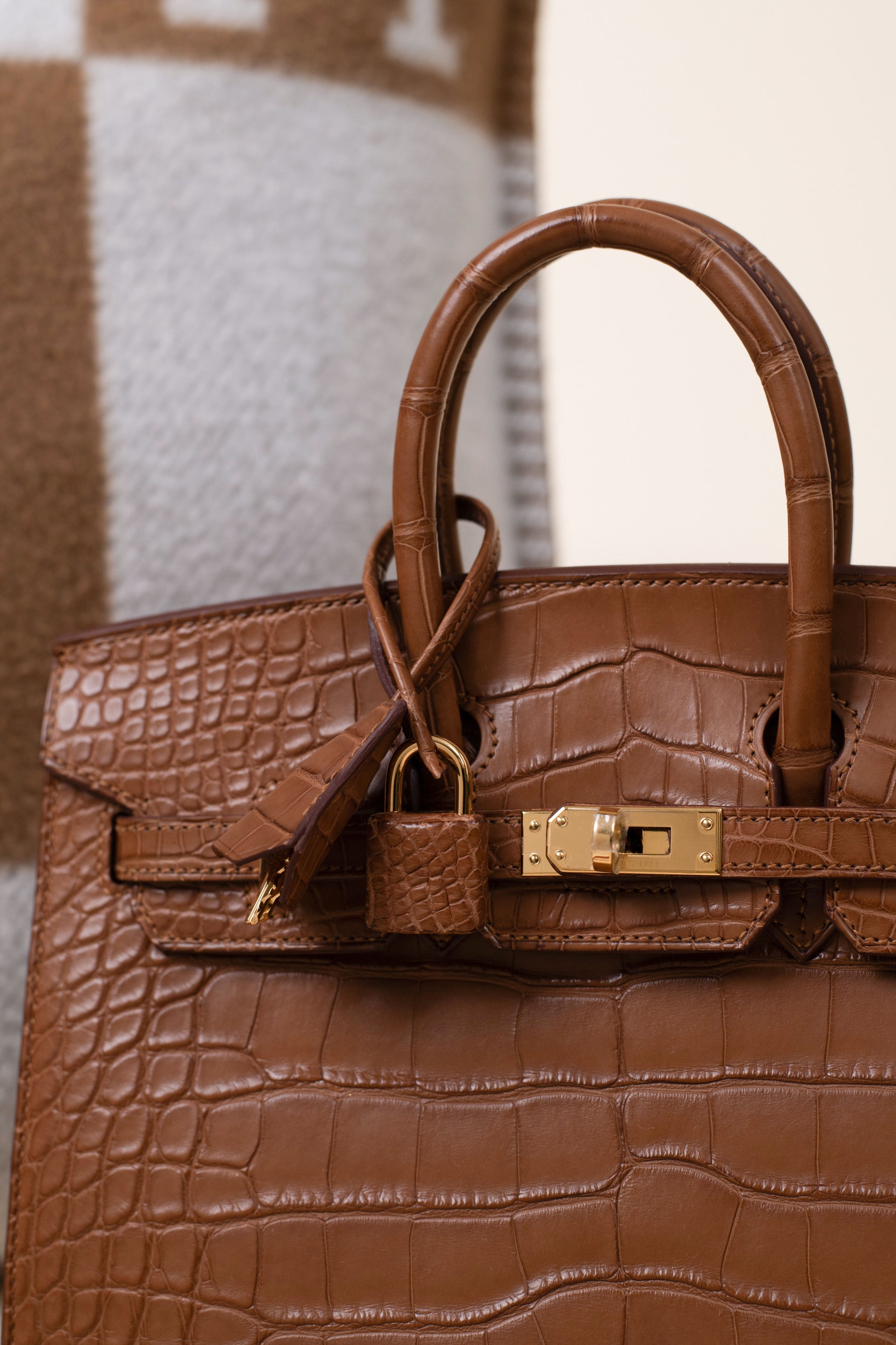 حقيبة هيرميس بيركين 25 مات كروكودايل باللون الذهبي GHW