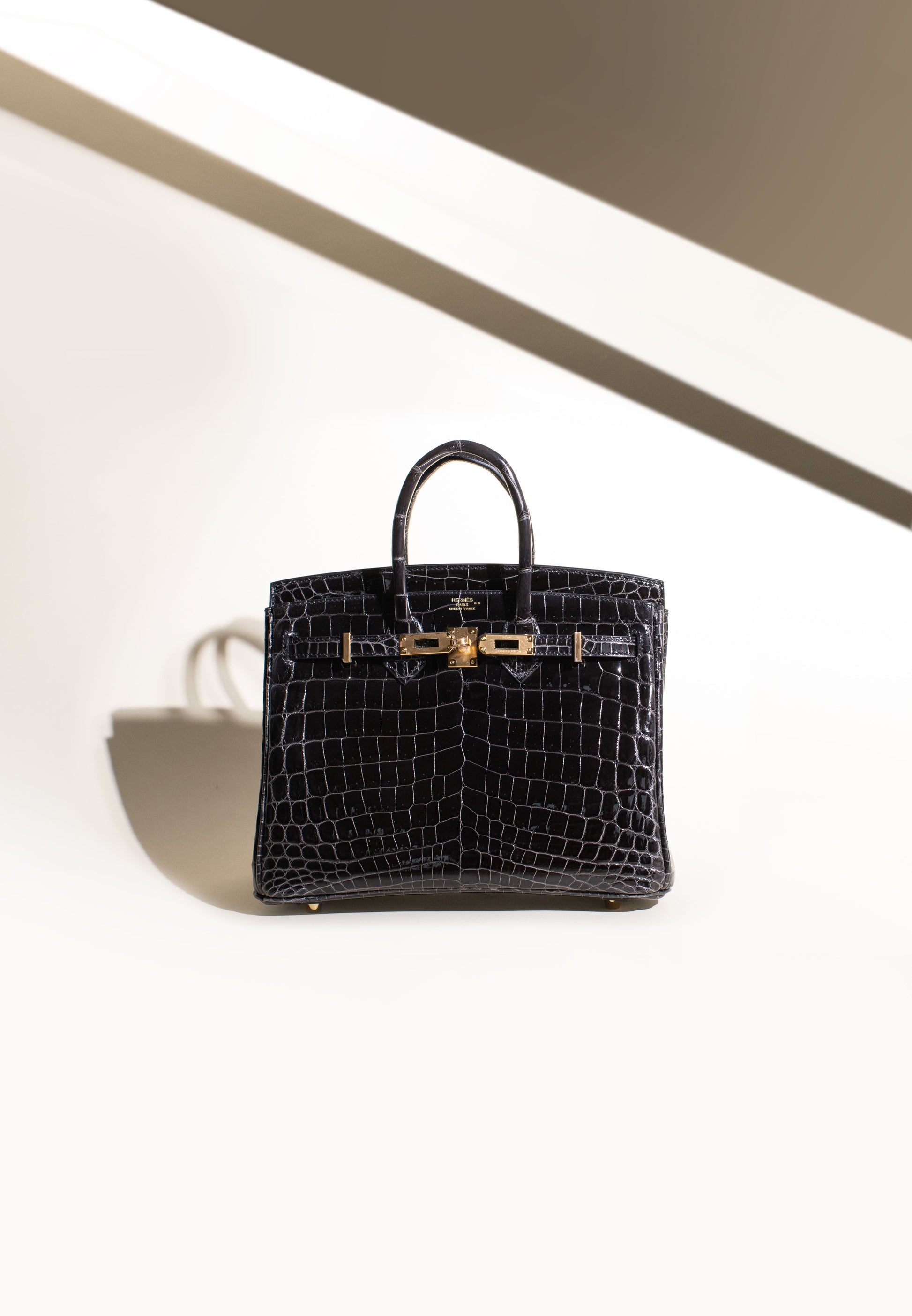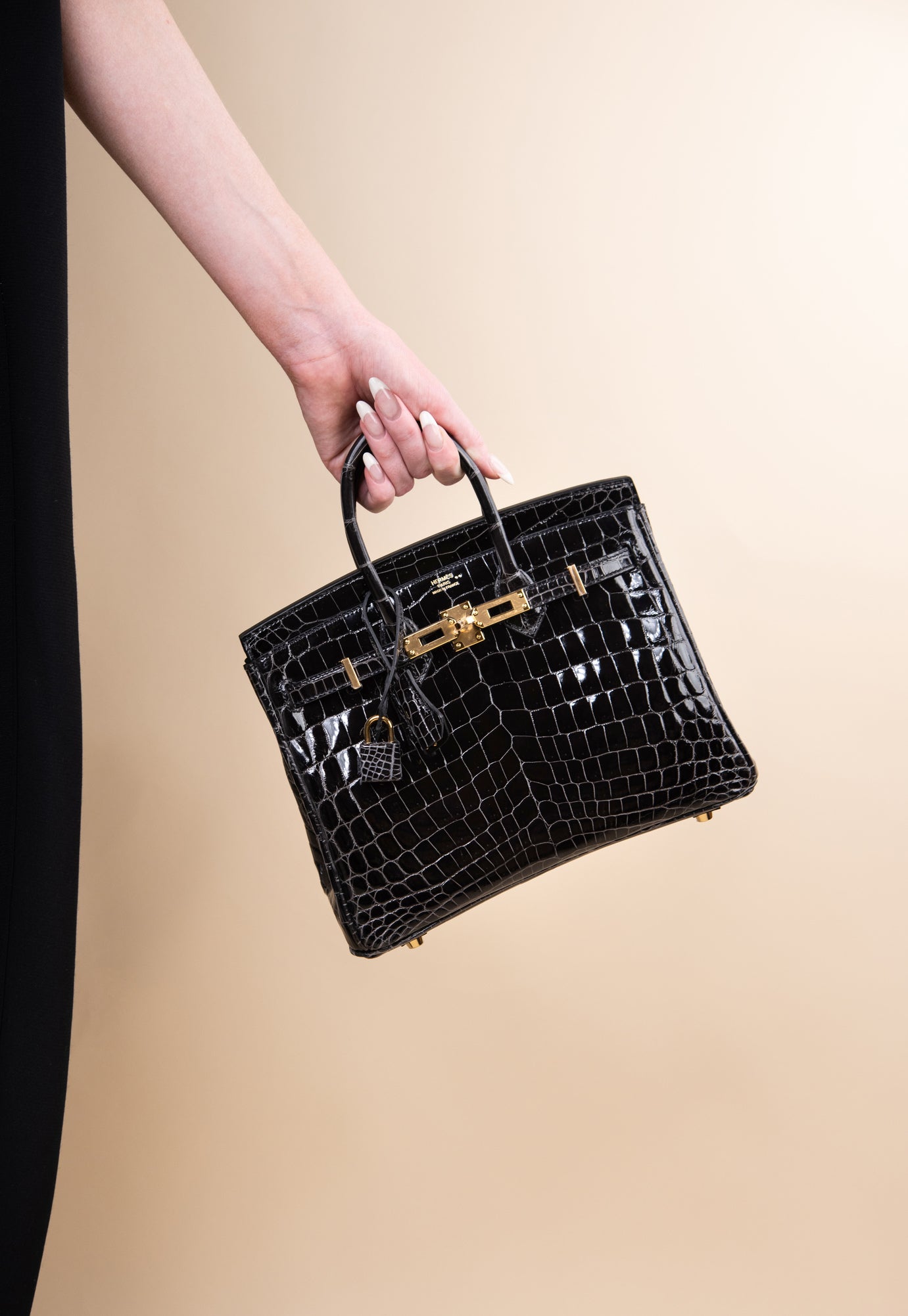 هيرميس - بيركين 25 لامع من جلد التمساح الجرافيتي GHW