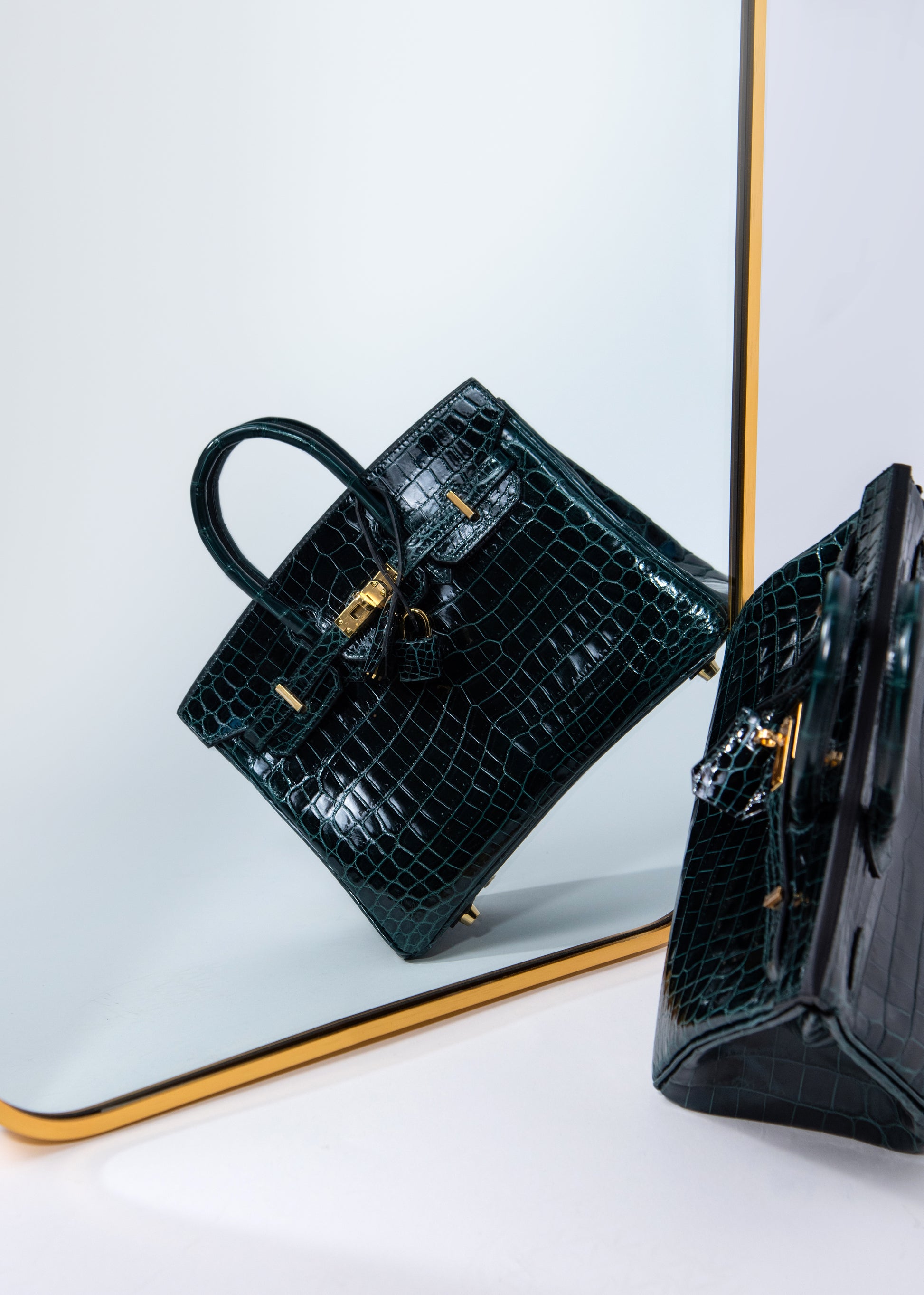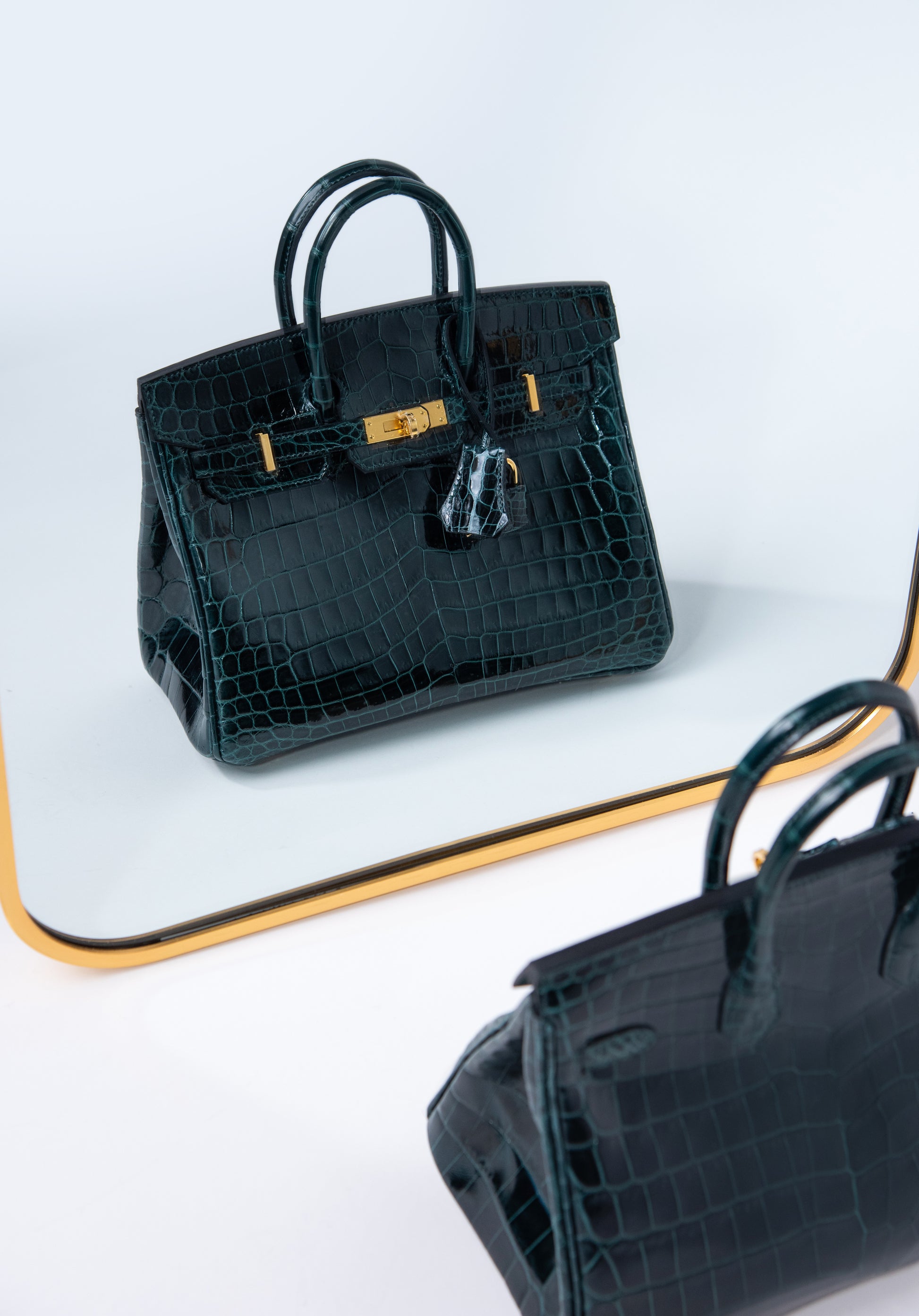 هيرميس - بيركين 25 جلد التمساح اللامع بلون فير روسو GHW
