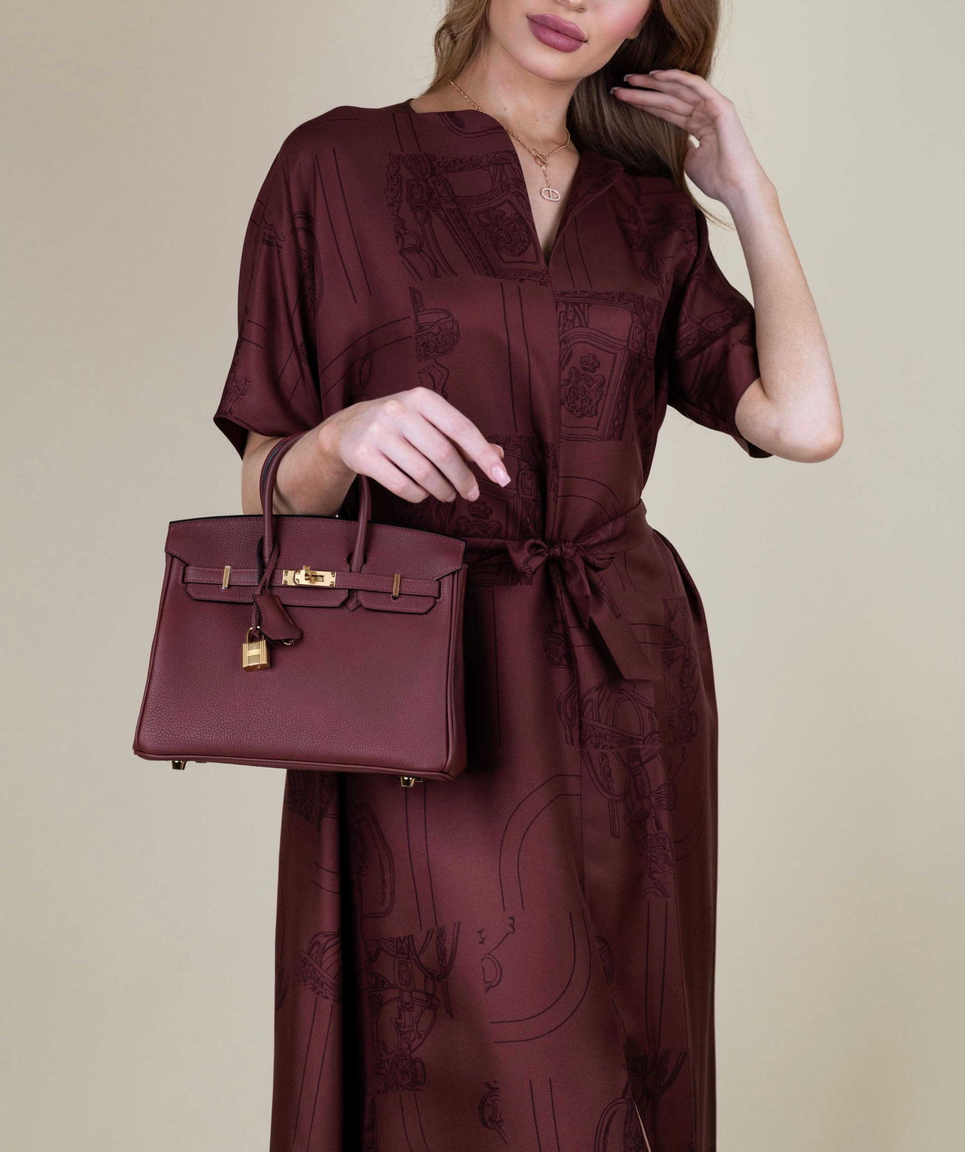 Featuring Hermès Oasis Burgundy Sandals