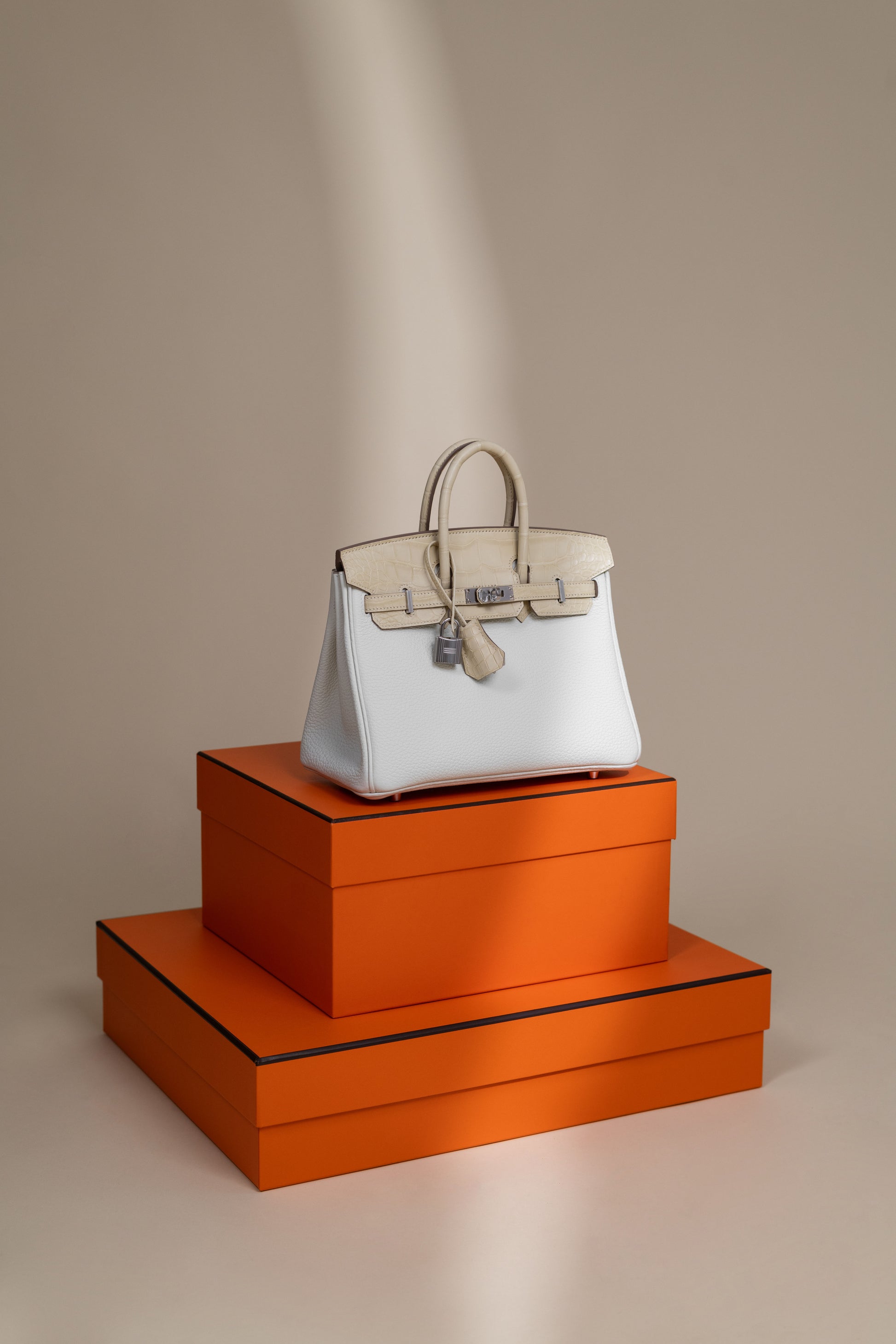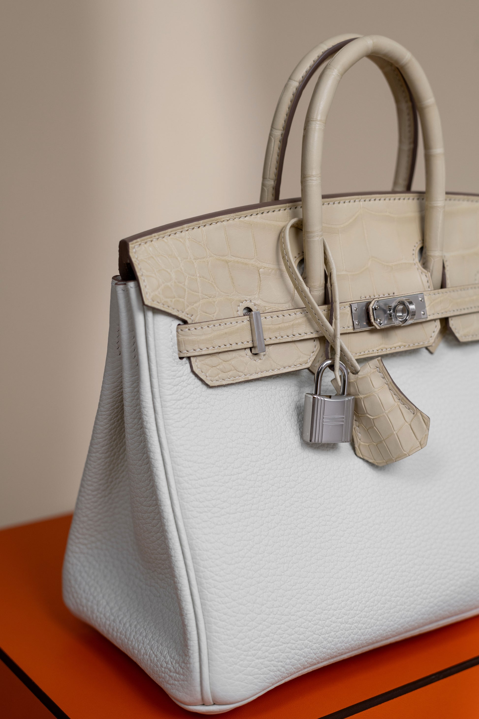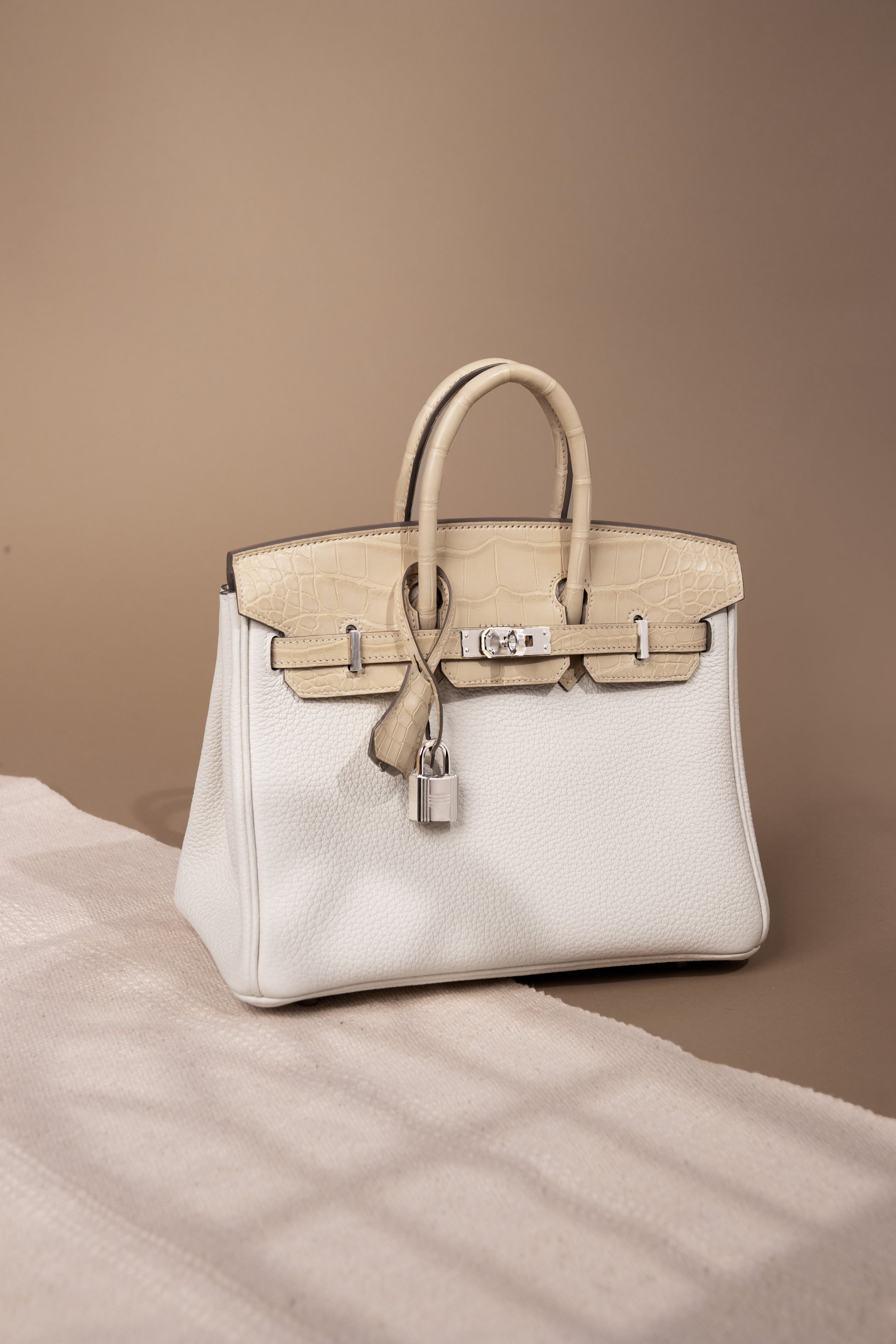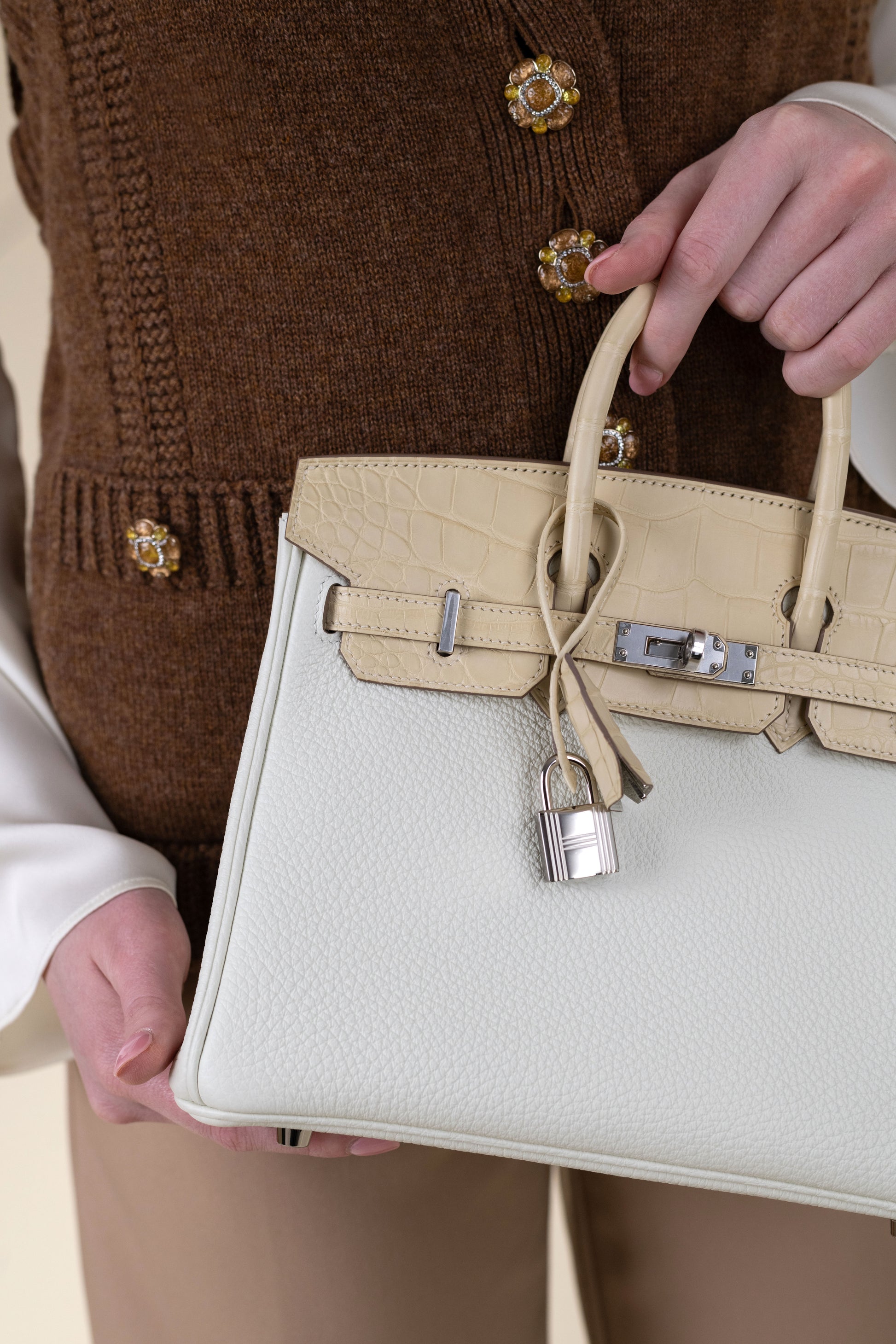 حقيبة هيرمس بيركين 25 توغو تاتش مات من جلد التمساح بلون الفطر والفانيليا