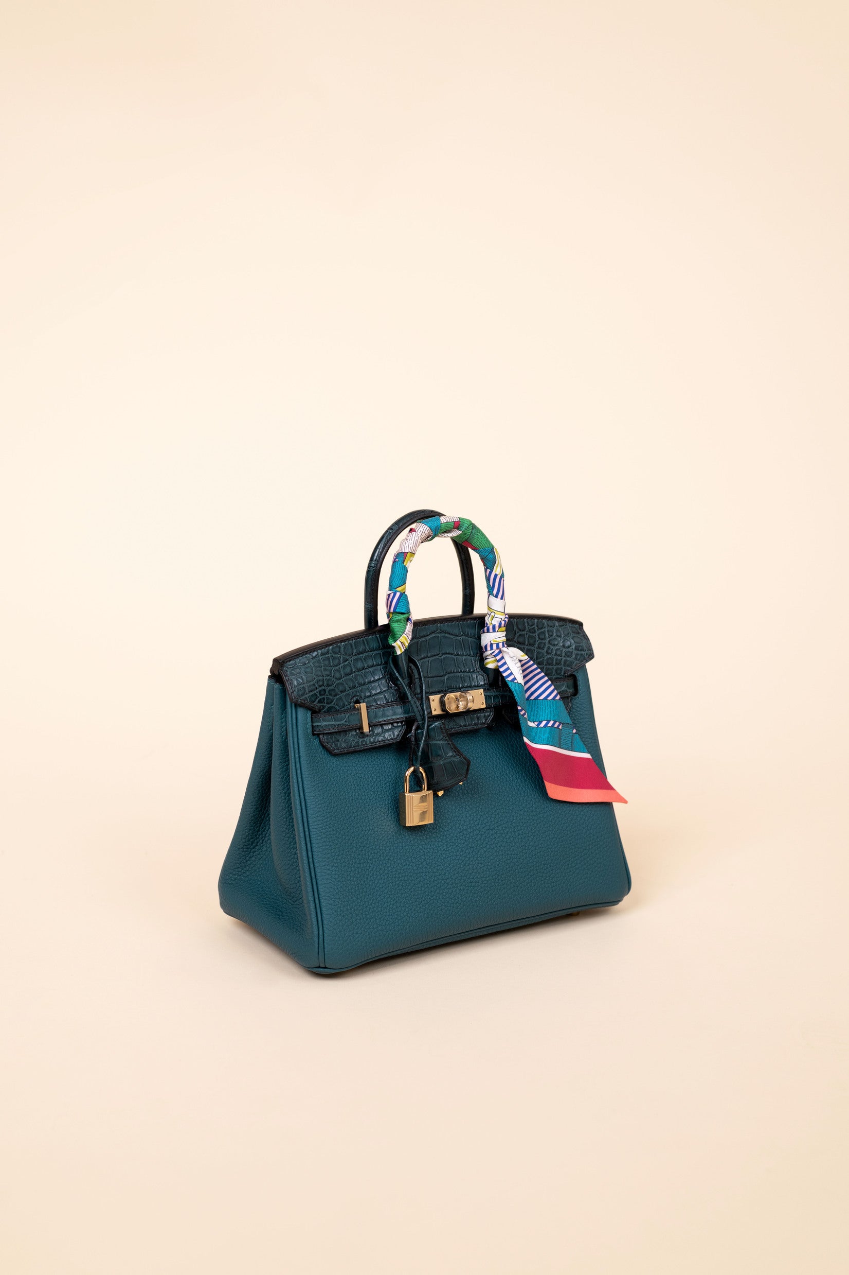 Hermès Birkin 25 Touch Matte Alligator في Vert Bosphore / Vert Rousseau PBHW