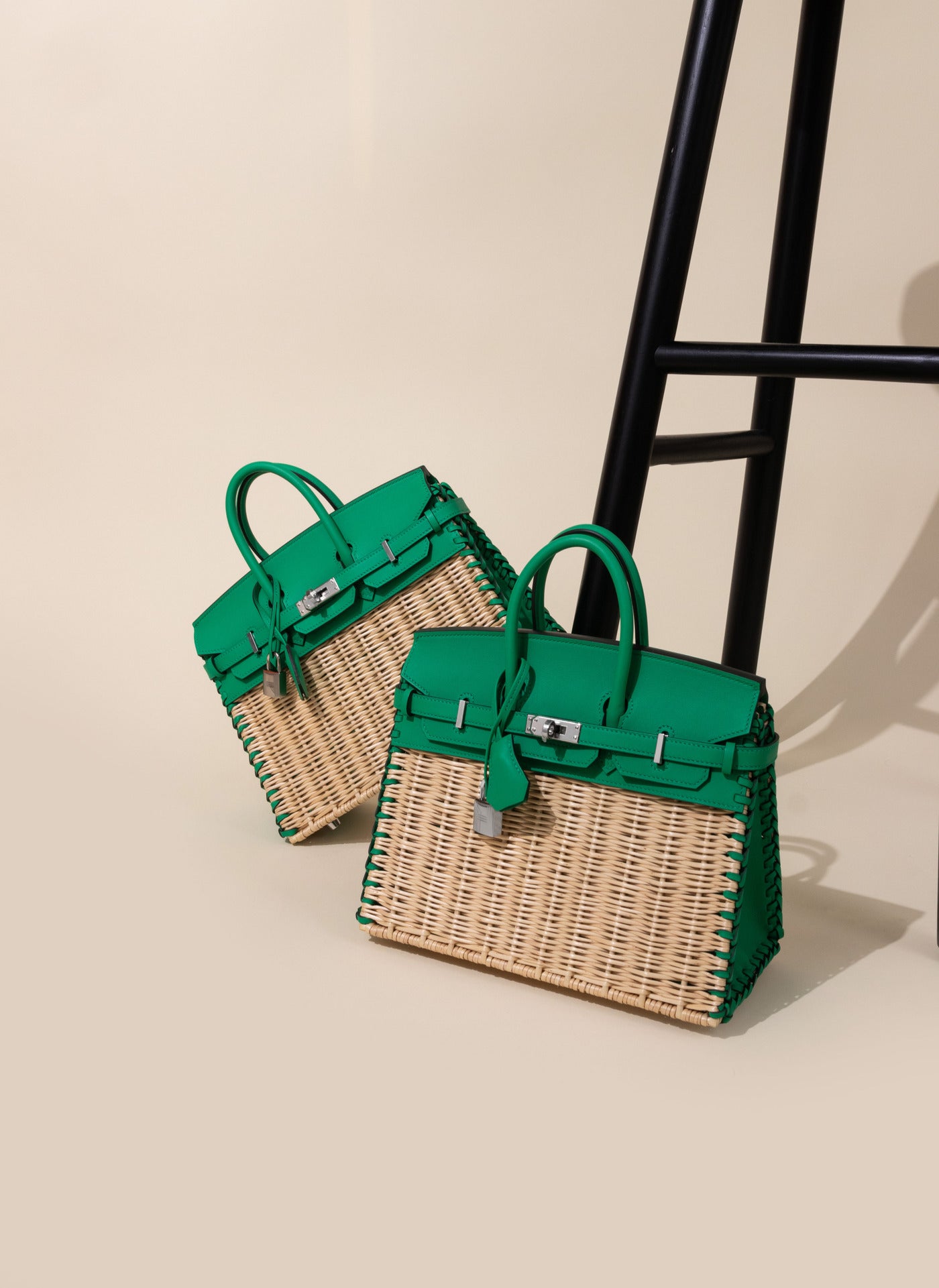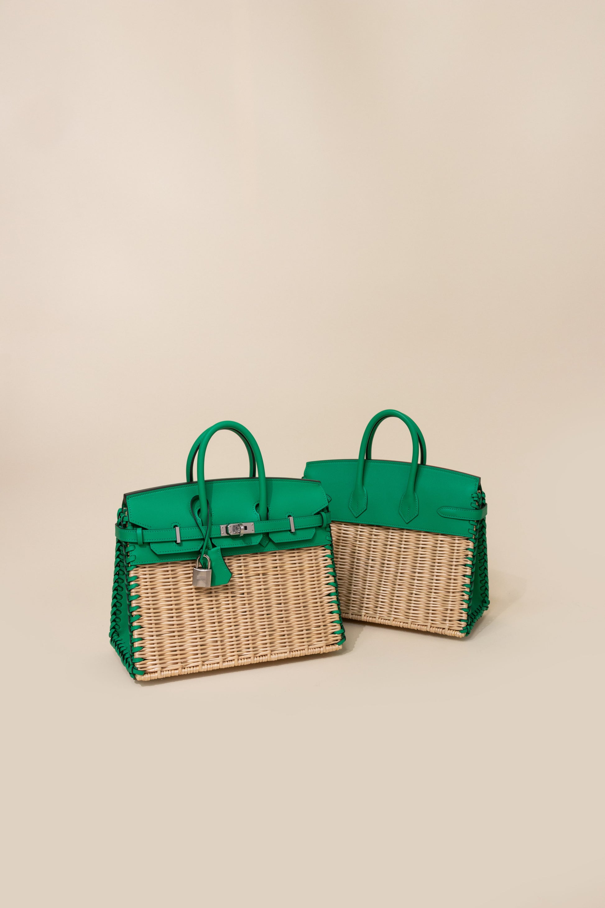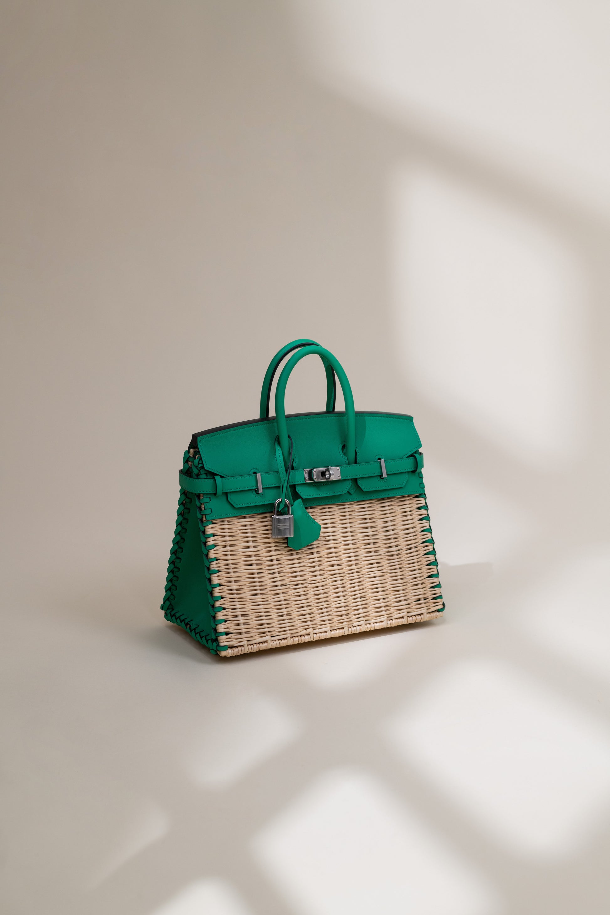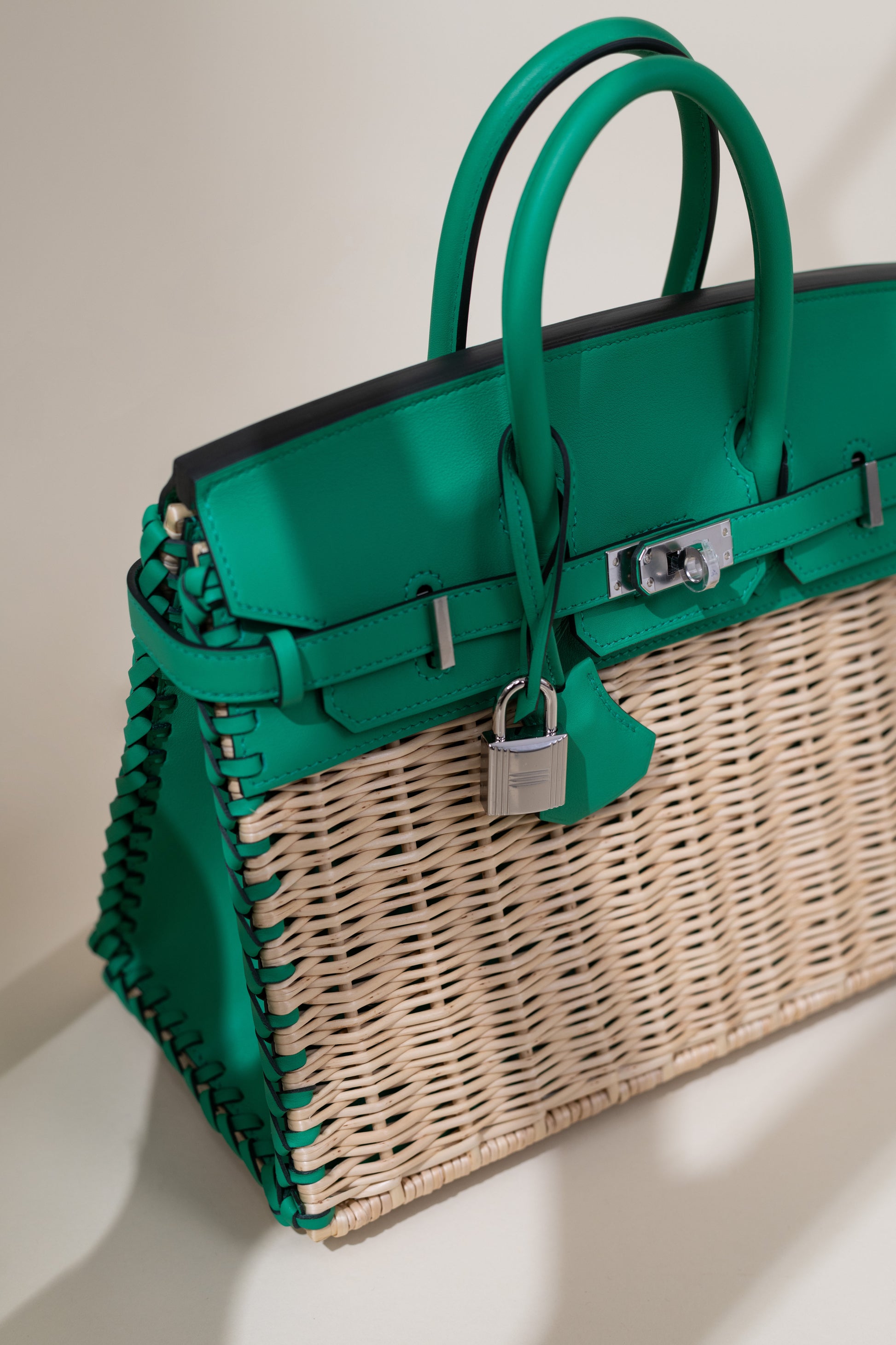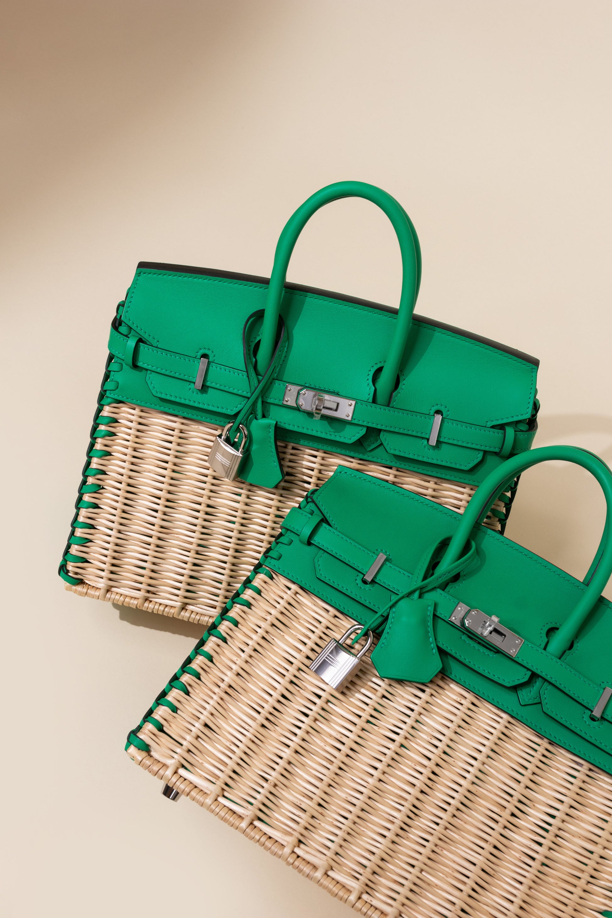 حقيبة هيرميس بيركين بيكين نزهة باللون الطبيعي/النعناع PHW