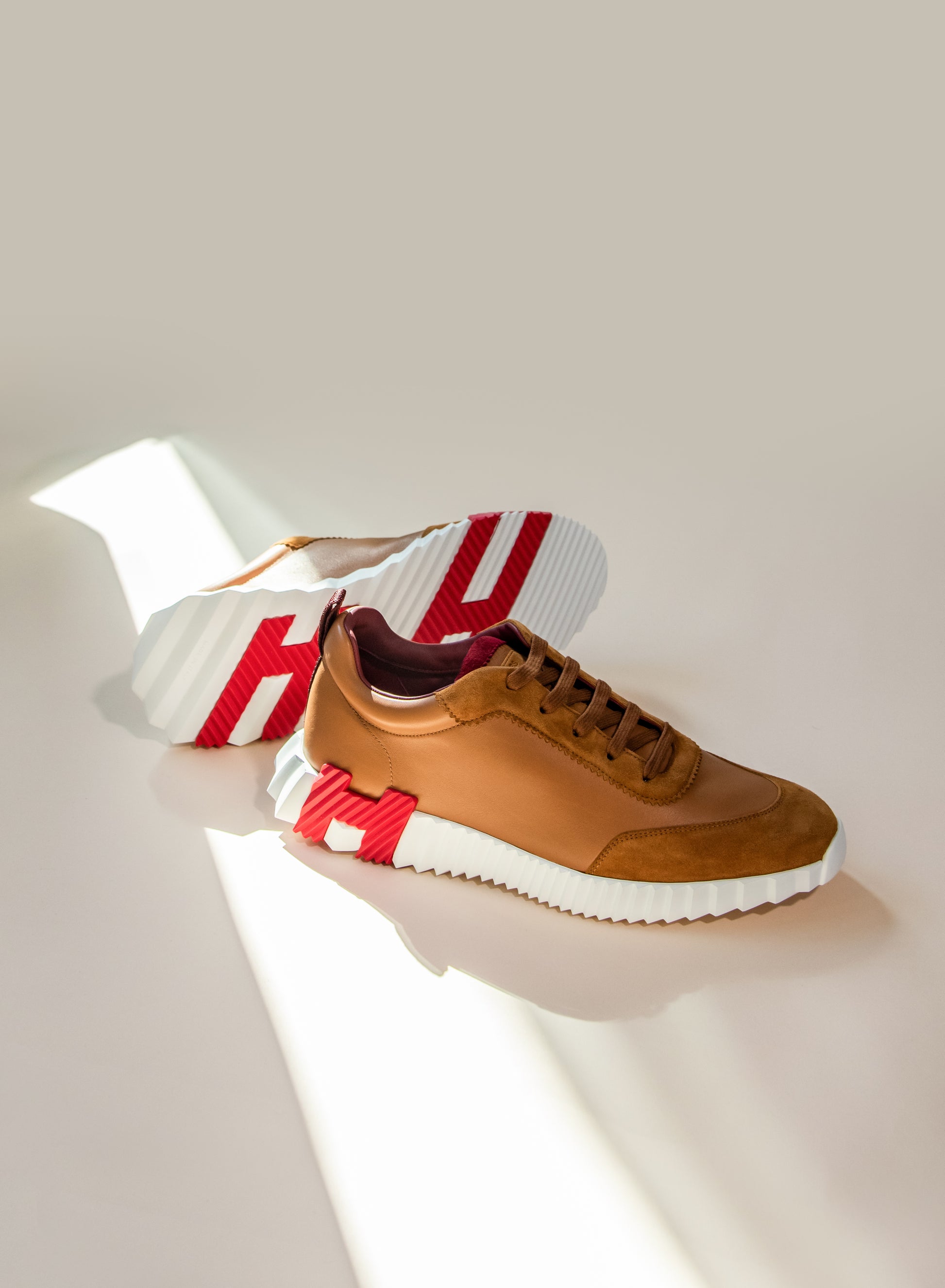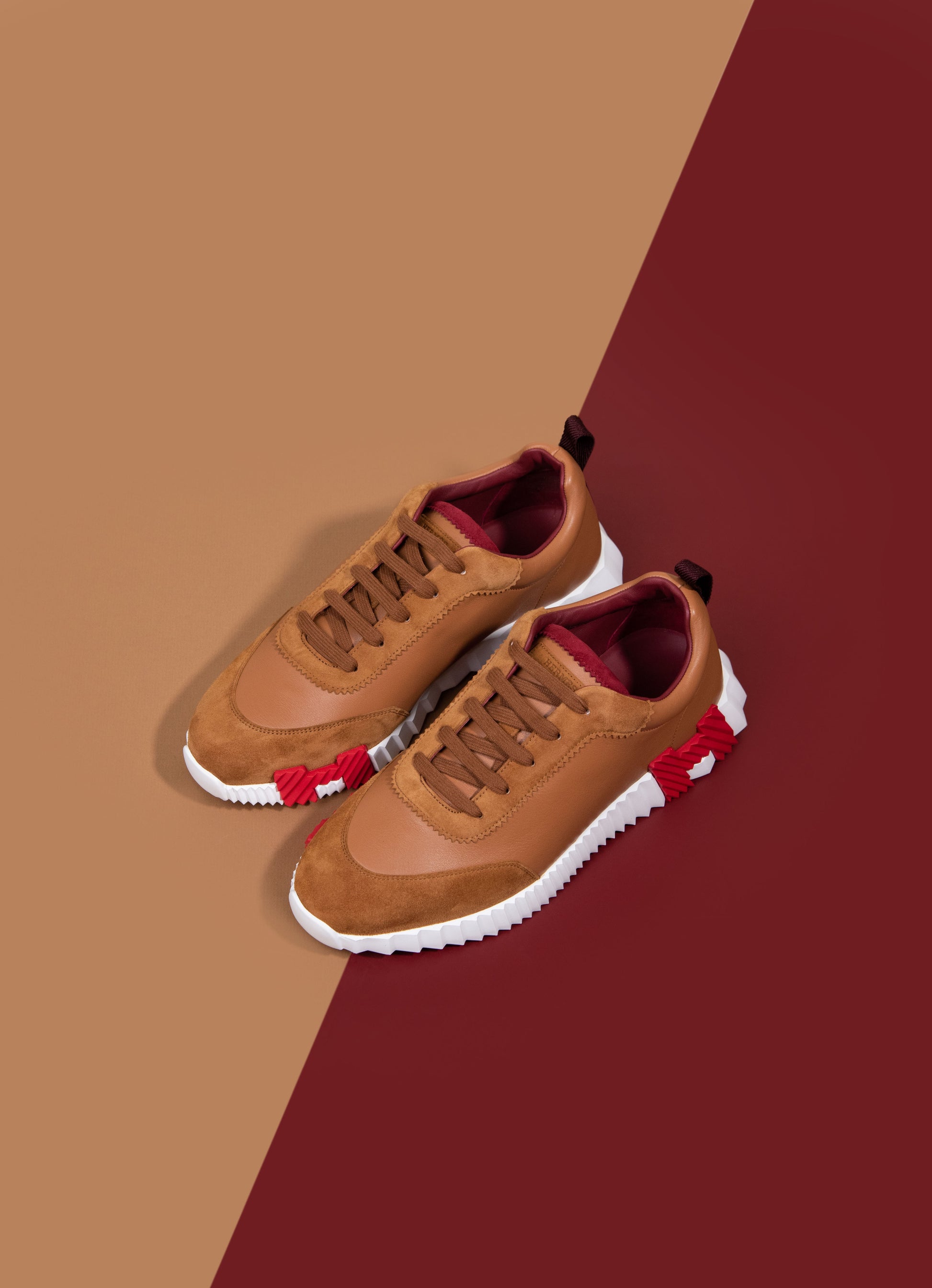 هيرميس - حذاء رياضي ناتشرال بشعار H باللون الأحمر