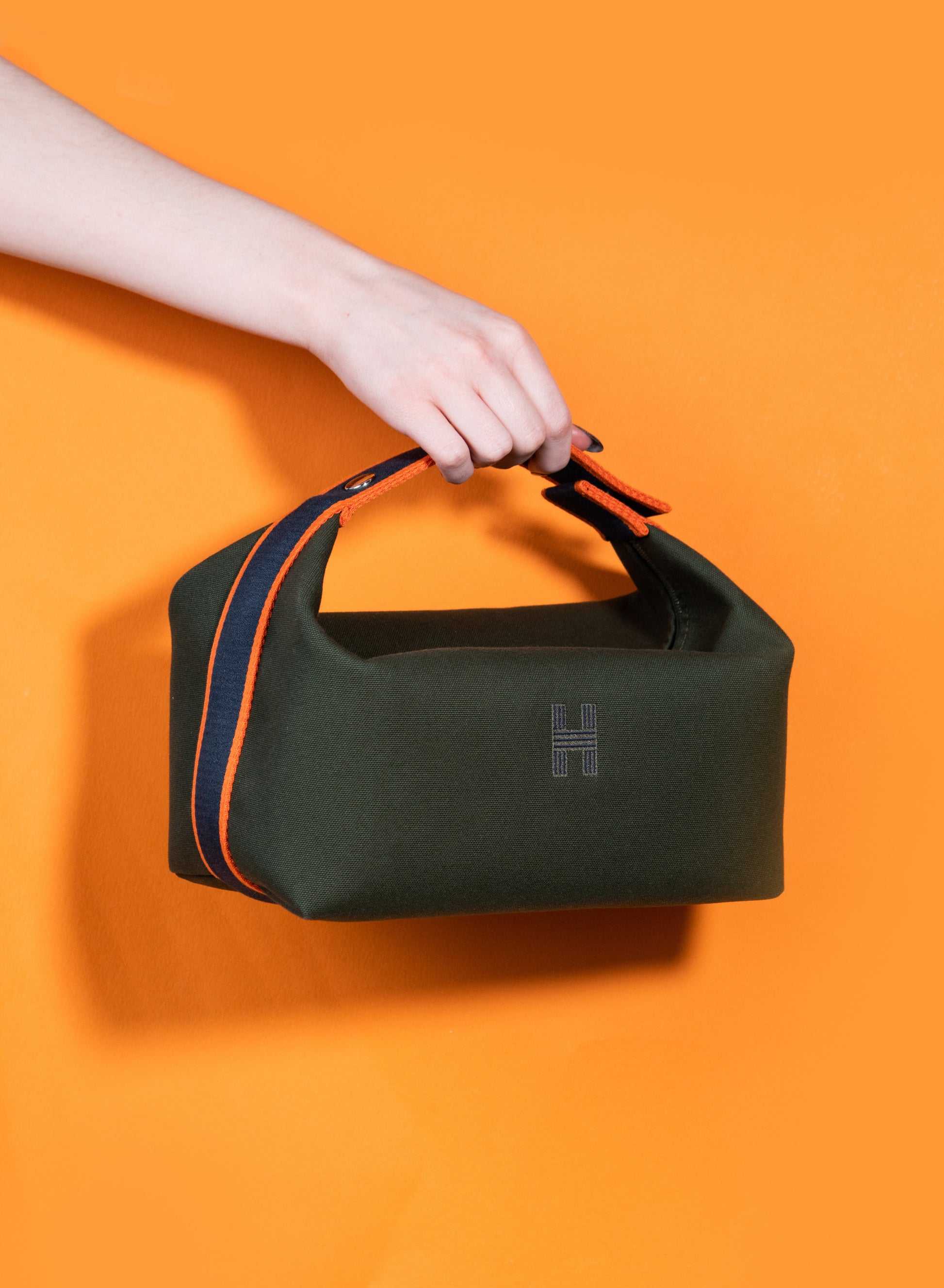 حقيبة هيرميس برايد-أ-براك باللون الأخضر الداكن/البرتقالي