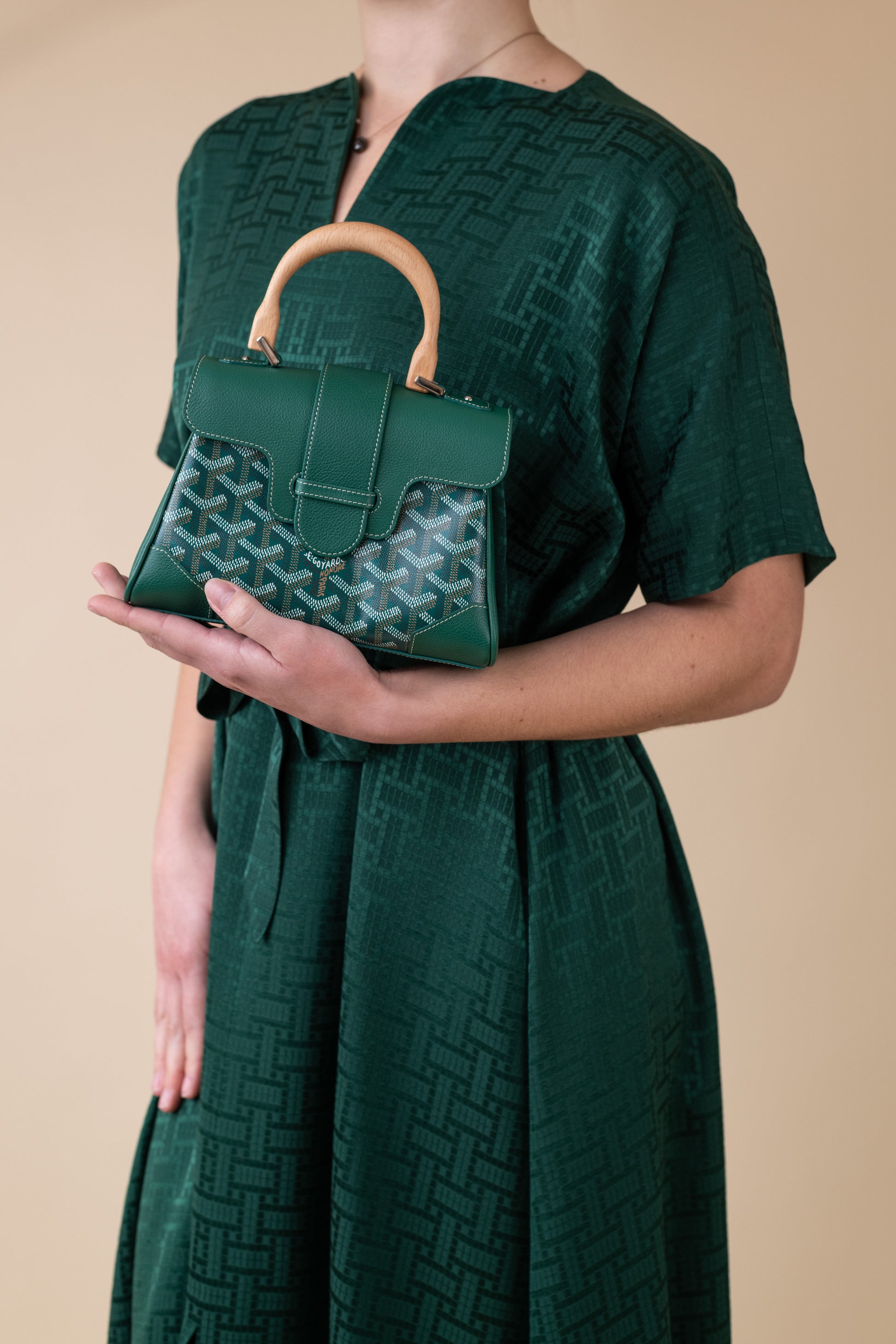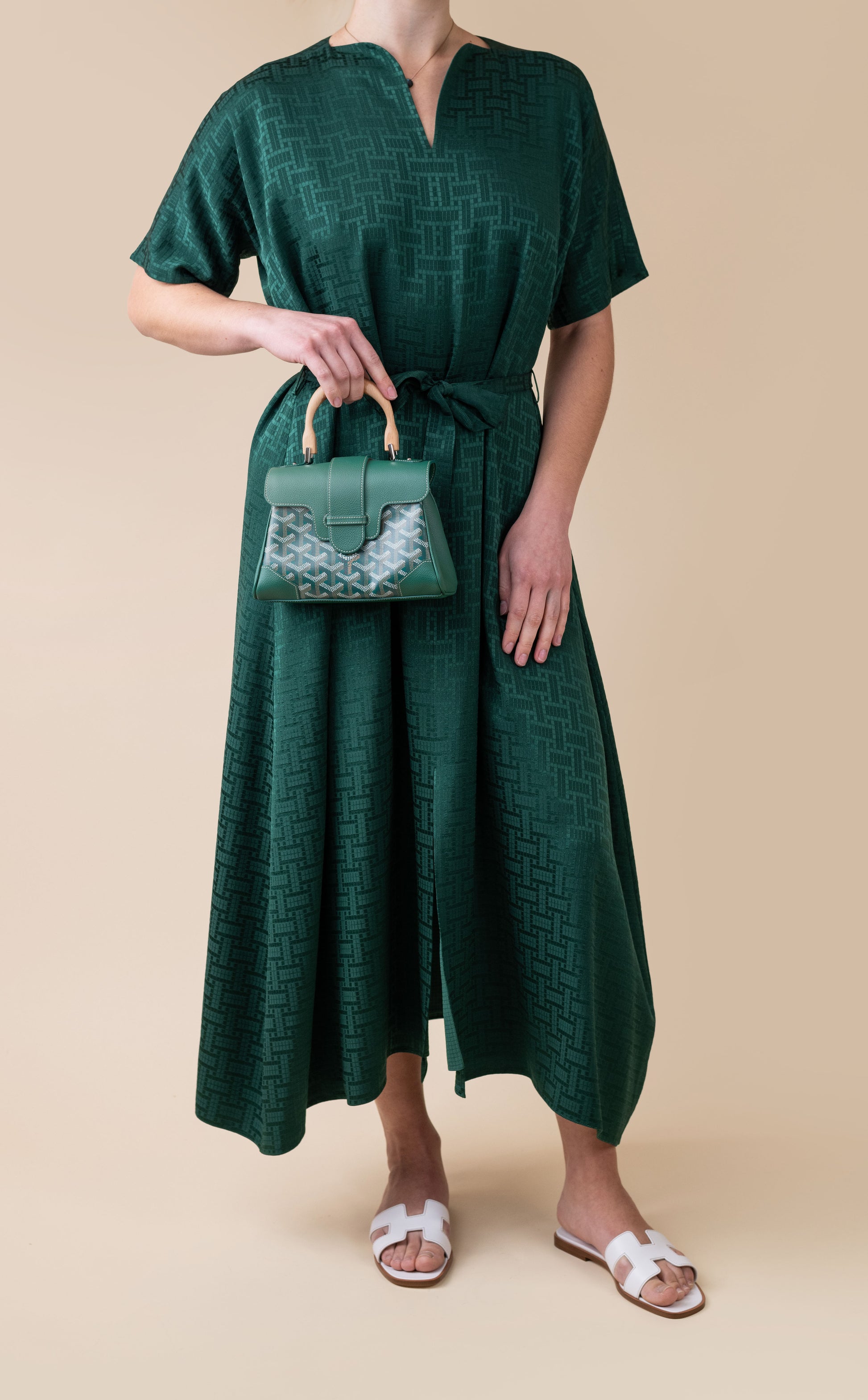 قفطان هيرميس في Vert Bouteille وحقيبة Goyard Green Saigon