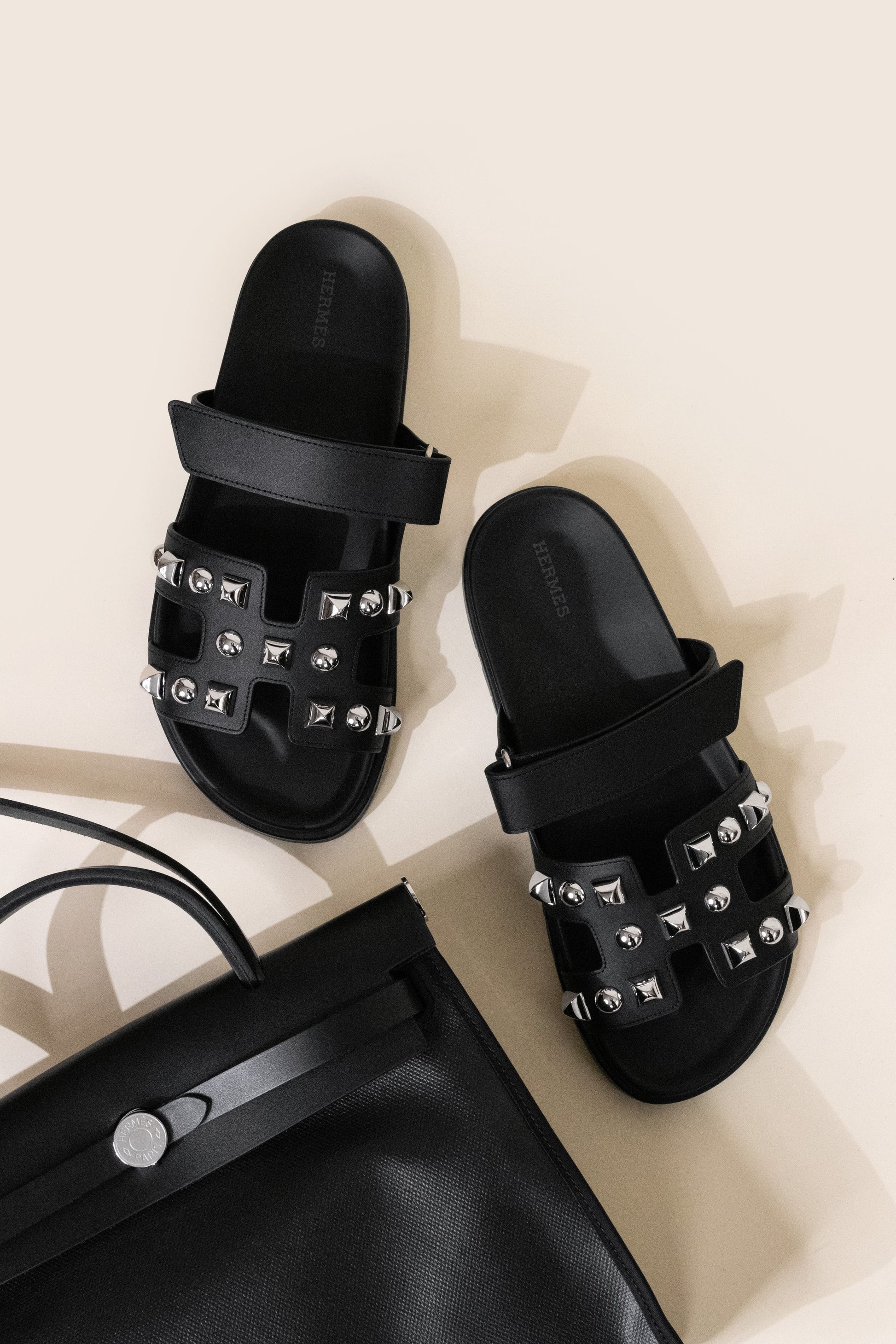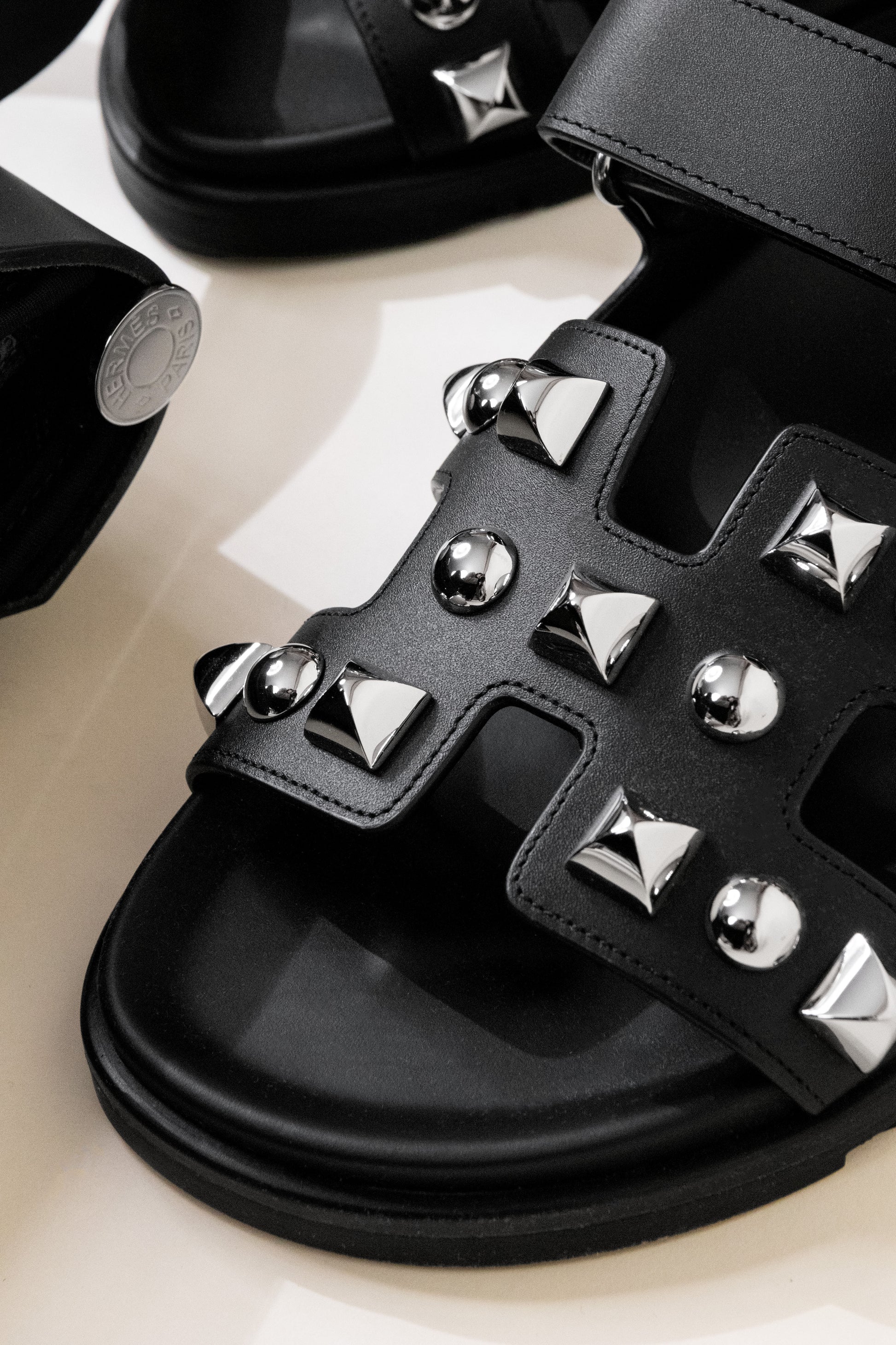 صندل هيرميس شيبر أسود مرصع بالمسامير