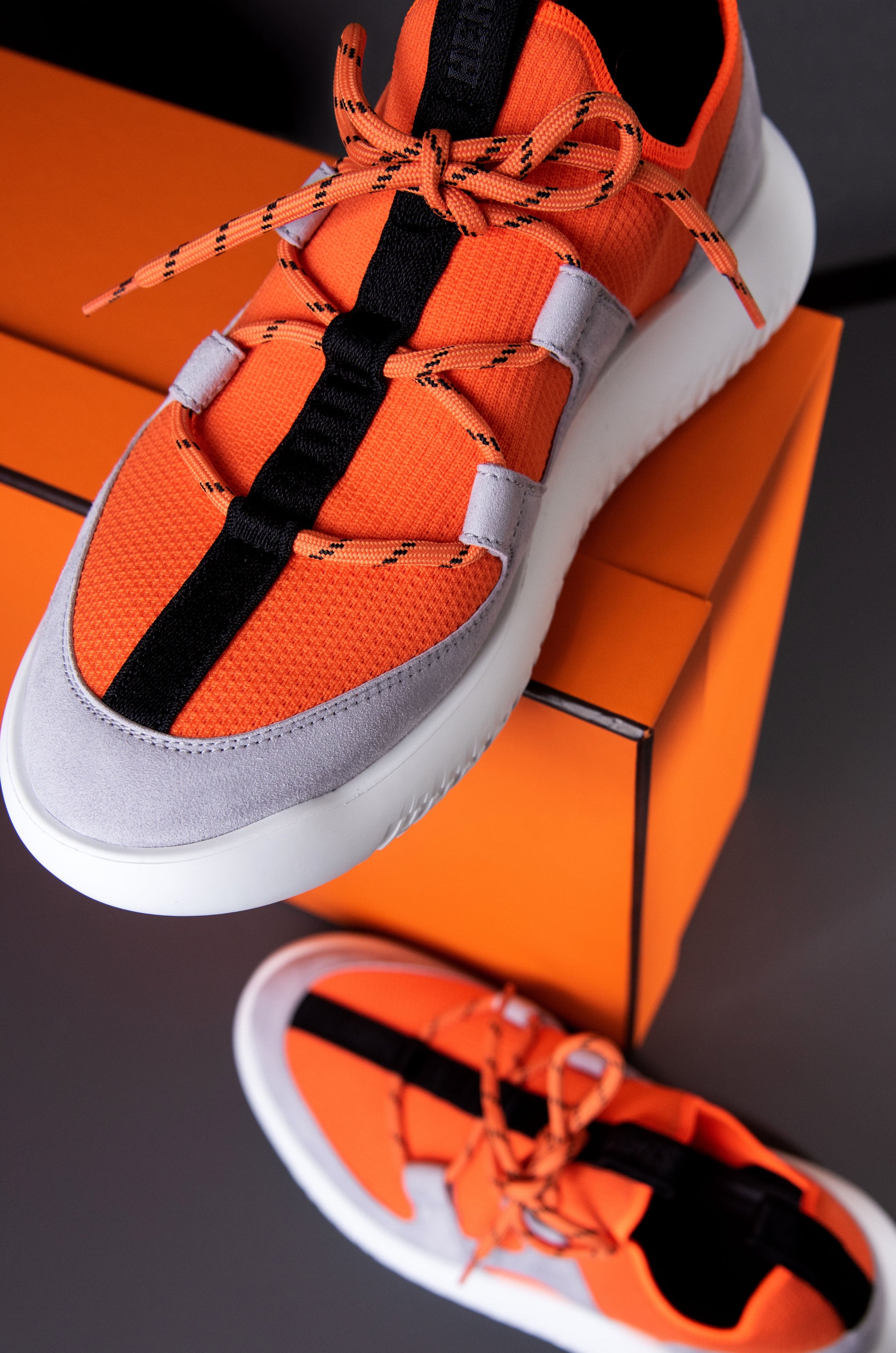 هيرميس - حذاء رياضي Duel Velvet Goatskin Knit باللون البرتقالي متعدد الألوان