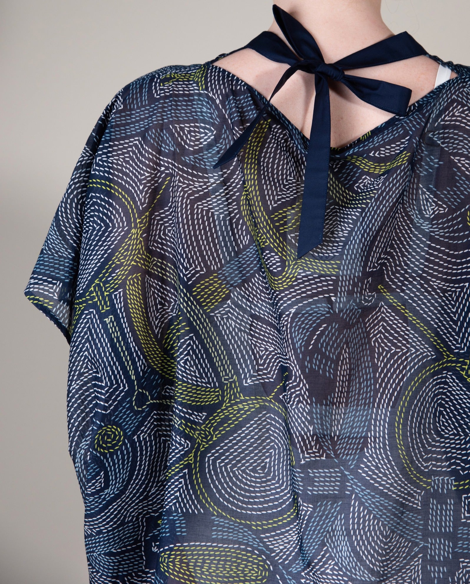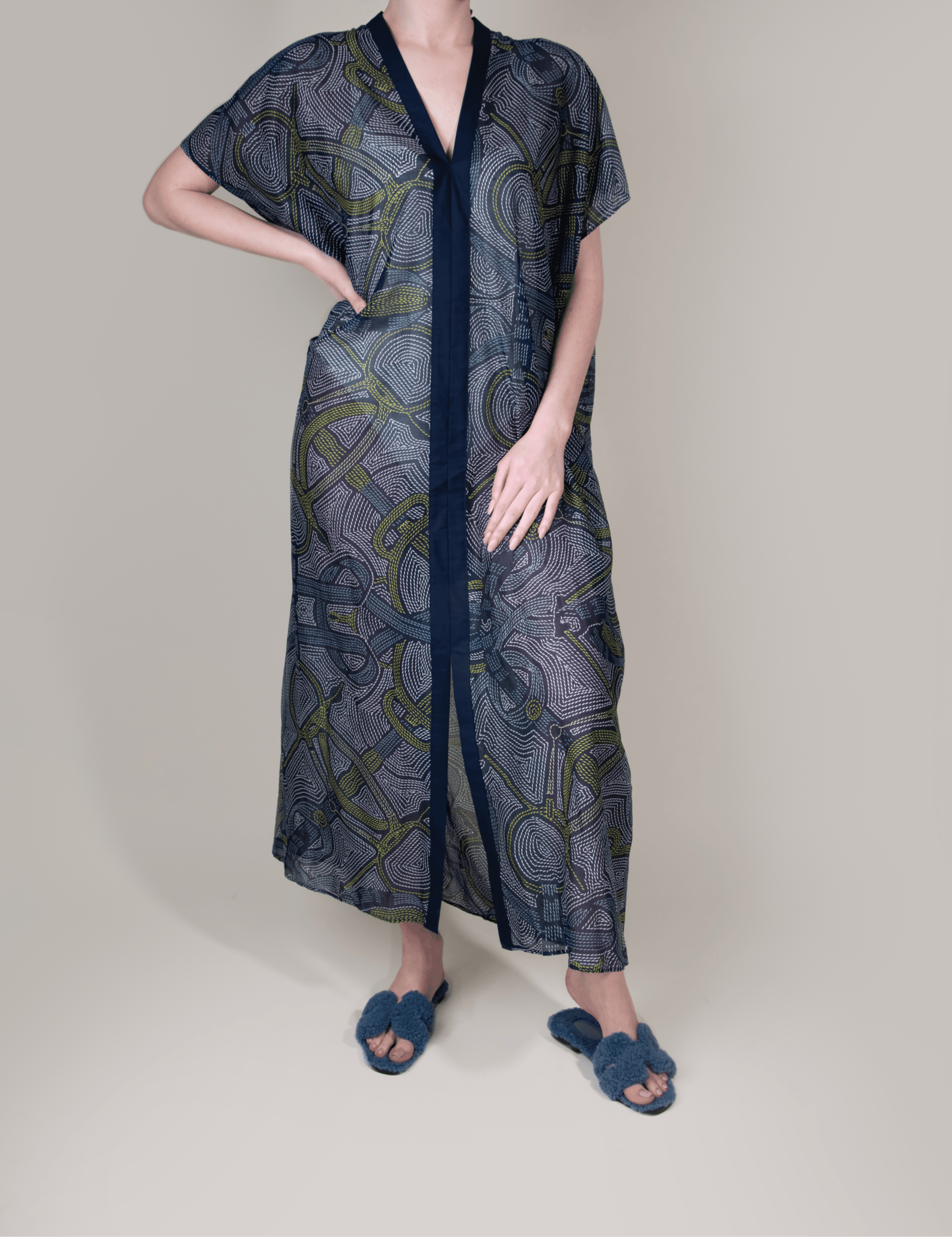 قفطان هيرميس "إبيرون دور" لونغ بيتش مع صوف أوران باللون الأزرق