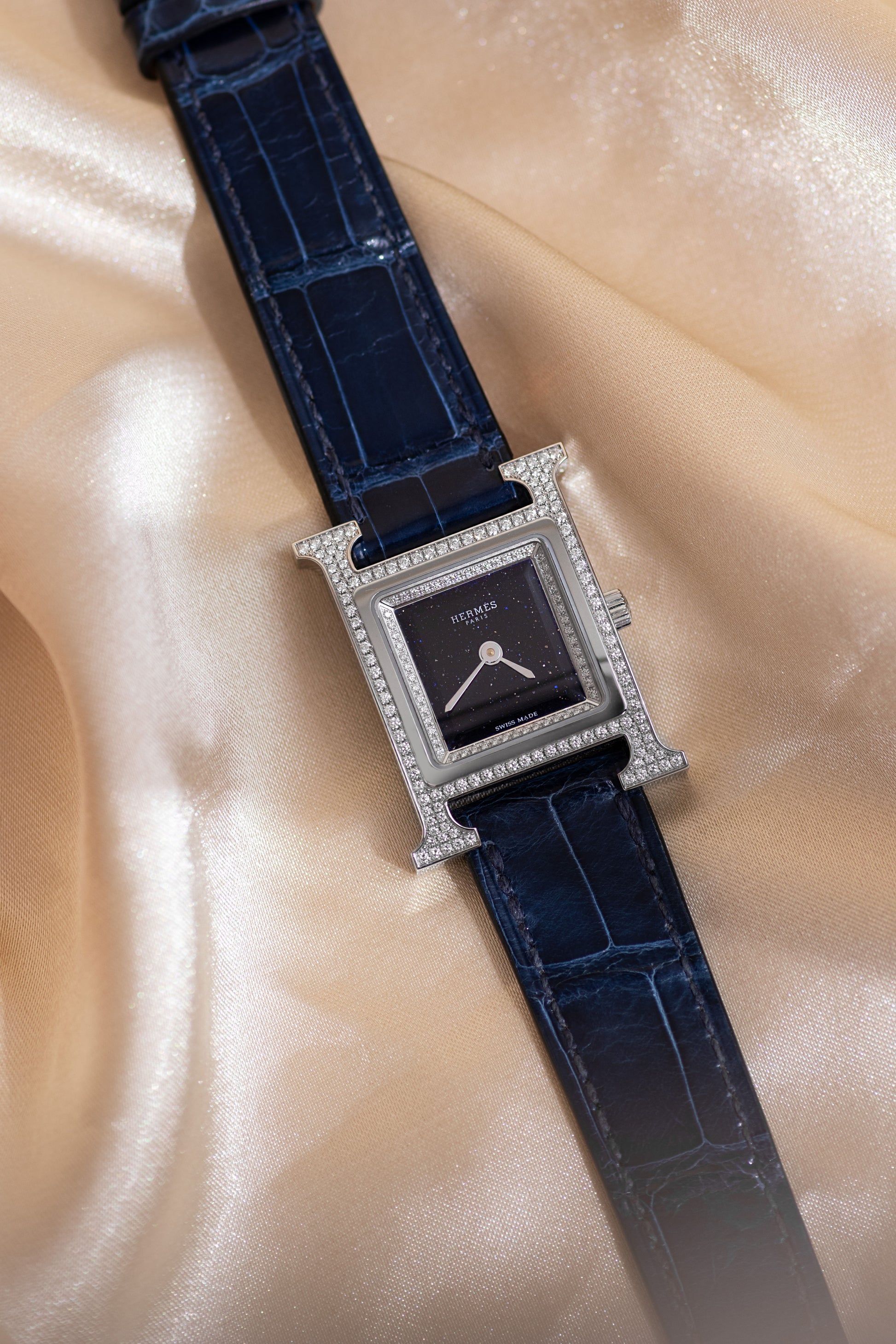 ساعة هيرميس H Heure مقاس 25 ملم من الياقوت الأزرق