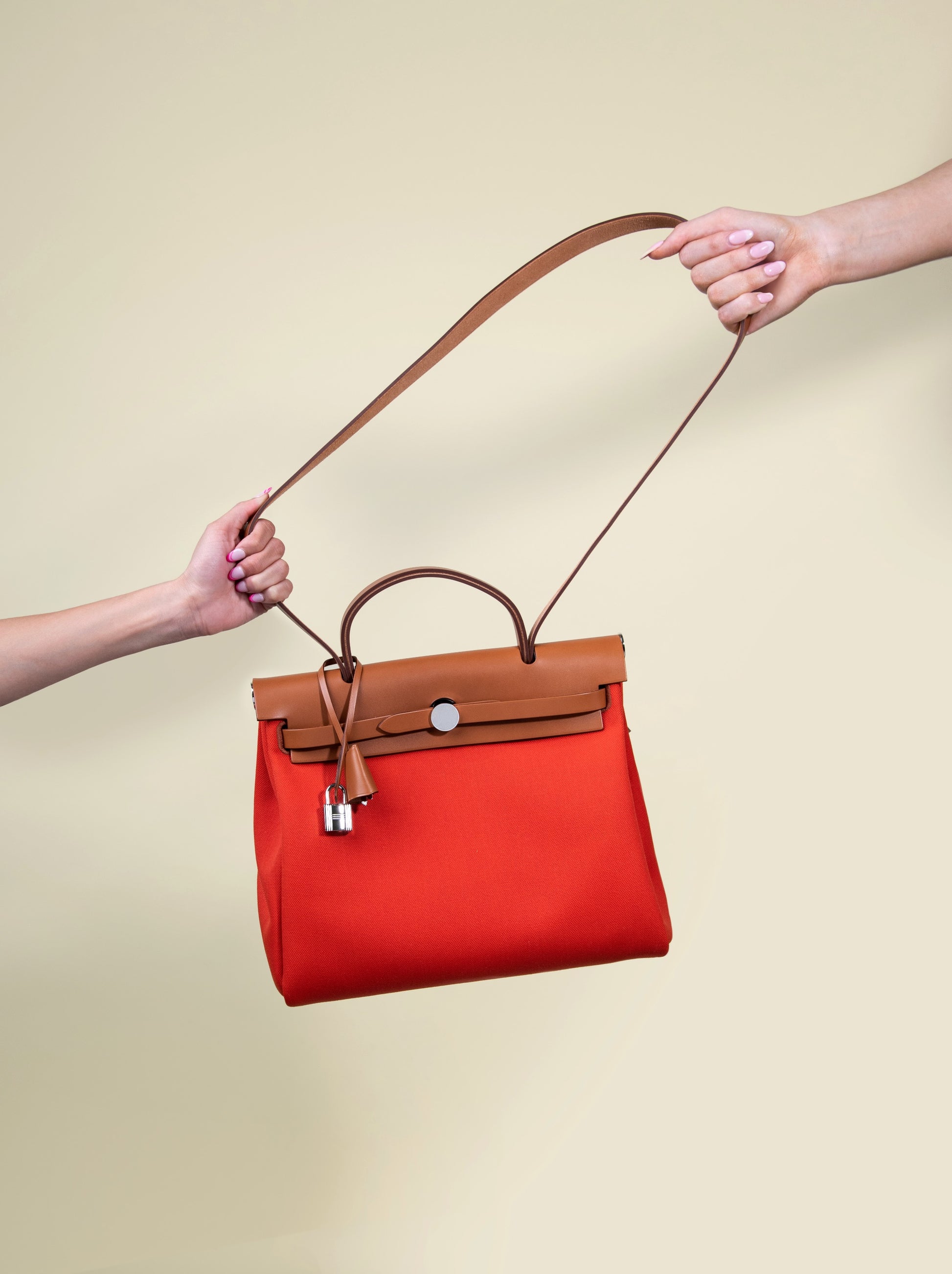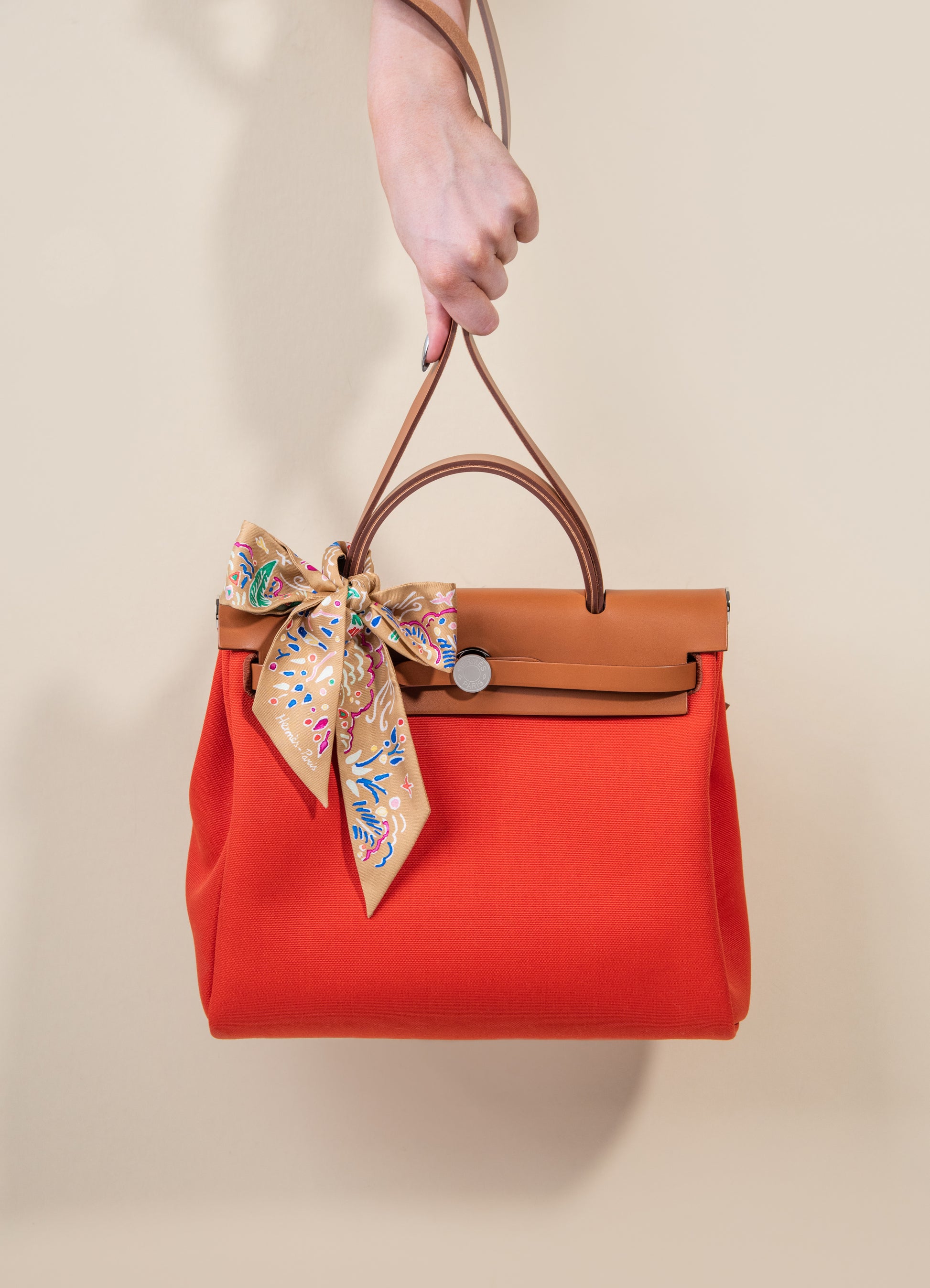 حقيبة هيرميس هيرباغ 31 باللون البرتقالي ميكانو / فوف مع تويلي