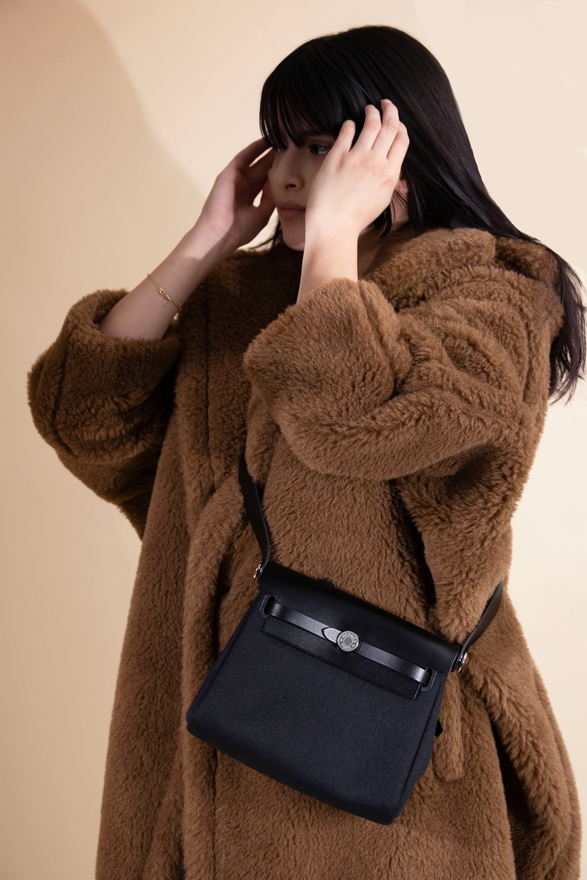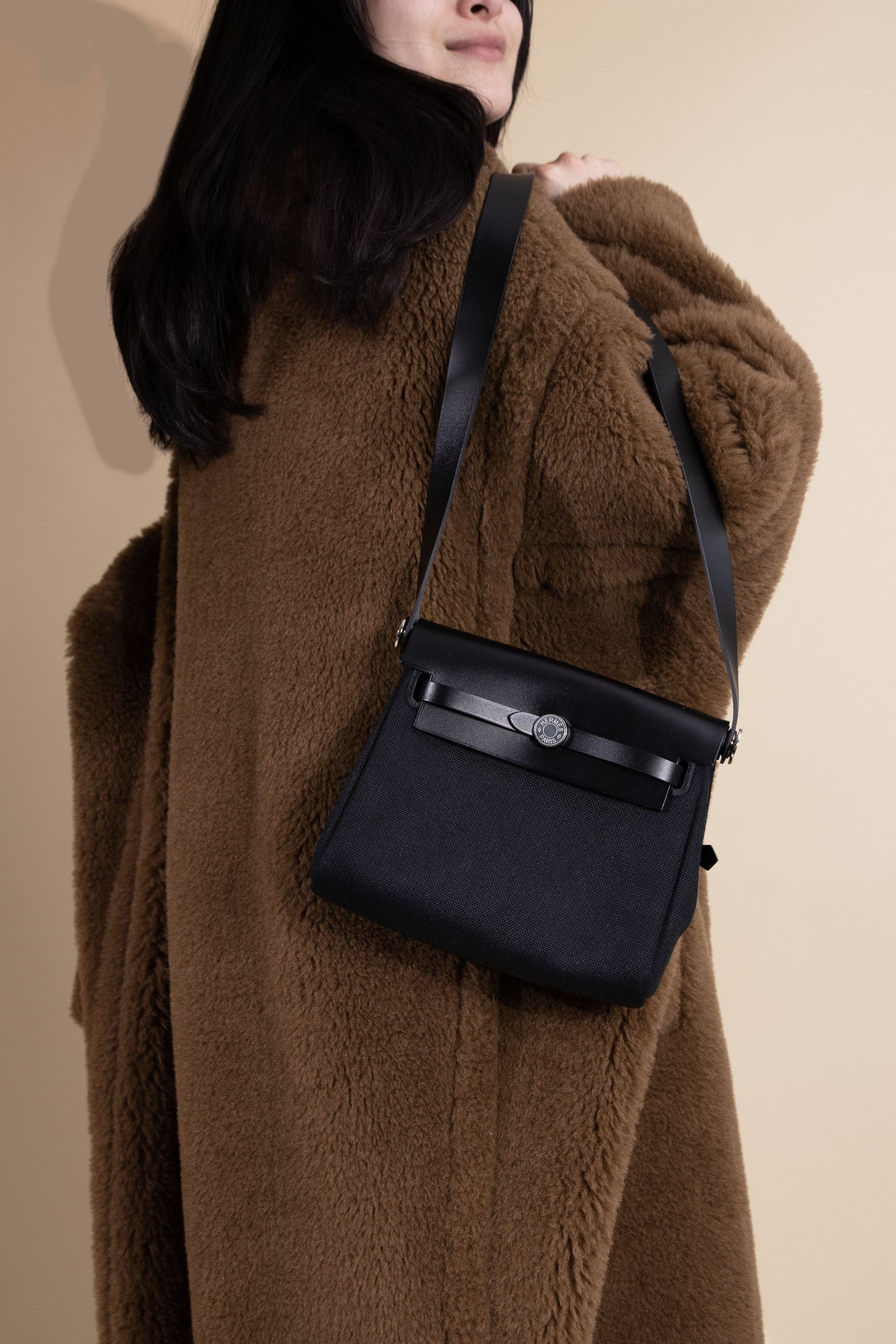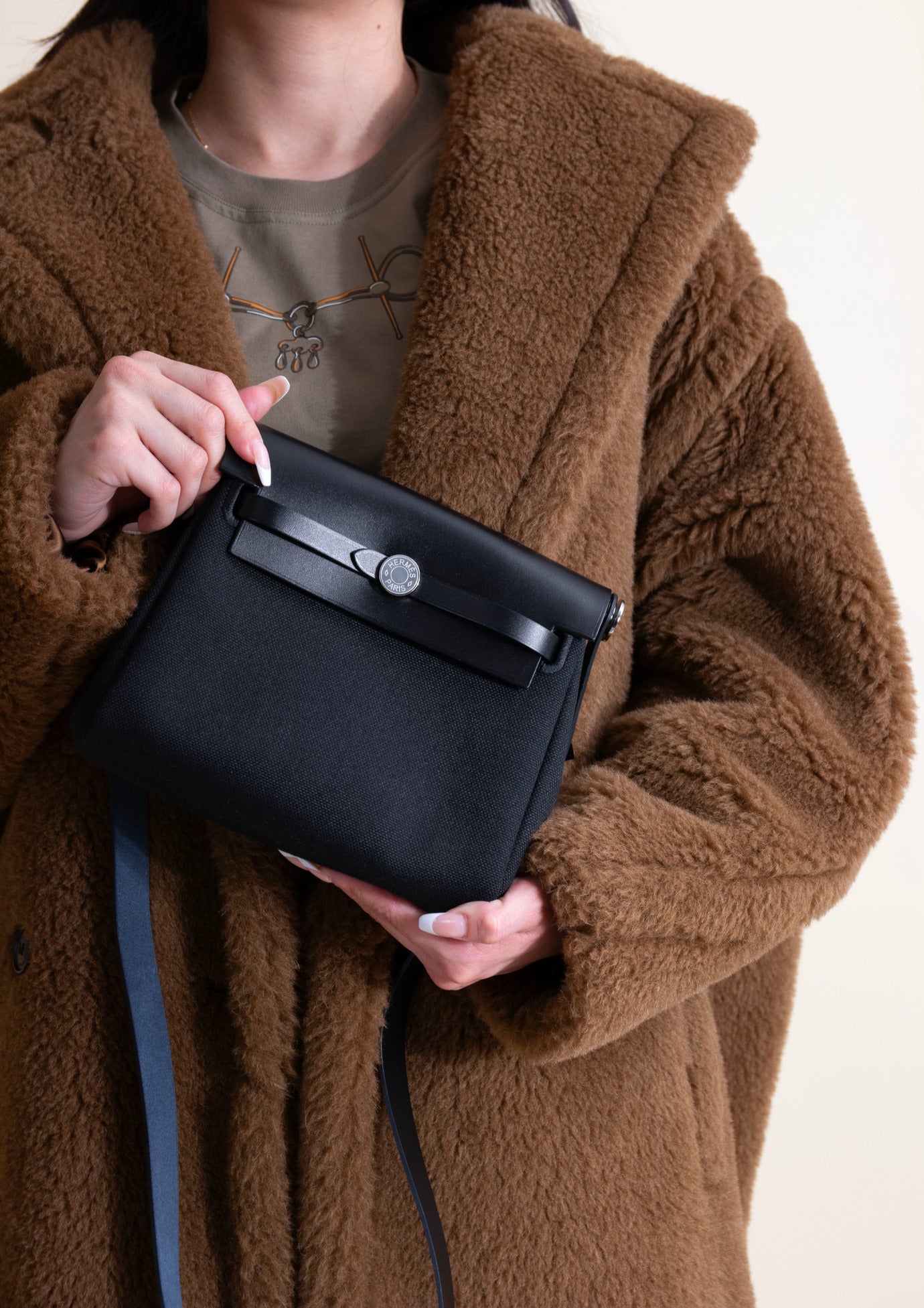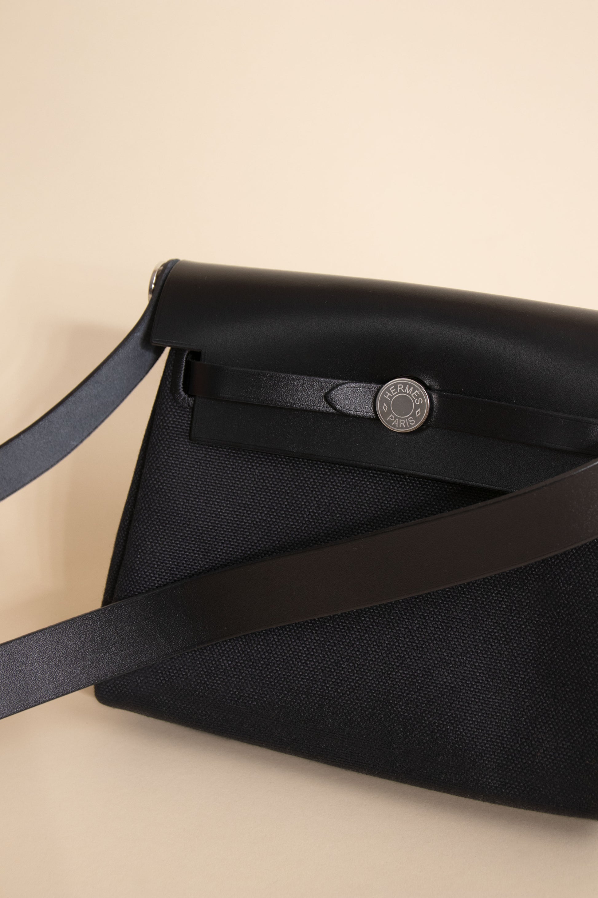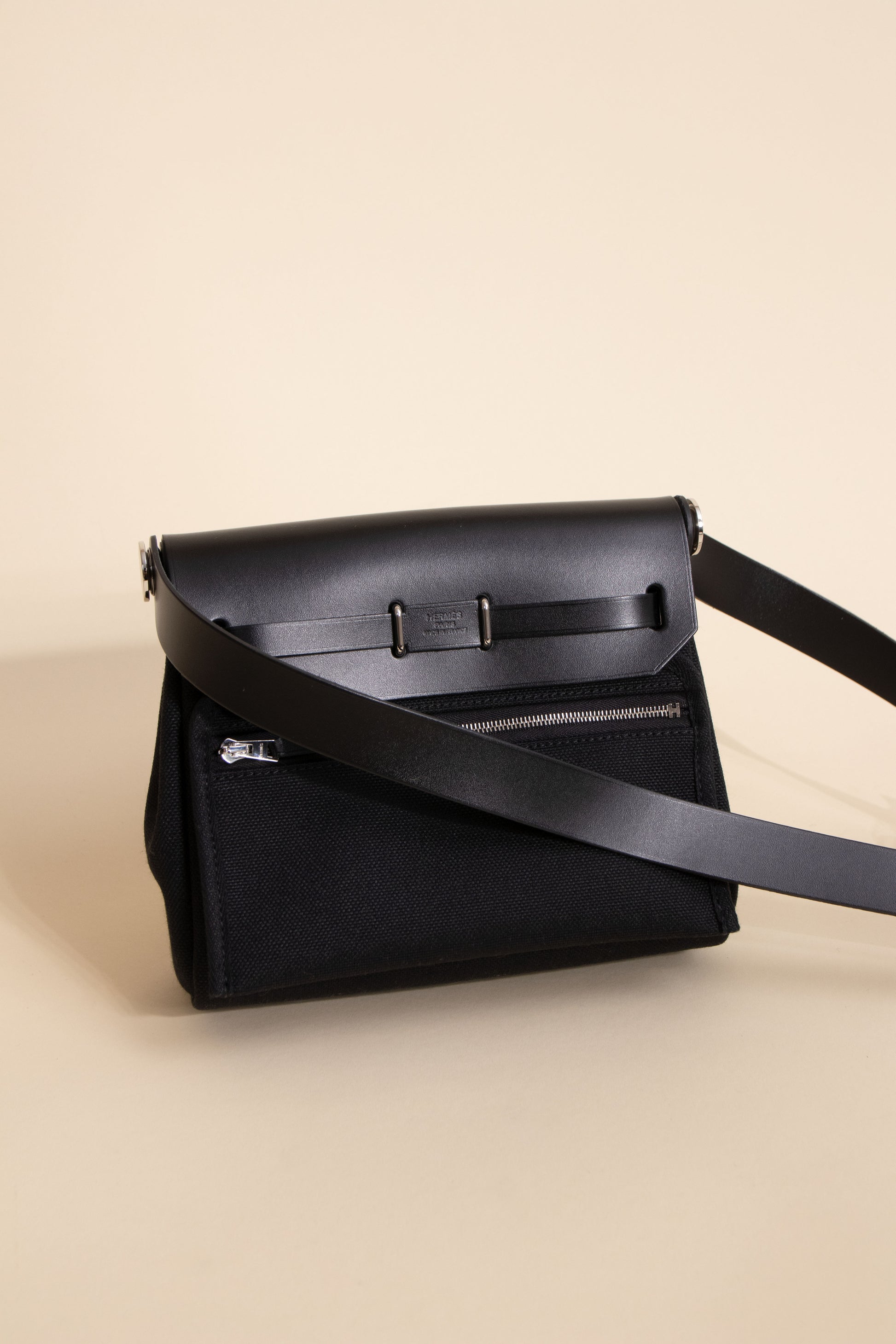 حقيبة هيرمس هيرباج زيب 20 العسكرية المصنوعة من القماش/جلد البقر باللون الأسود/الأسود