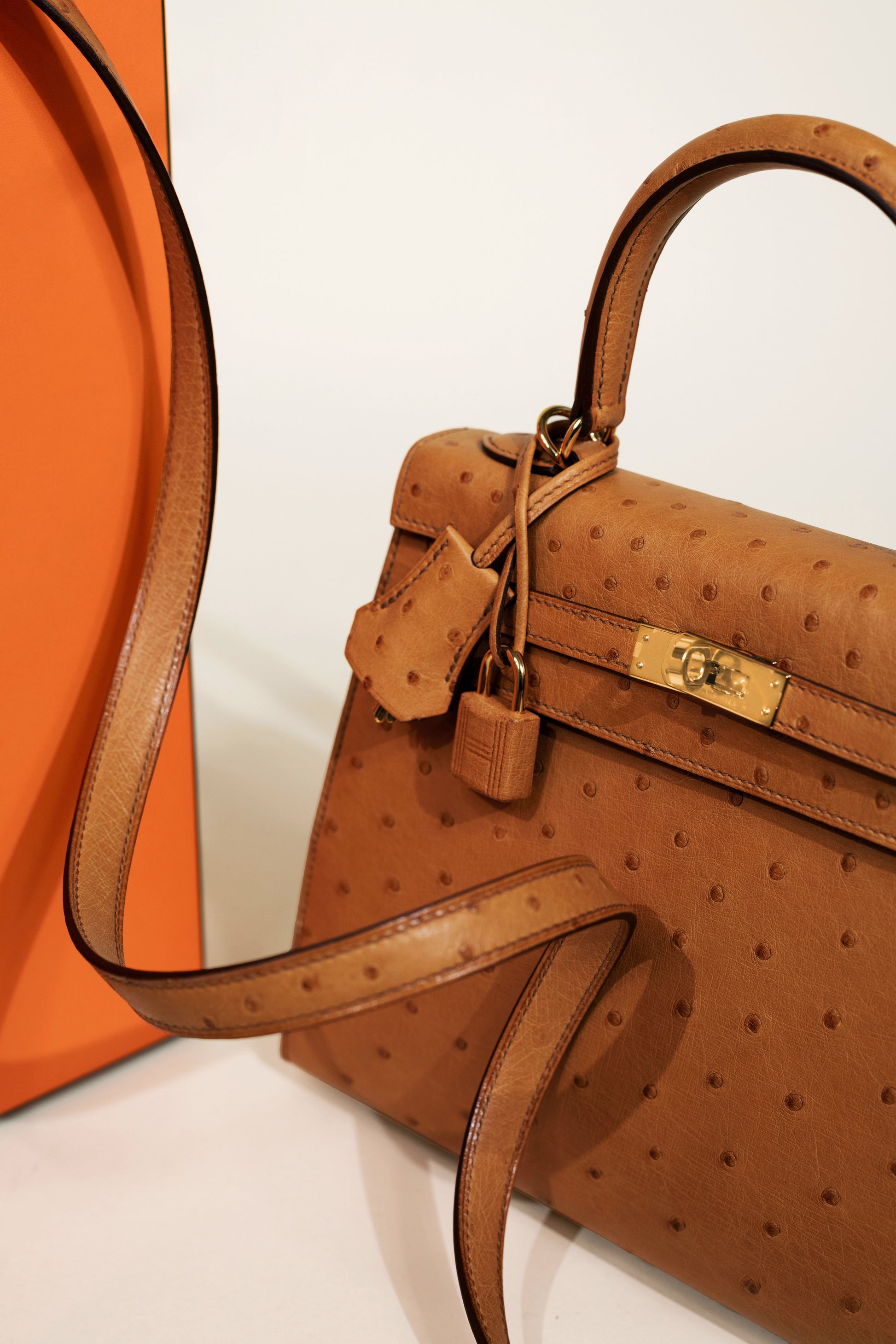 هيرميس - ساعة HSS Kelly 25 Ostrich باللون الكونياك مع GHW