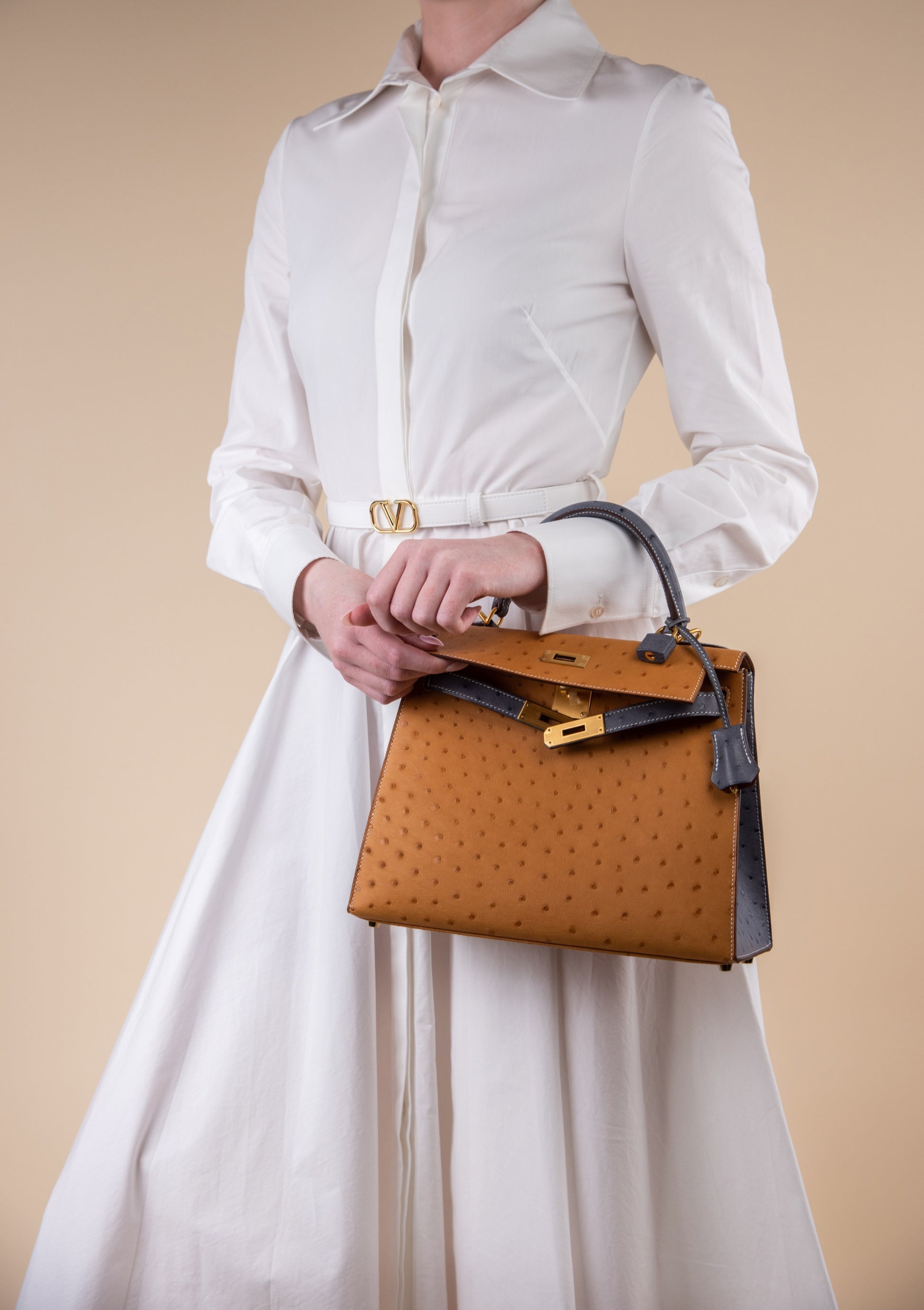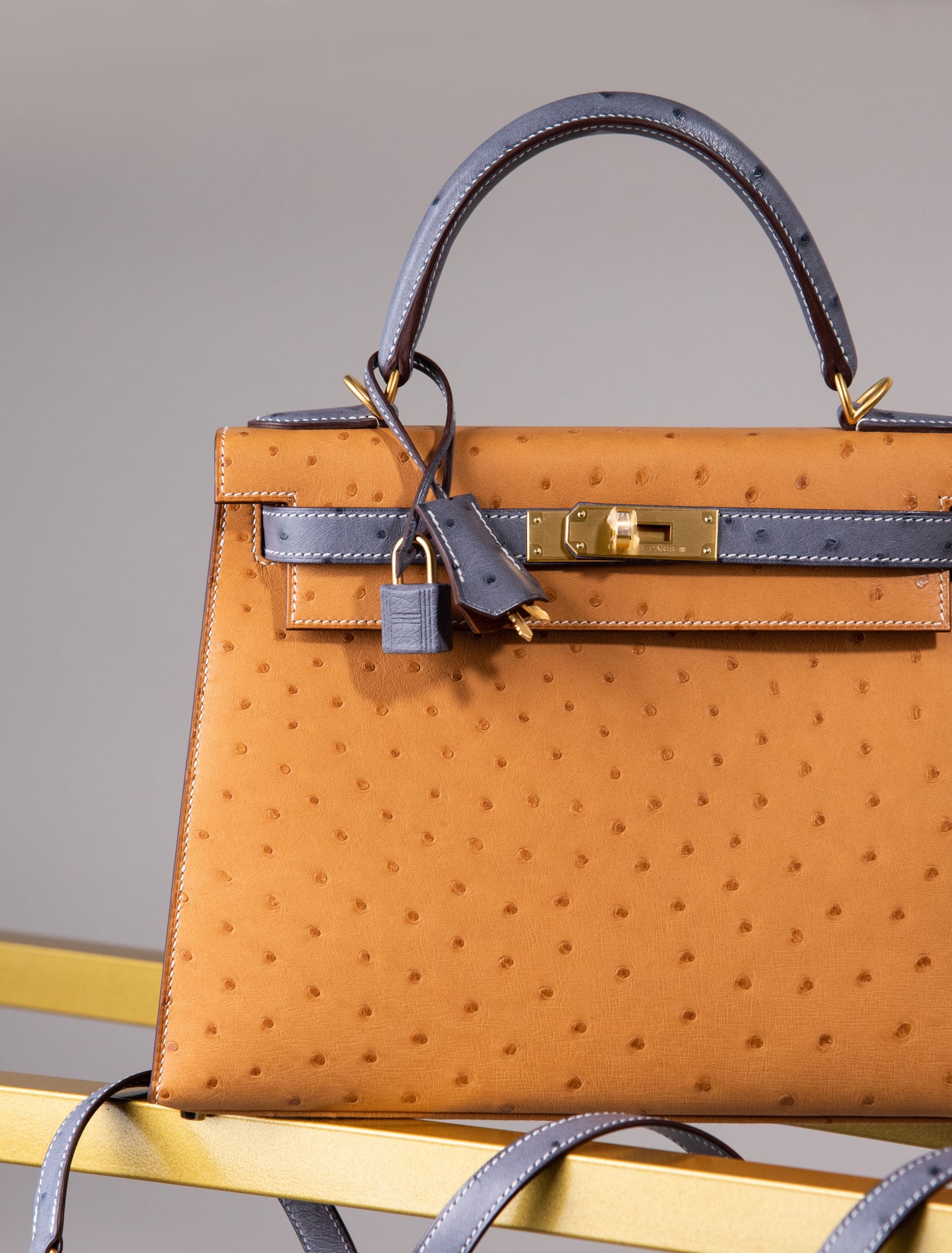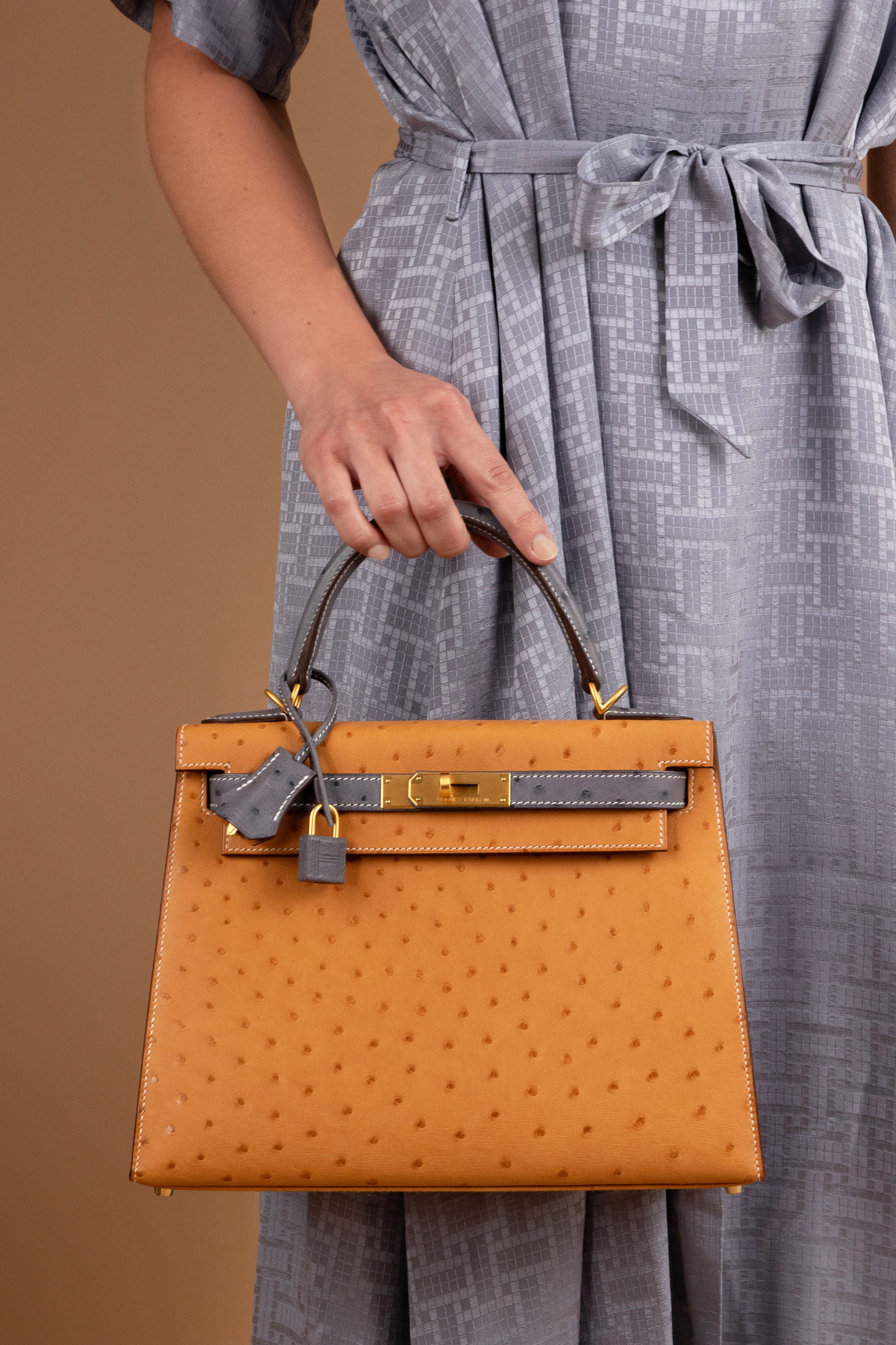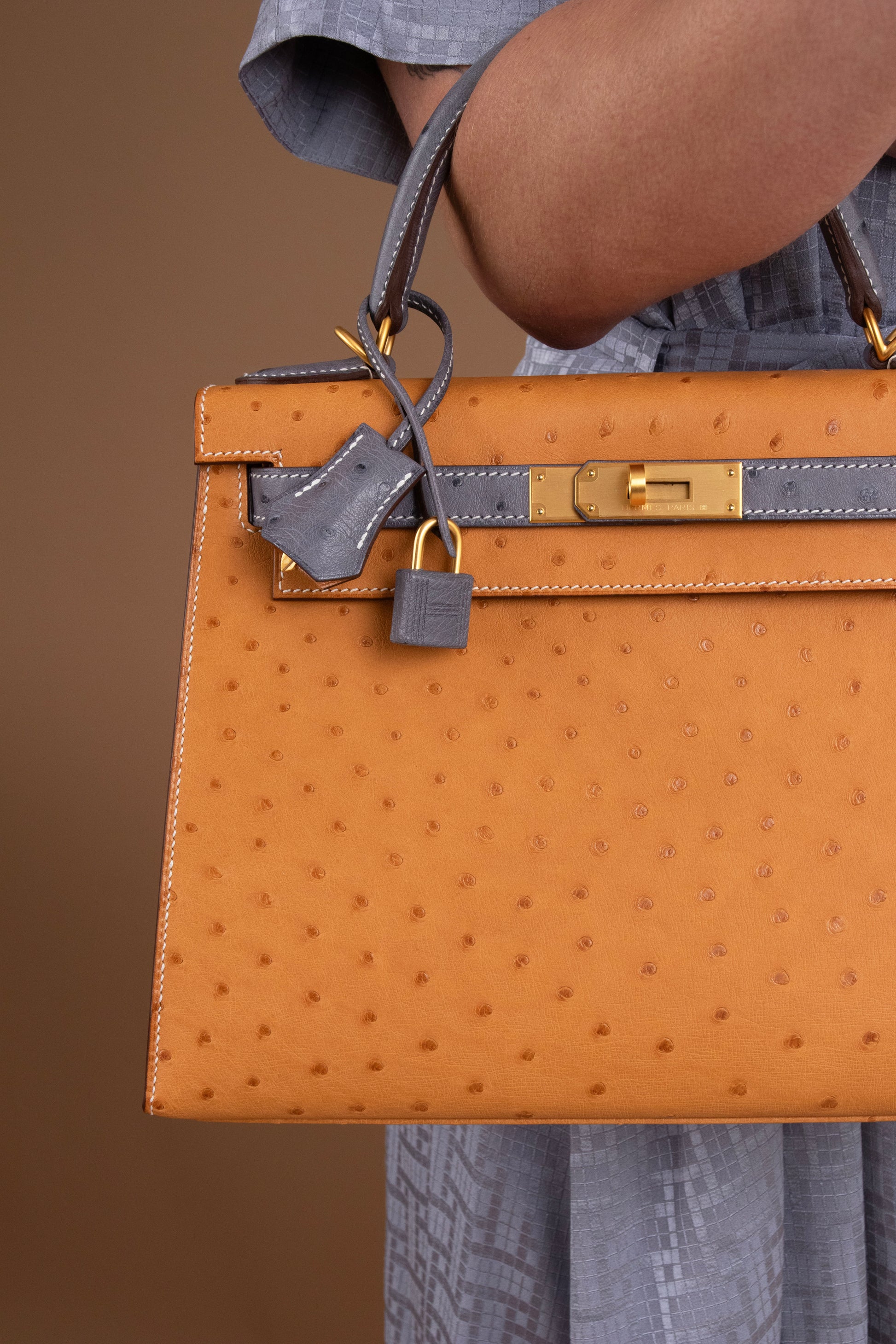 Hermès HSS Kelly 28 Ostrich in Saffron/Gris Agate GHW