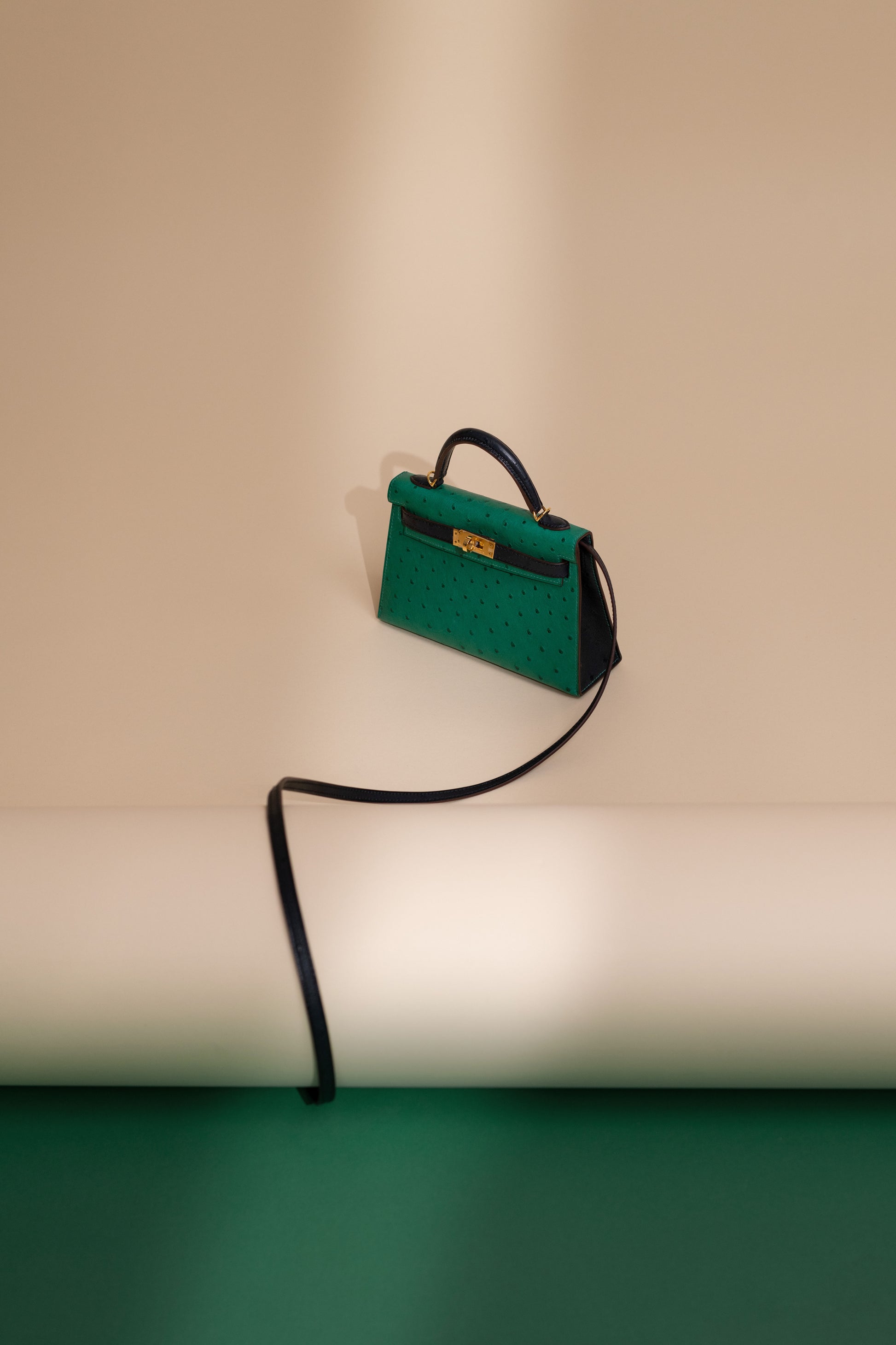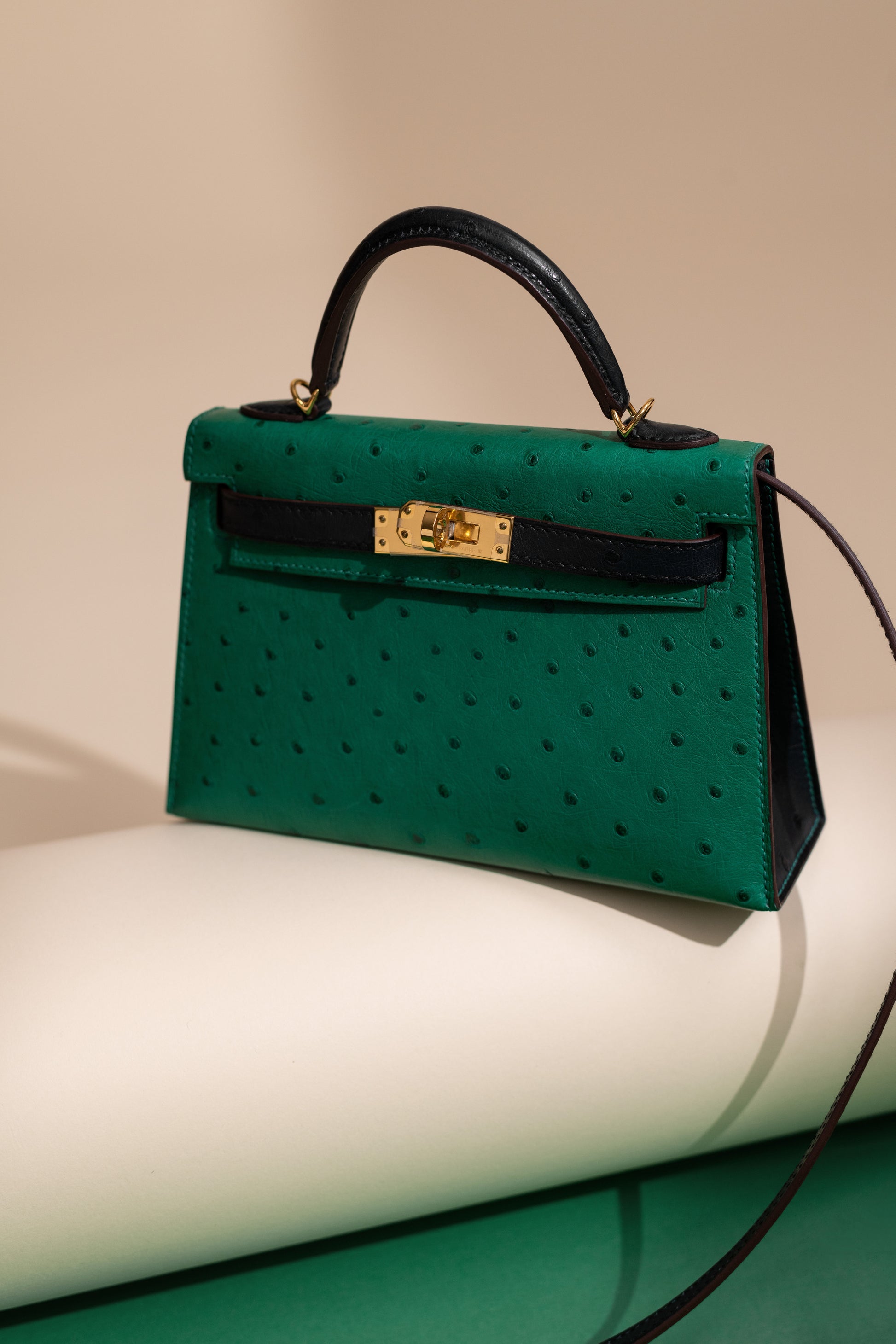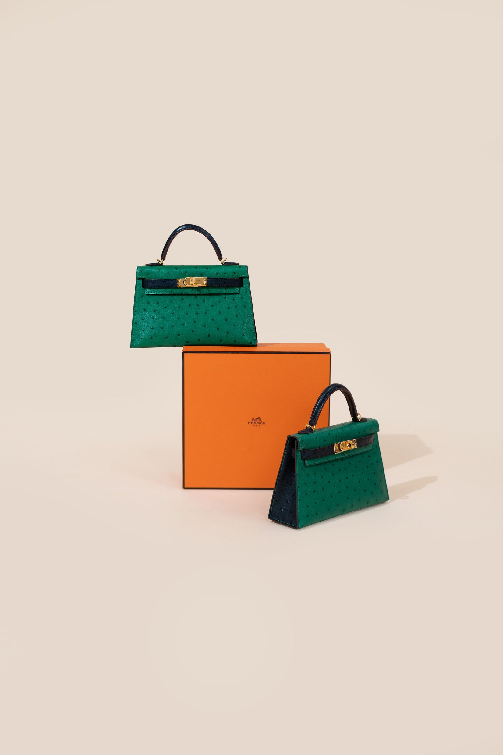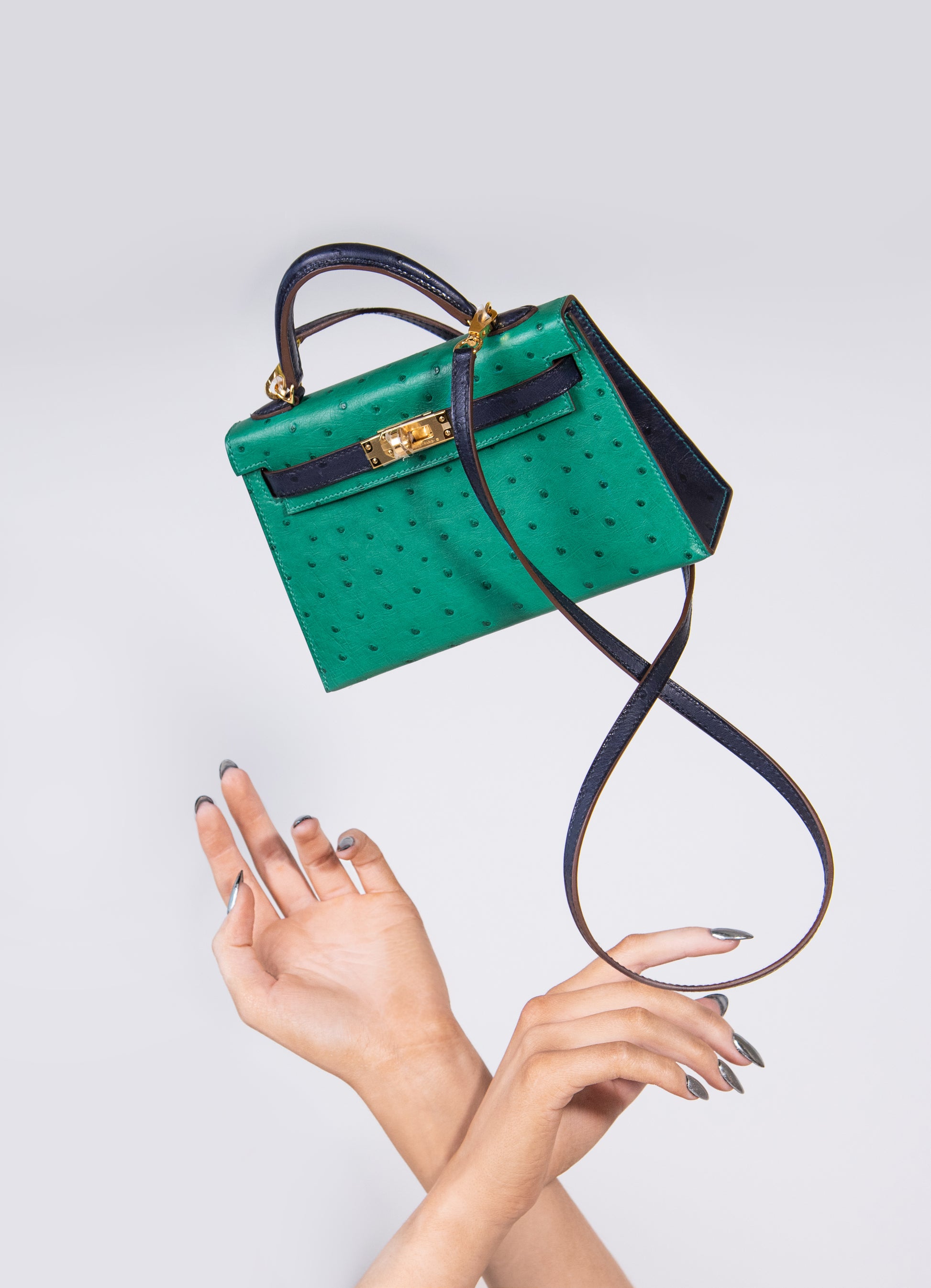 هيرميس HSS Mini Kelly 20 Ostrich Vert Vertigo/Blue Iris GHW