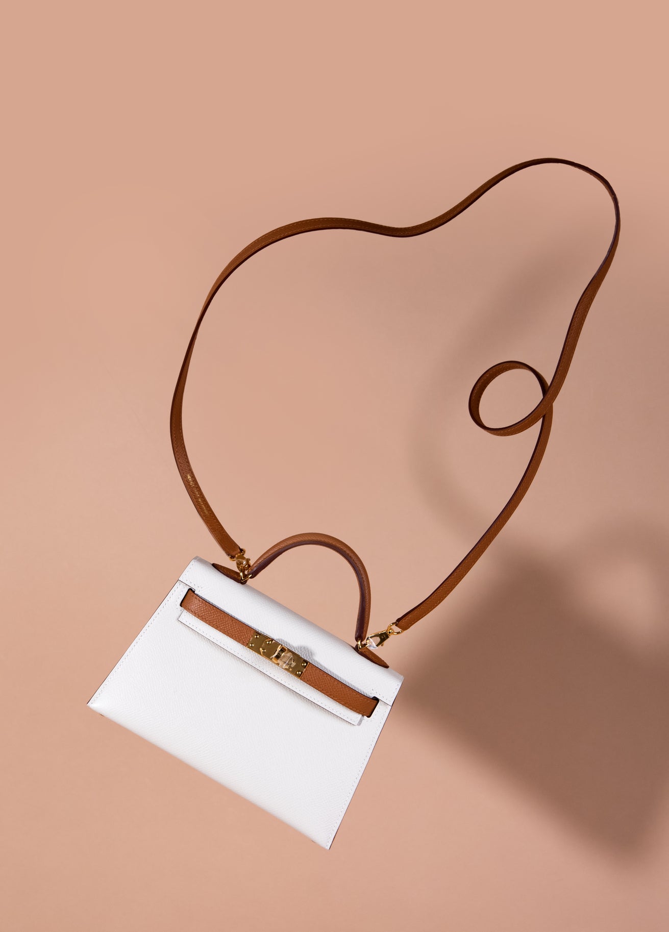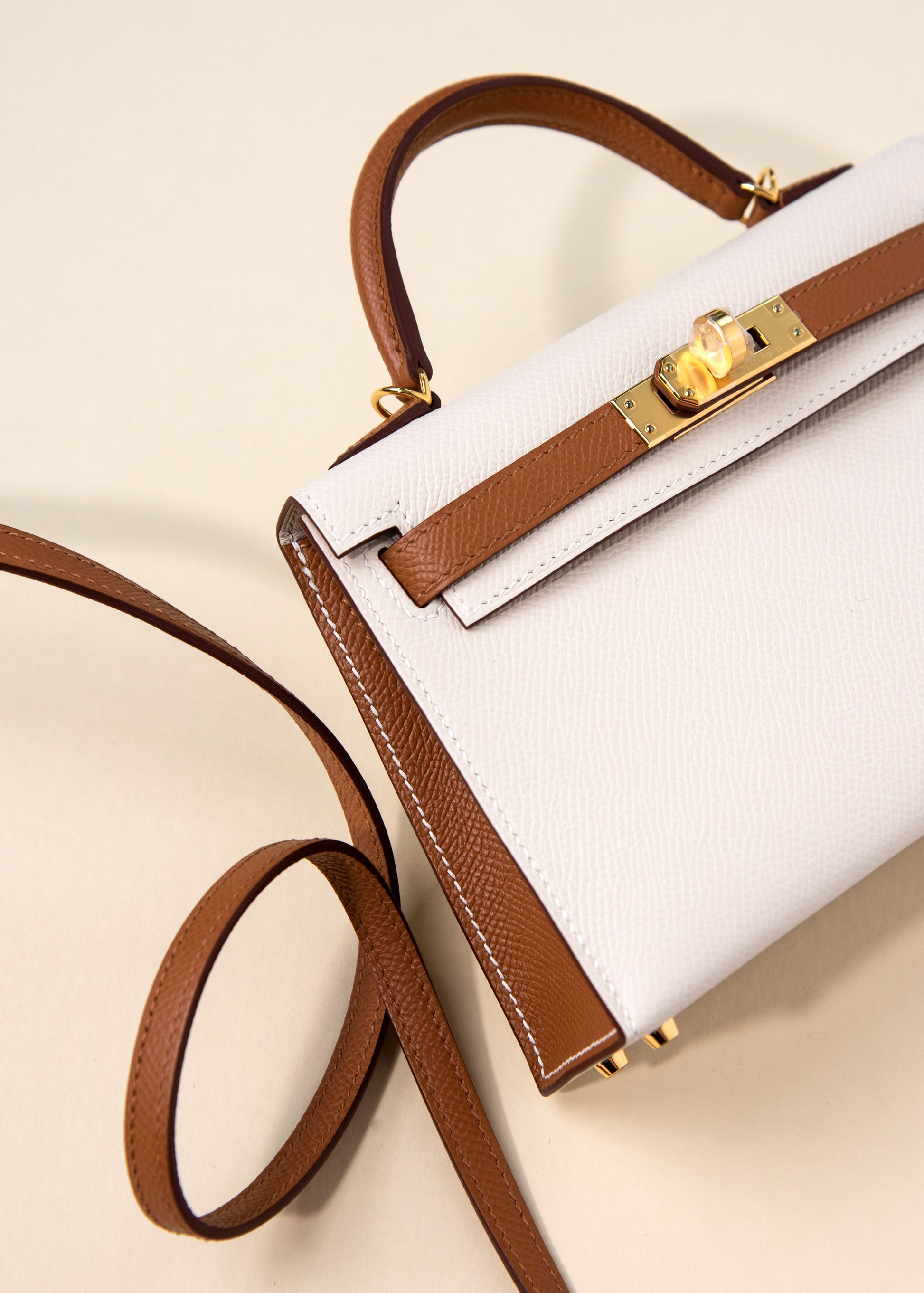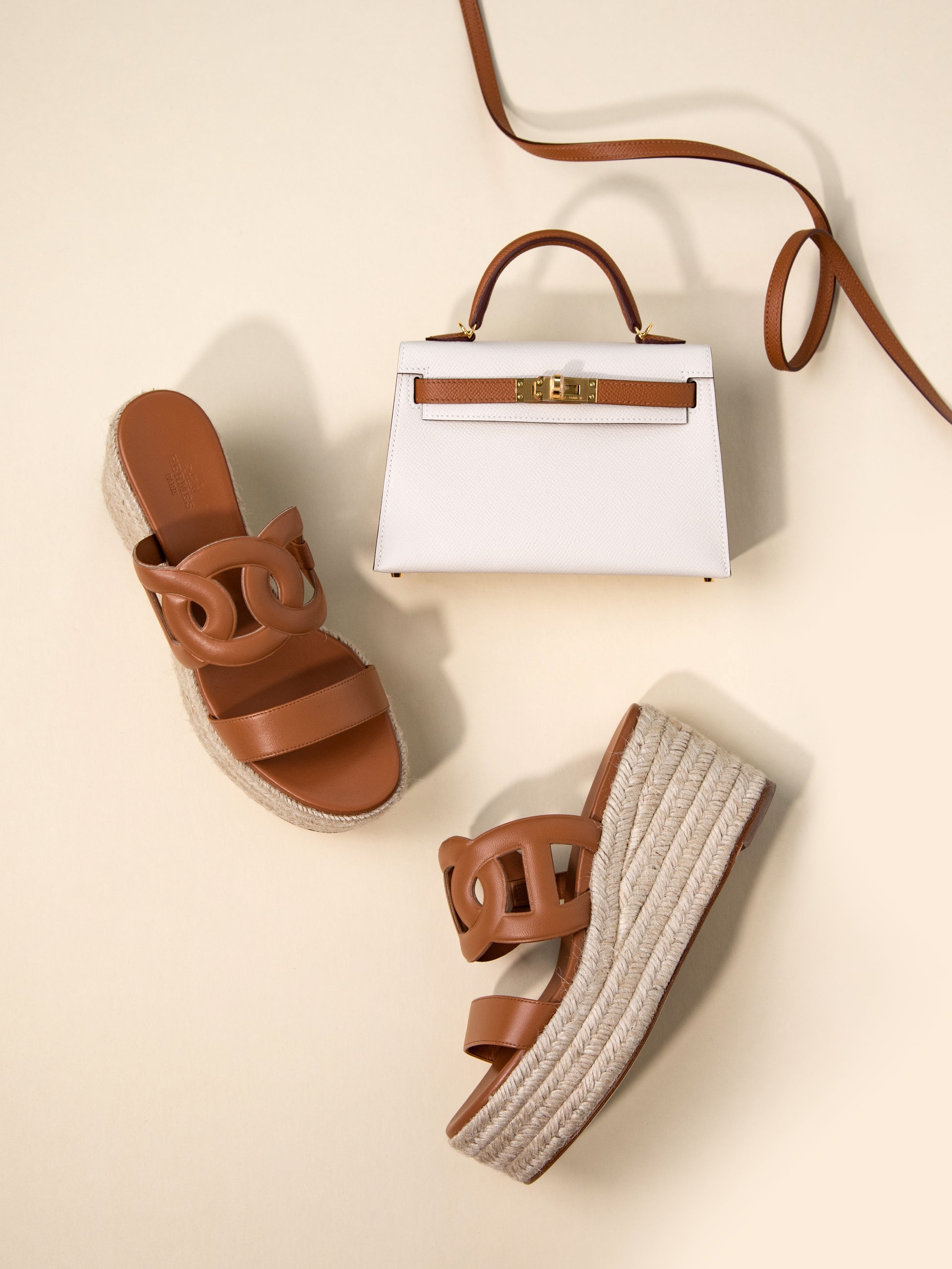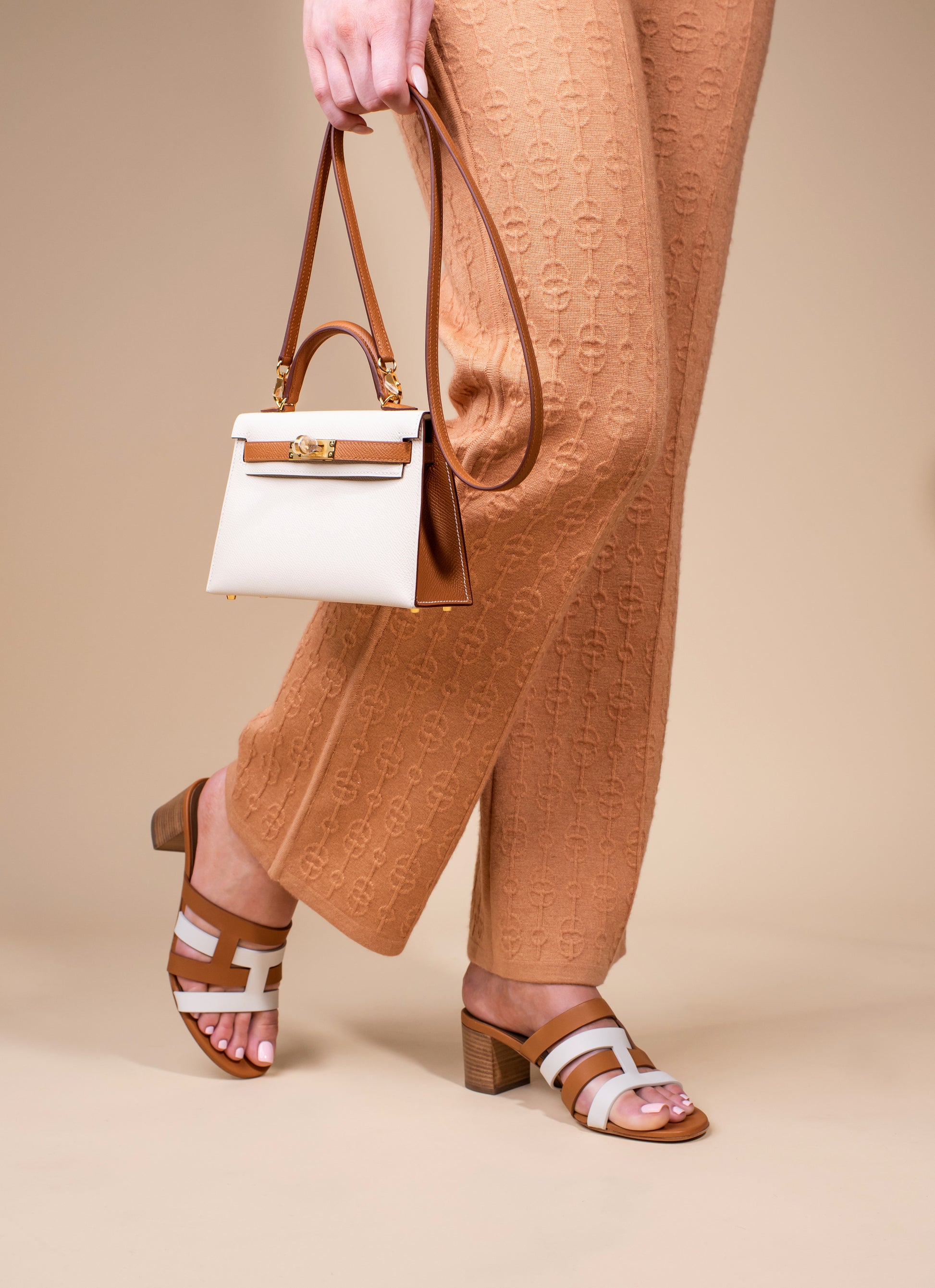 هيرميس - حقيبة HSS Mini Kelly باللونين الذهبي والرمادي من كرايه مع صندل Amica