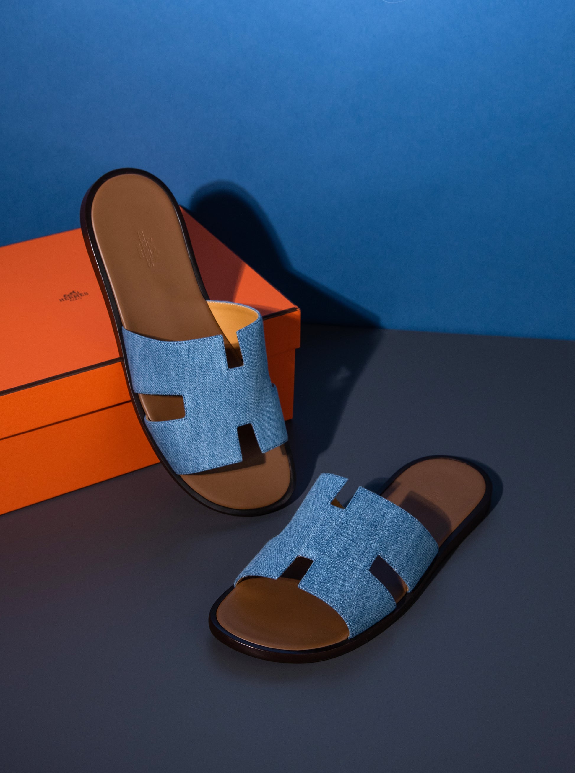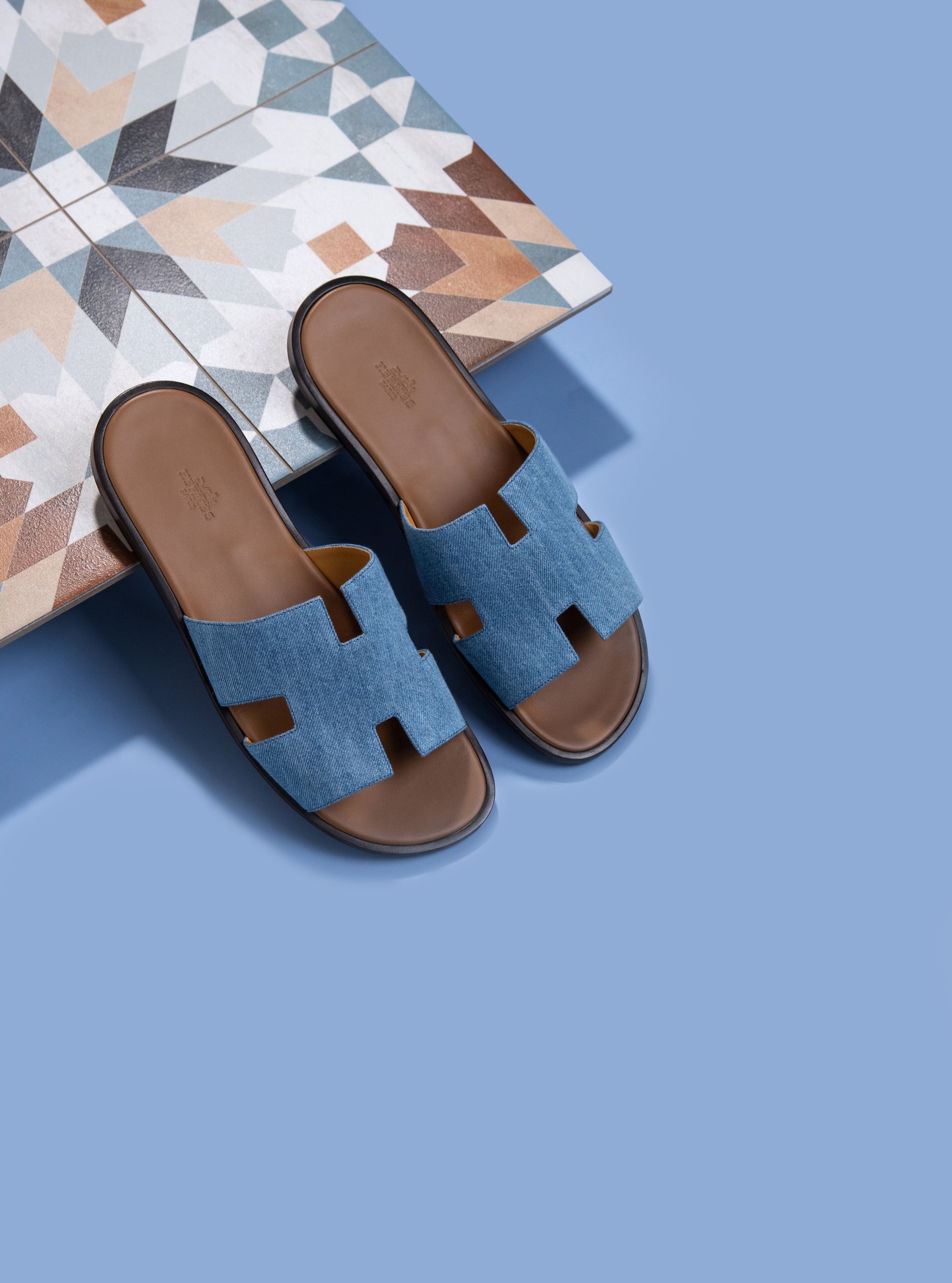 هيرميس - صندل إزمير من قماش الدنيم الفاتح