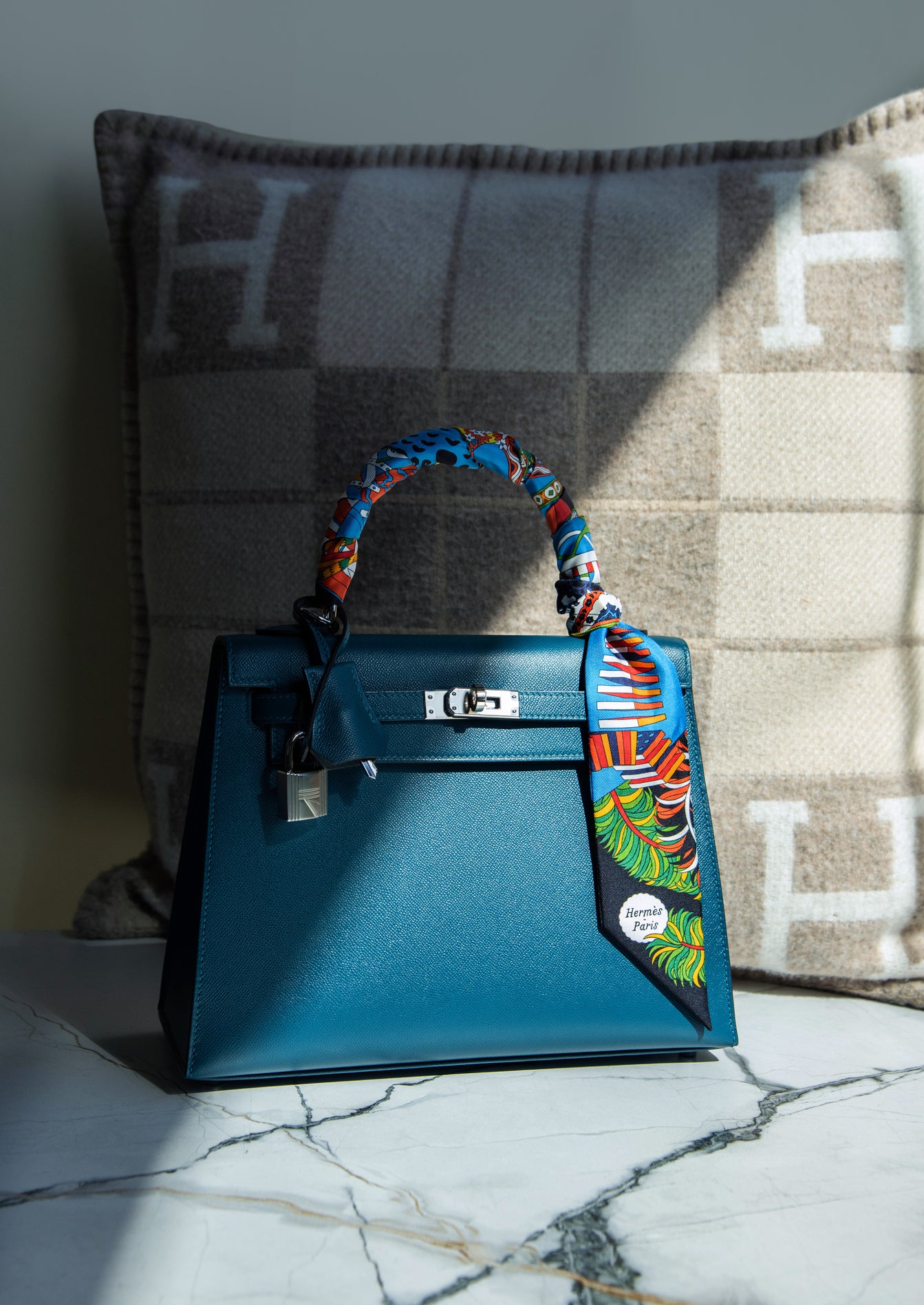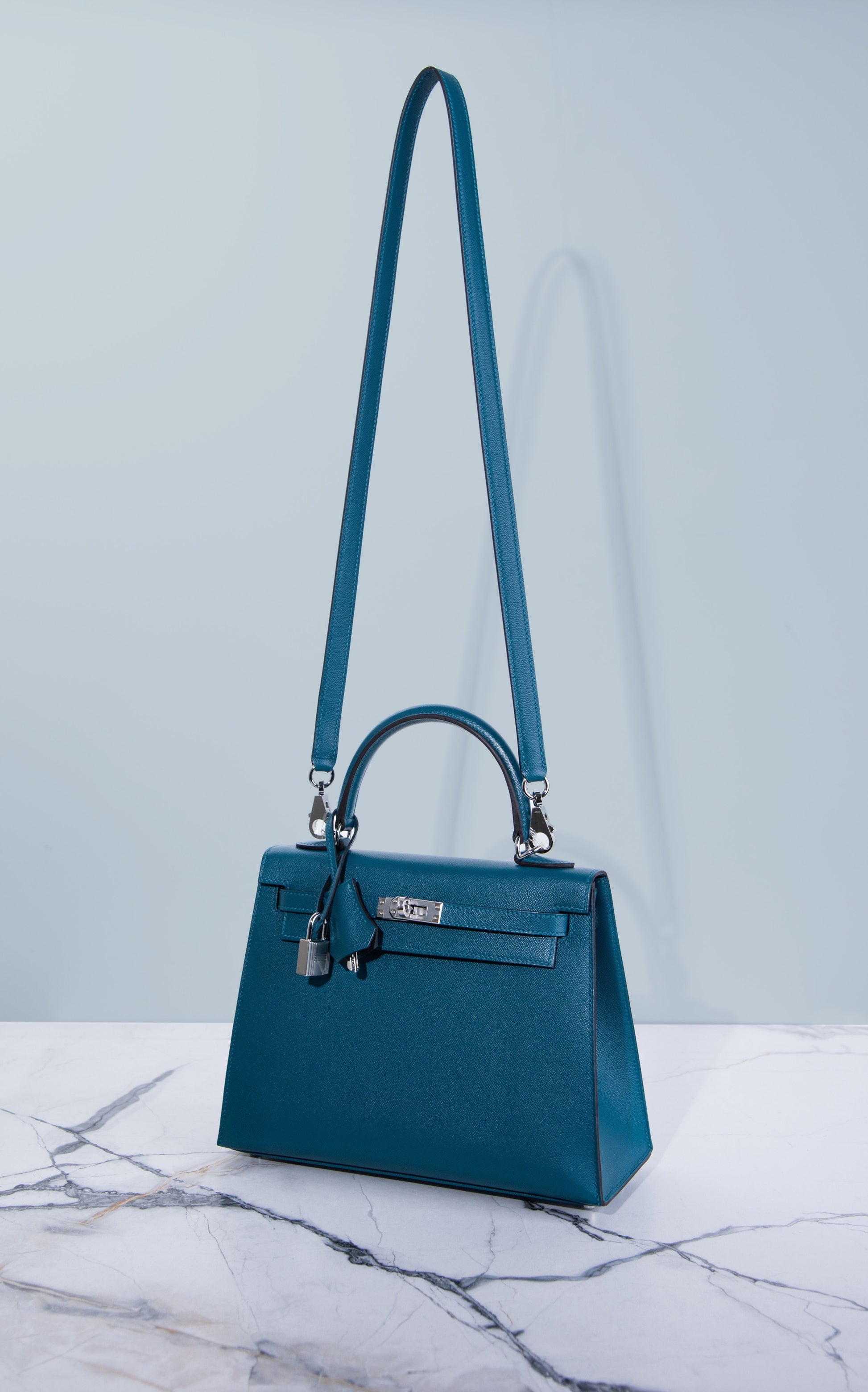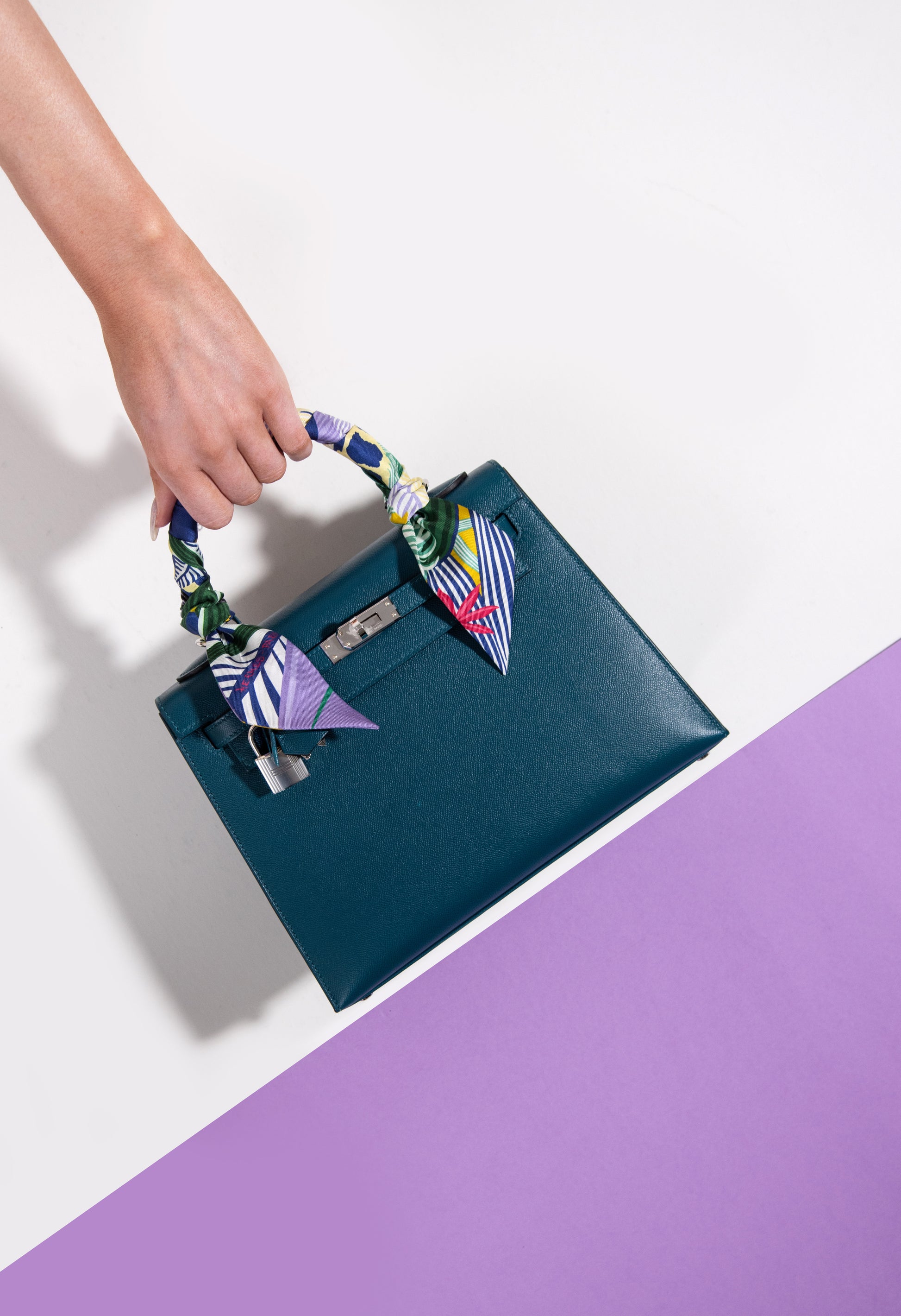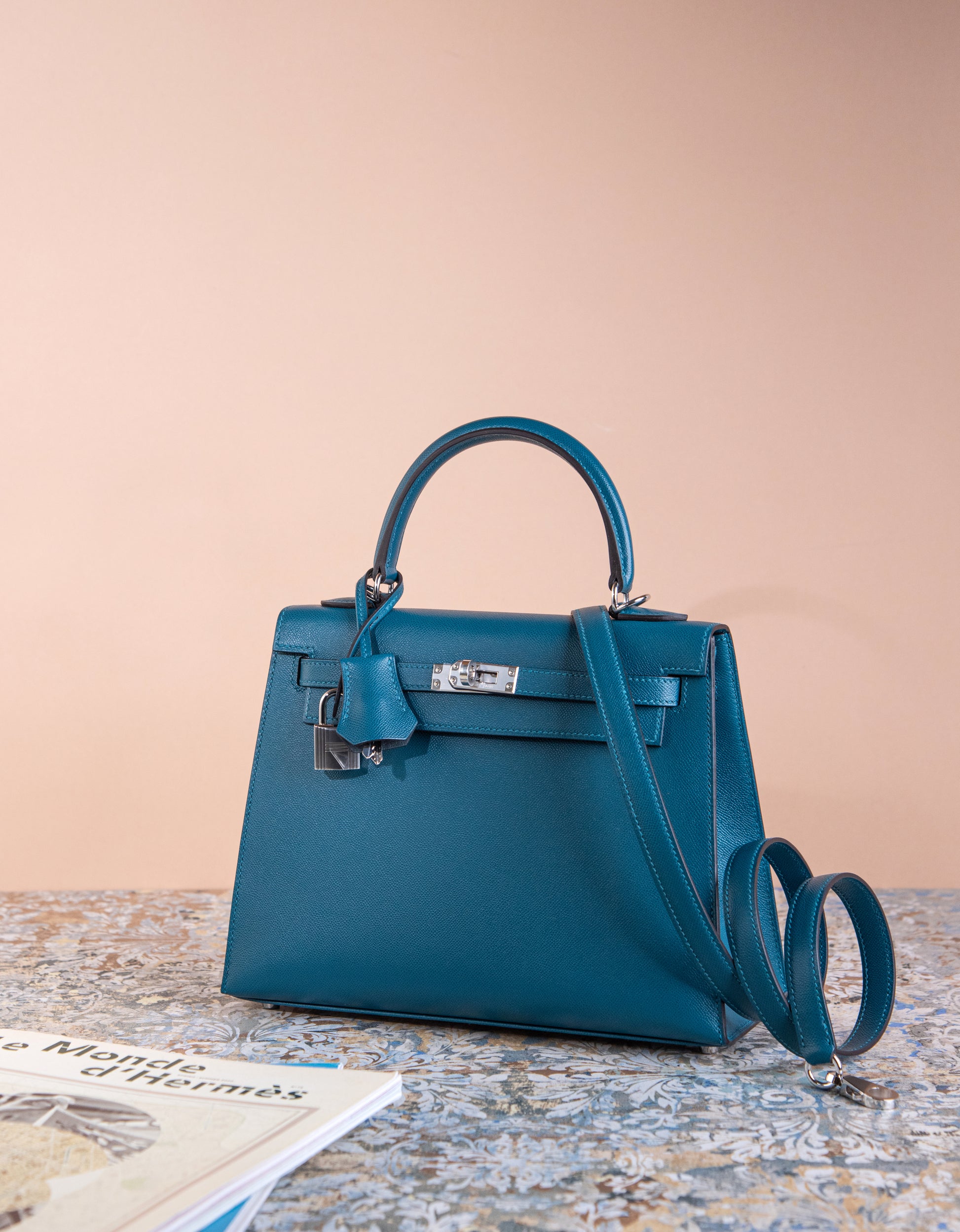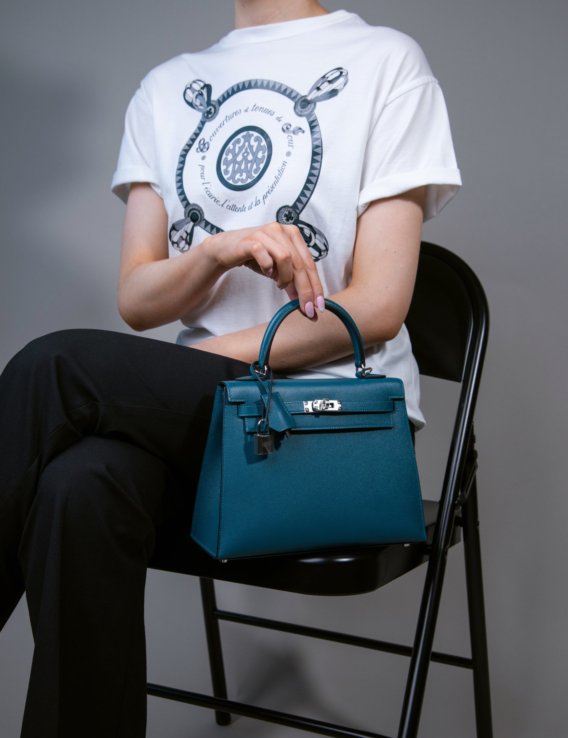 Hermès Kelly 25 Sellier Epsom Casaque Etoilee Ardoise/Noir/Vert Peppermint PHW