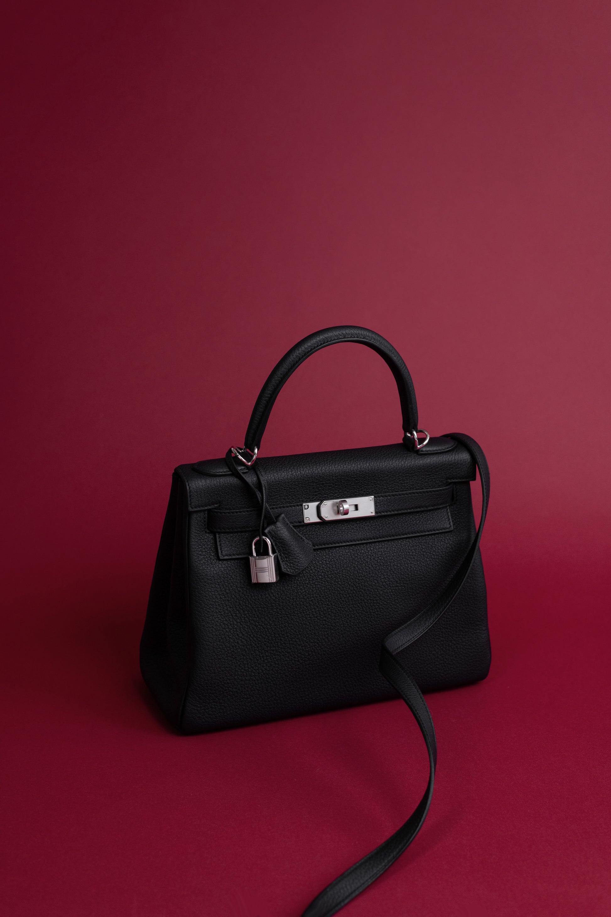 هيرميس كيلي 28 توغو أسود فضي معدني