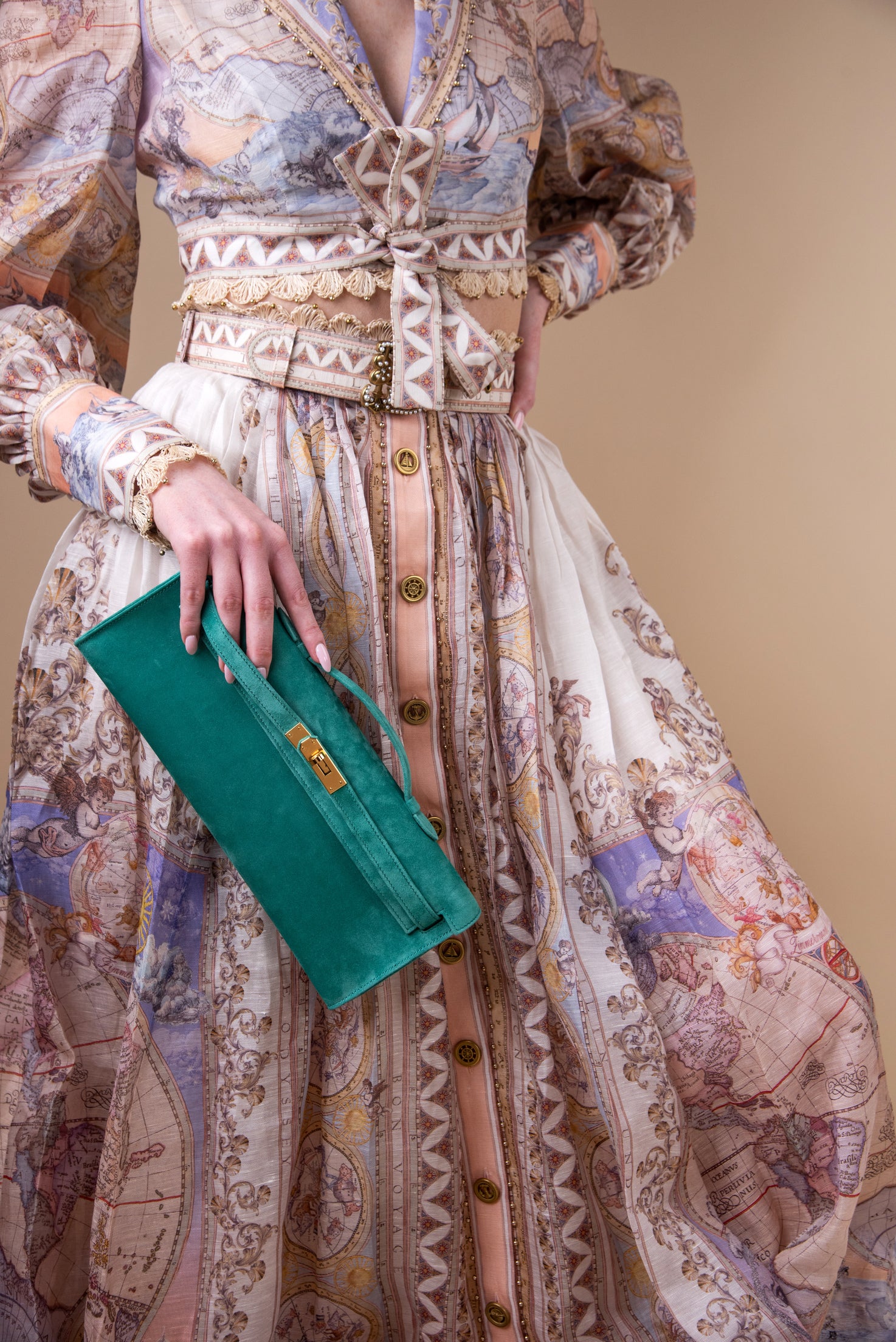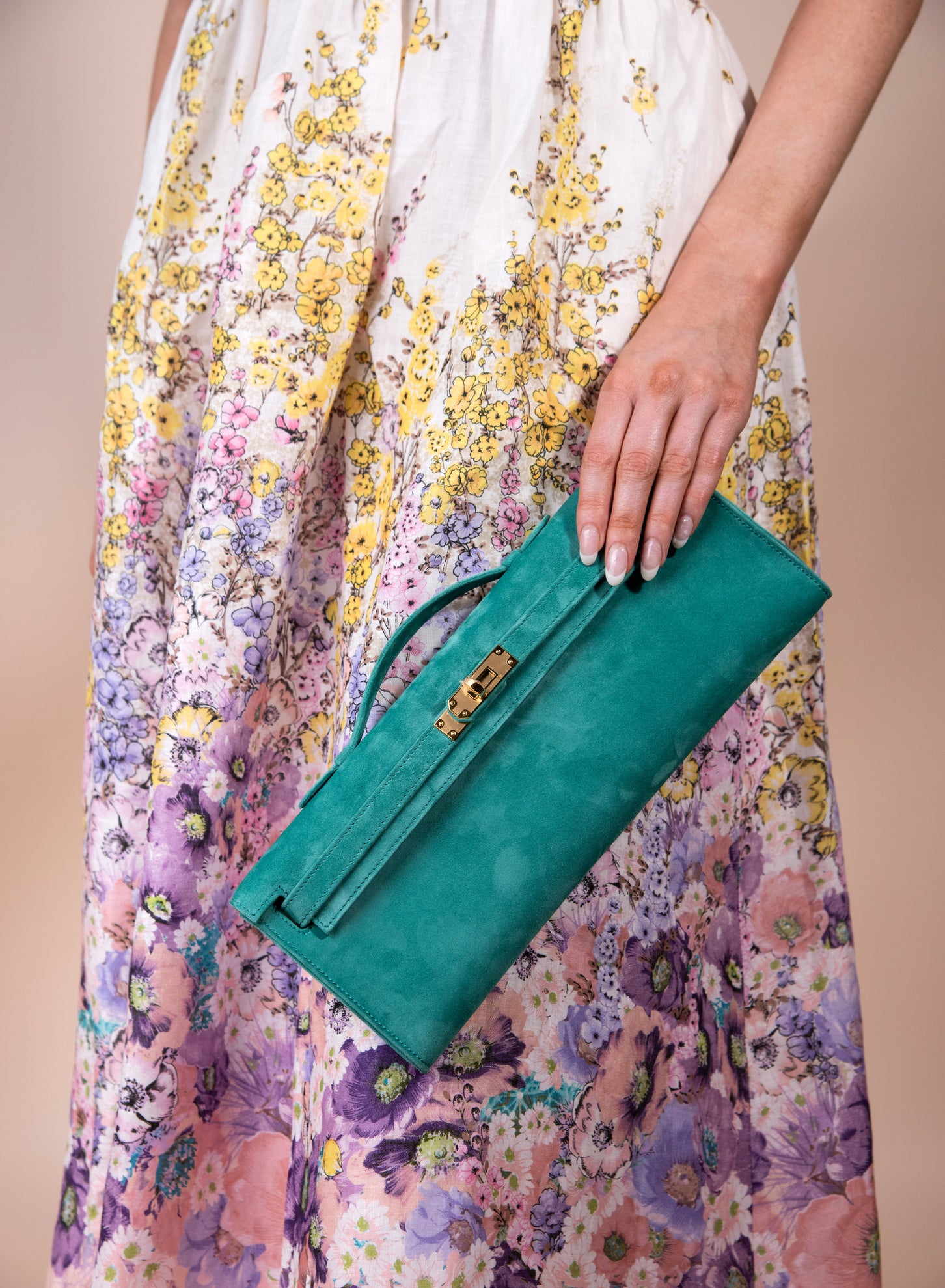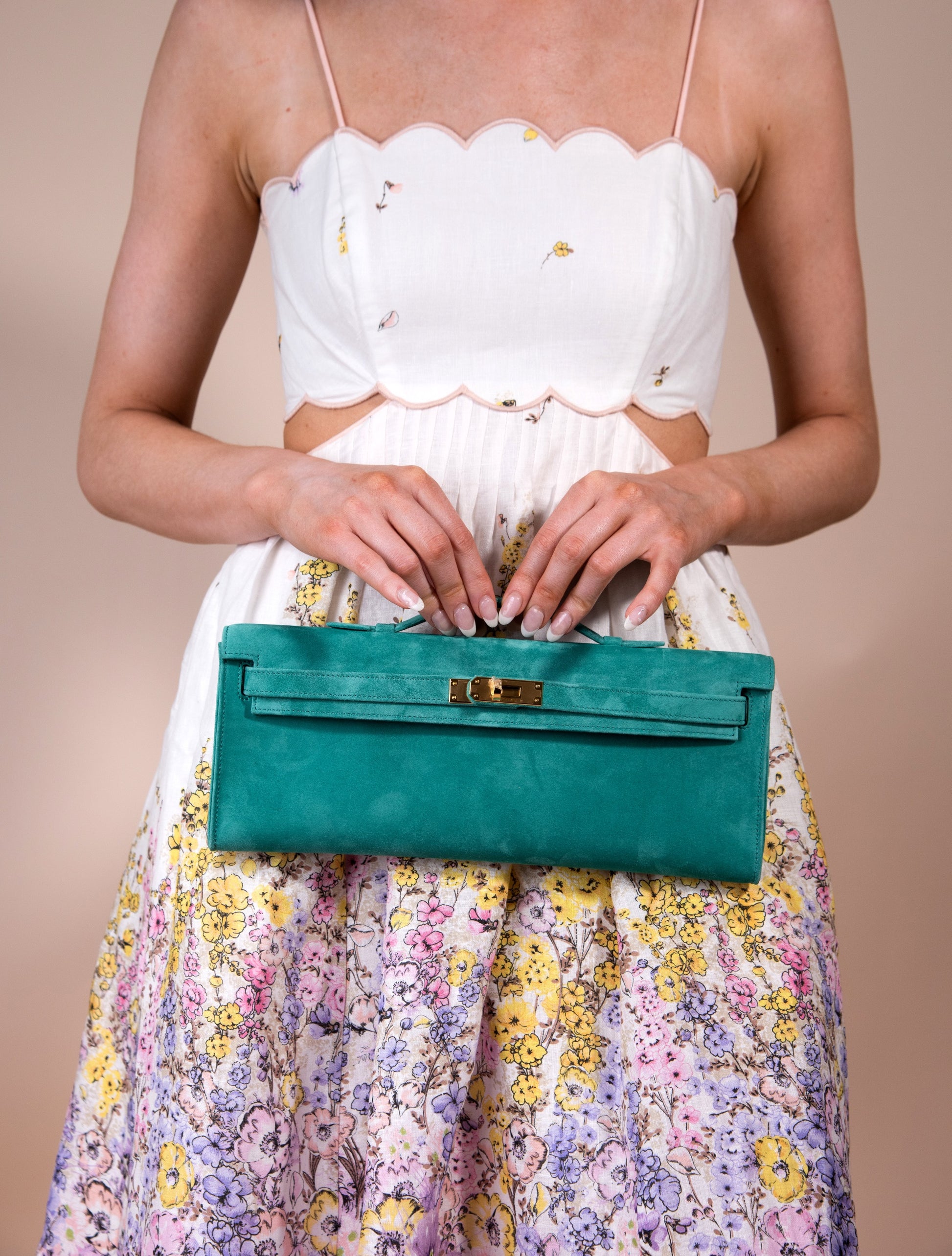 هيرميس - حقيبة يد كيلي من جلد الغزال باللون الأخضر Vert Verone GHW